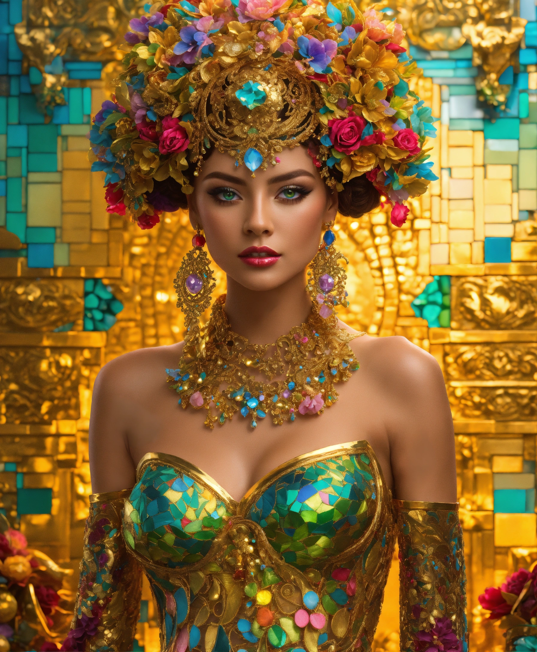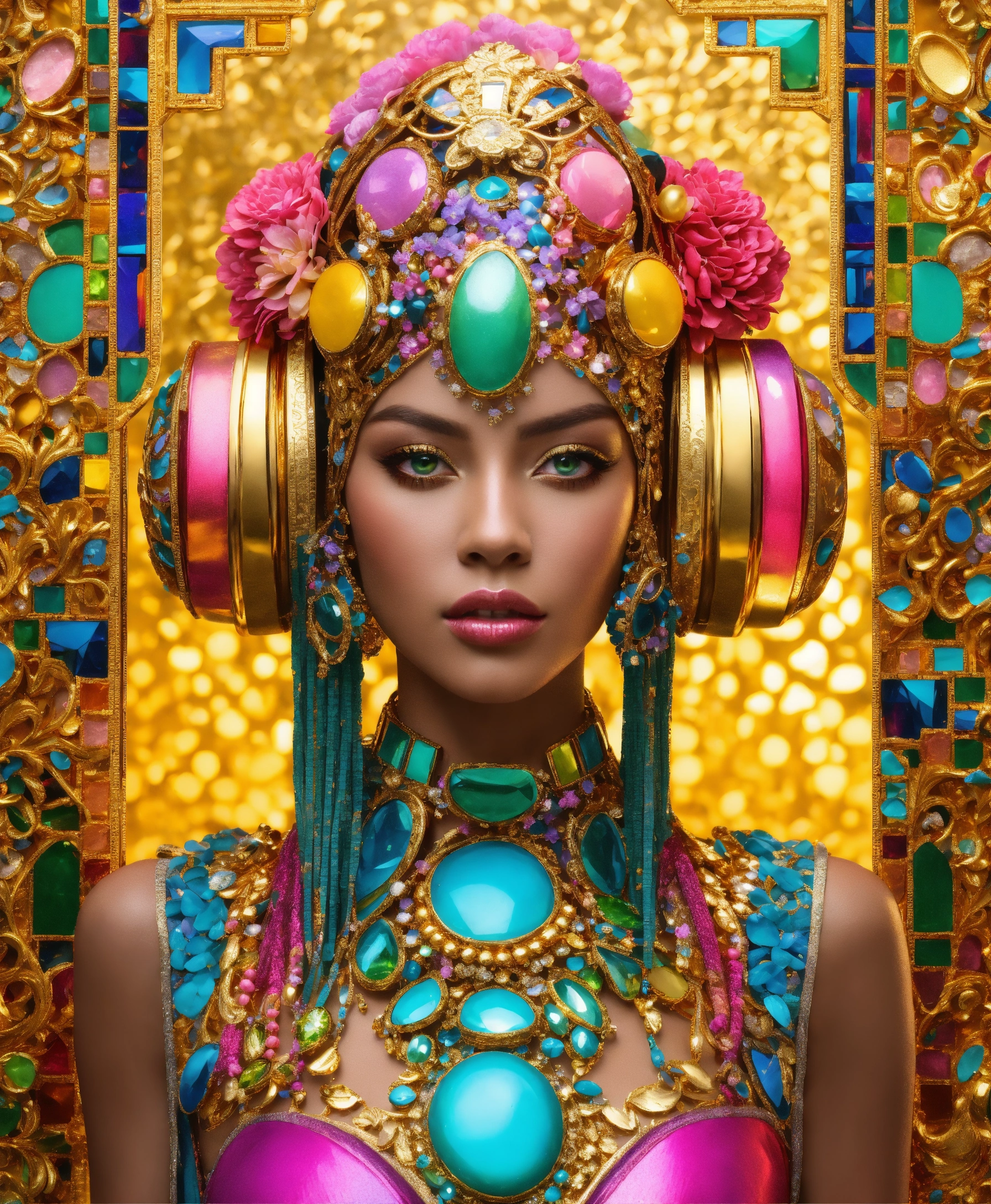 Futuristic beautiful photogenic supermodel painted glamorous beautiful colourful dreamy awesome elegant elaborate complex detailed awesome gold blue pink green orange peridot lilac yellow magenta cyan gold 9silver copper fabulous 8k intricate 8brush work vivid bright vibrant colors 3d gold trim metallic 24k gold filigree background mosaic awesome rich haute couture bambi eyes ultimate beauty sheen 8k glamorous filigree mosaic pearlized amazing hyperdetailed elegant elaborate couture elaborate hair style contrast frosty brushed matte luminous gold yellow background vibrant pink silver green detailed 8k 24k gold trim gold background asymetrical beautiful awesome superb 8k sheen 3d klimt vibrant colors large eyes gorgeous beautiful colourful delicate facial features beautiful superb 24k gold highlights 8k in focus red yellow gold pink klimt flowers gold foil 8k in focus gorgeous superb sublime awesome 8k hyperdetailed hyper-realistic 8k vivid bright