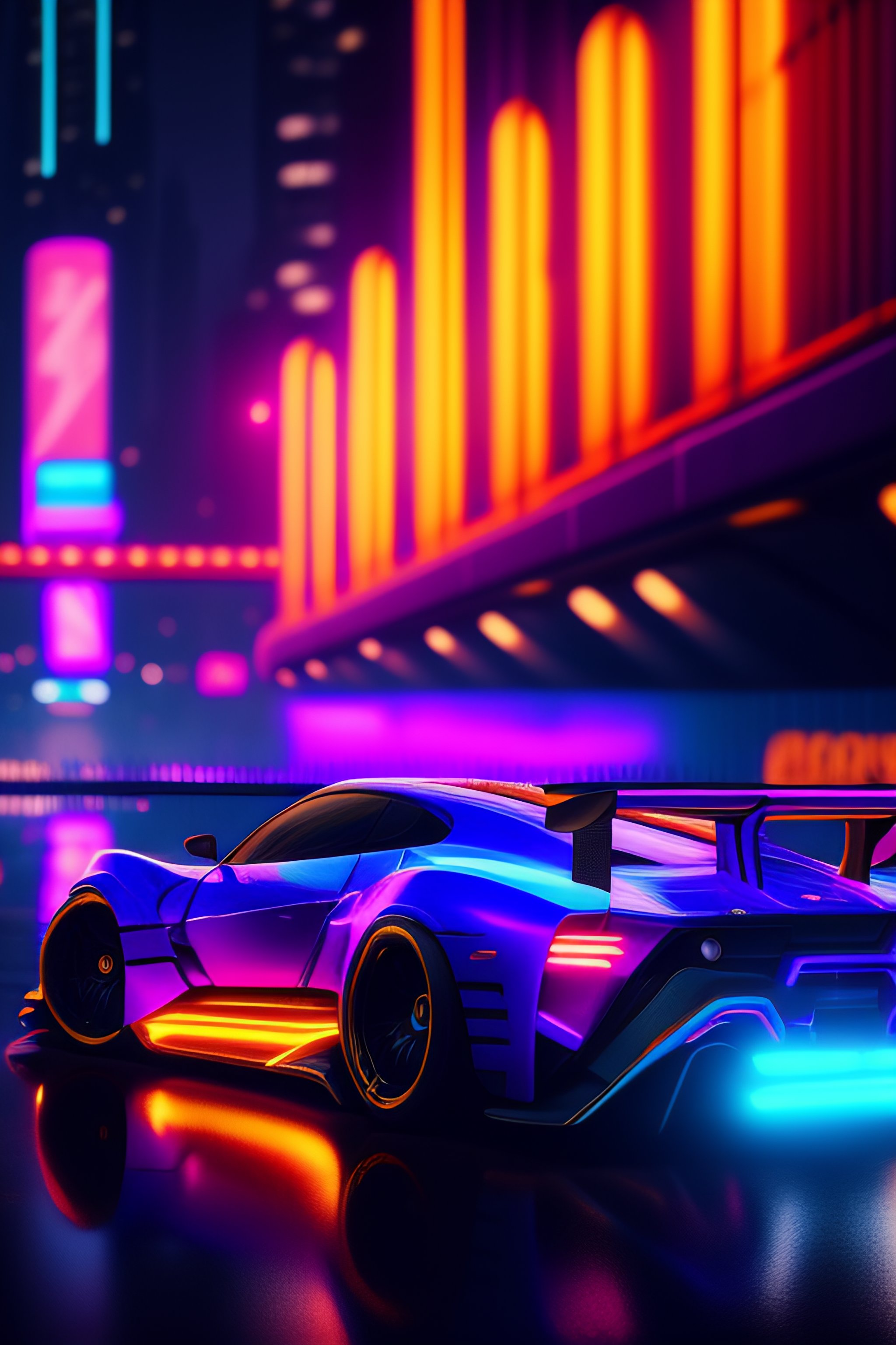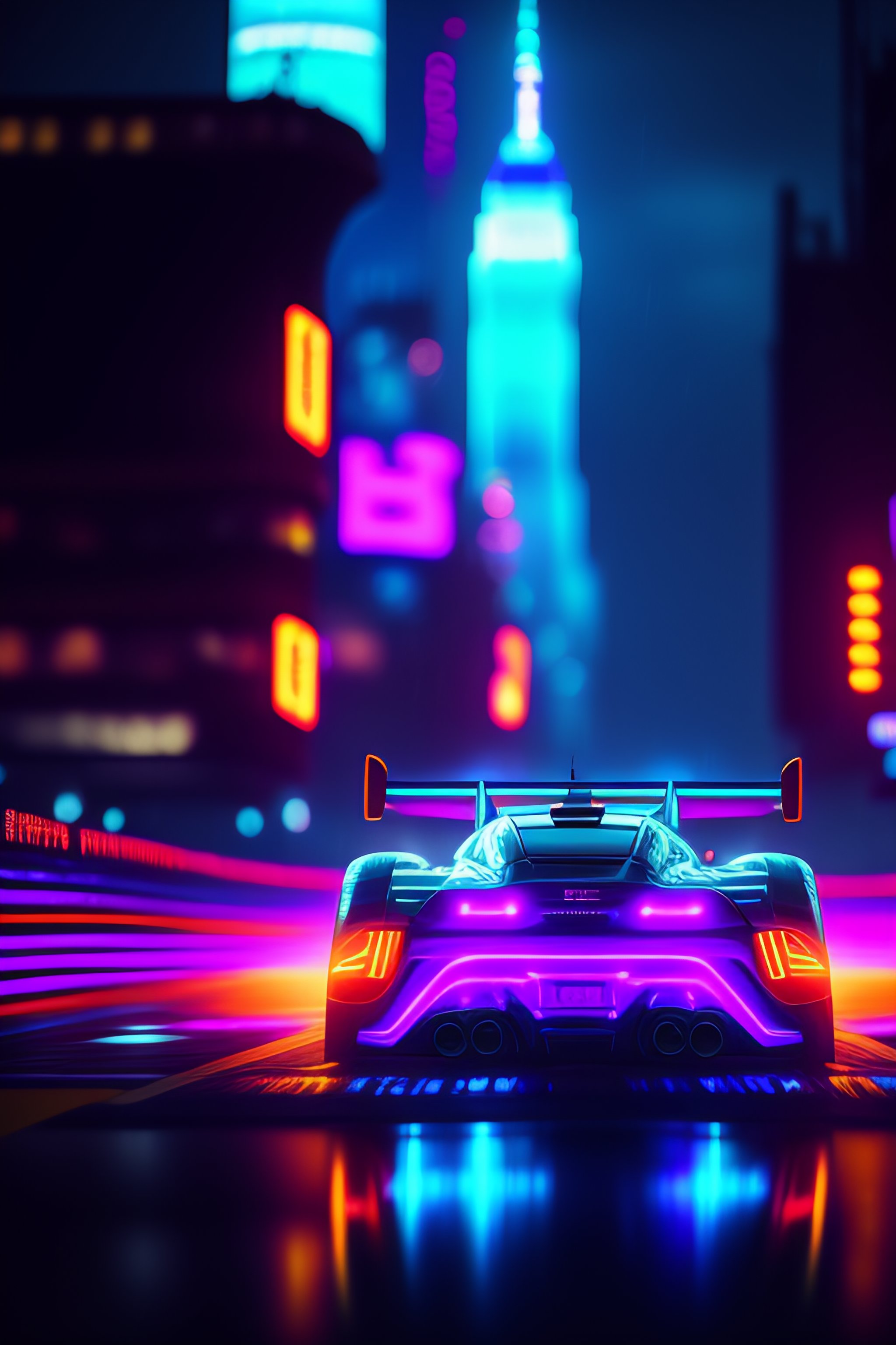 Rocket league octane in new york rainy night neon lights cyberpunk 4k
