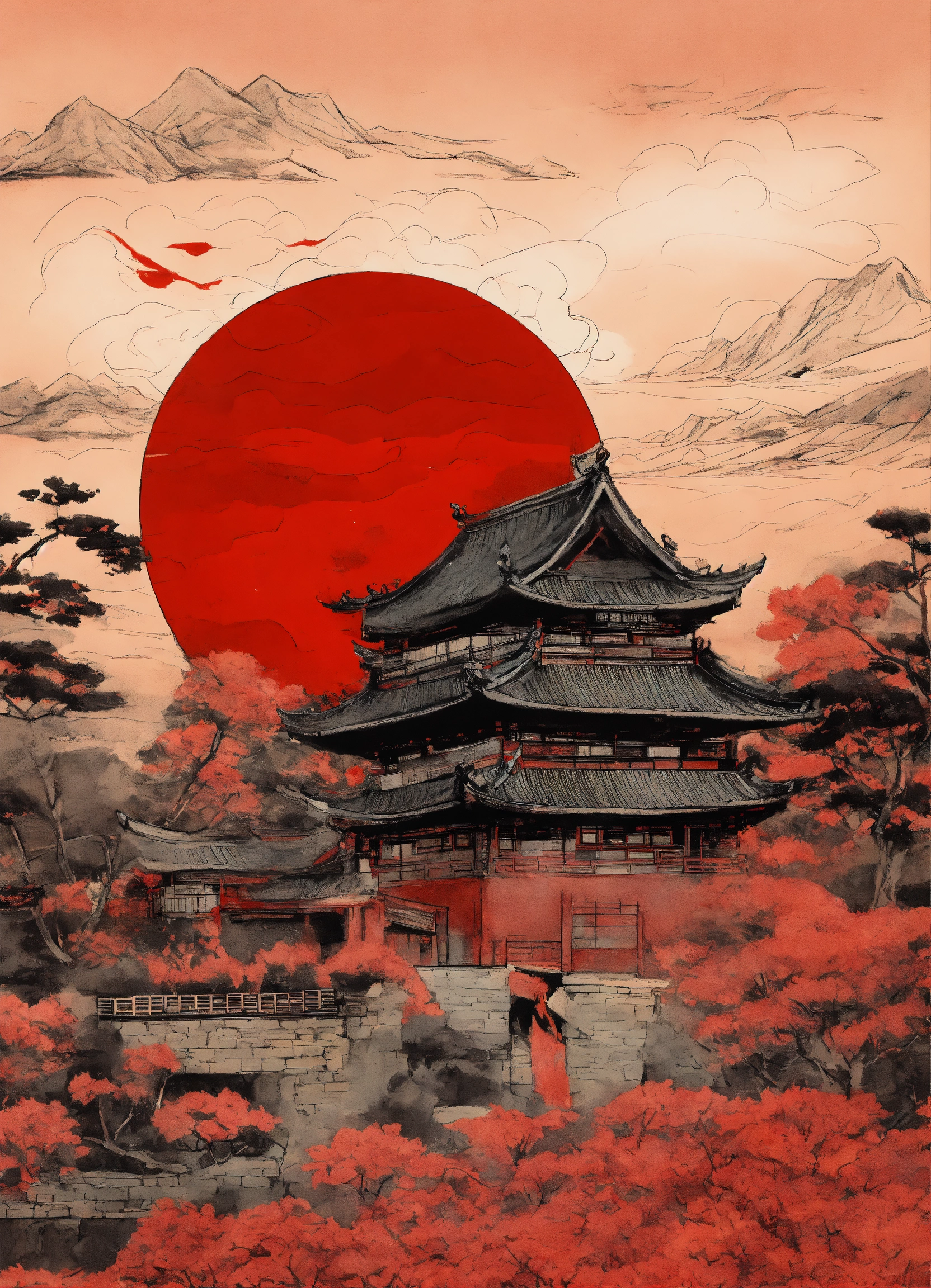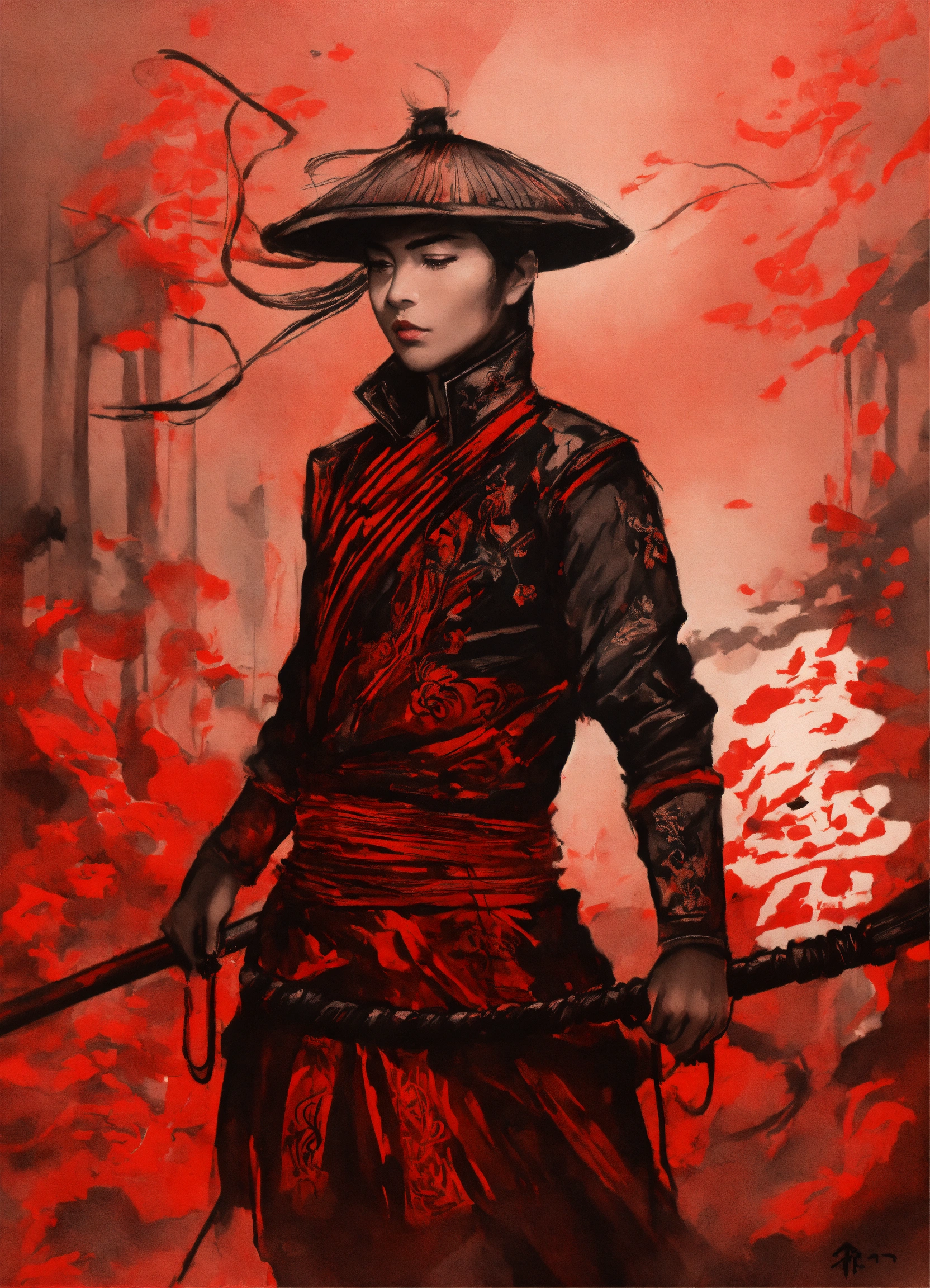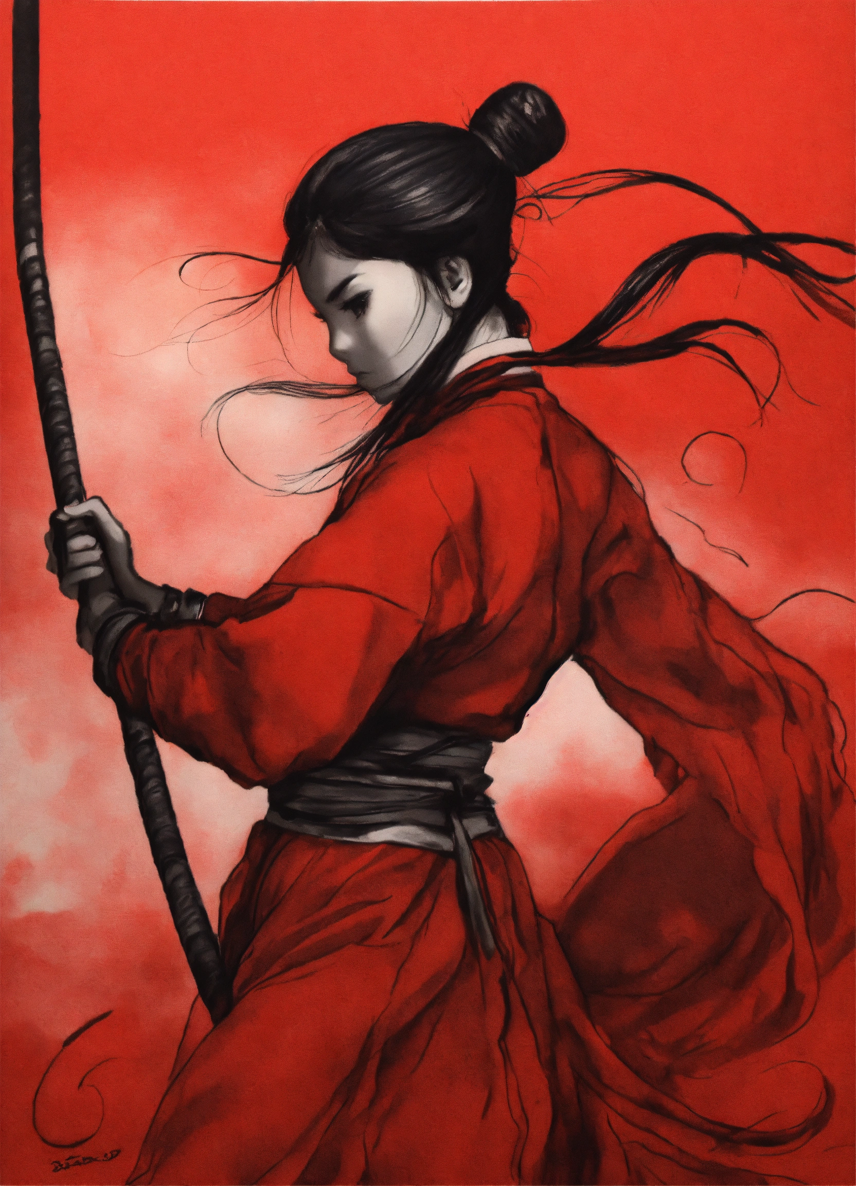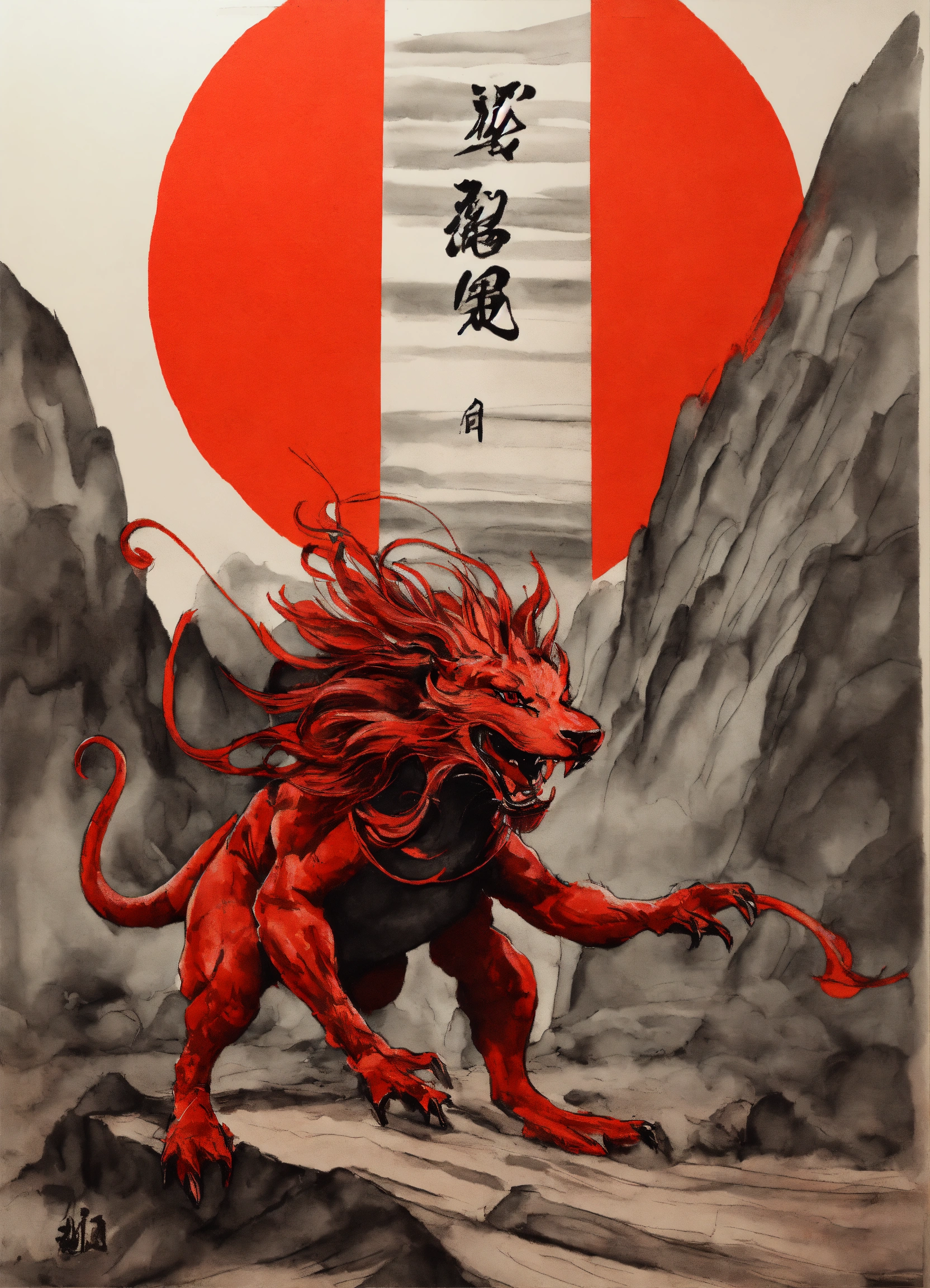 Tinta negra y roja, whip, en estilo chino, arte en tinta de mschiffer, boceto caprichoso y aproximado, (boceto1.3)