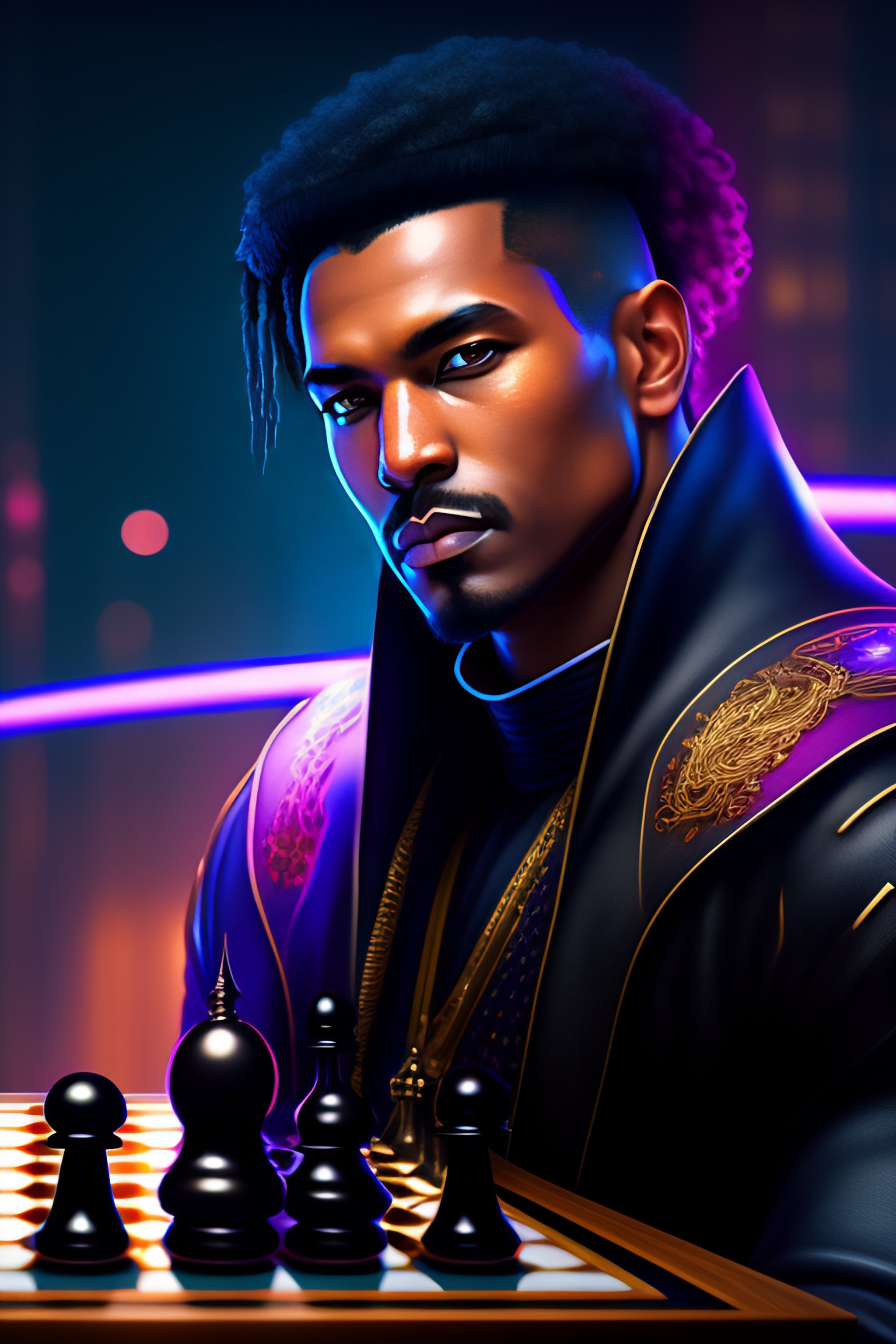 Portrait of cyberpunk chess grand master