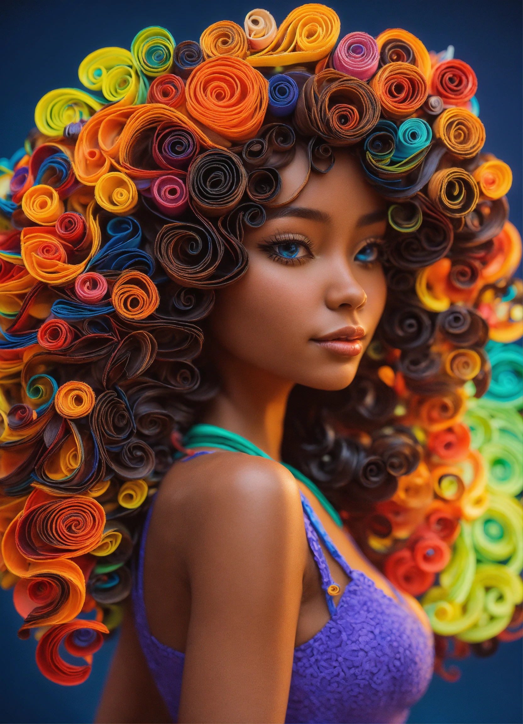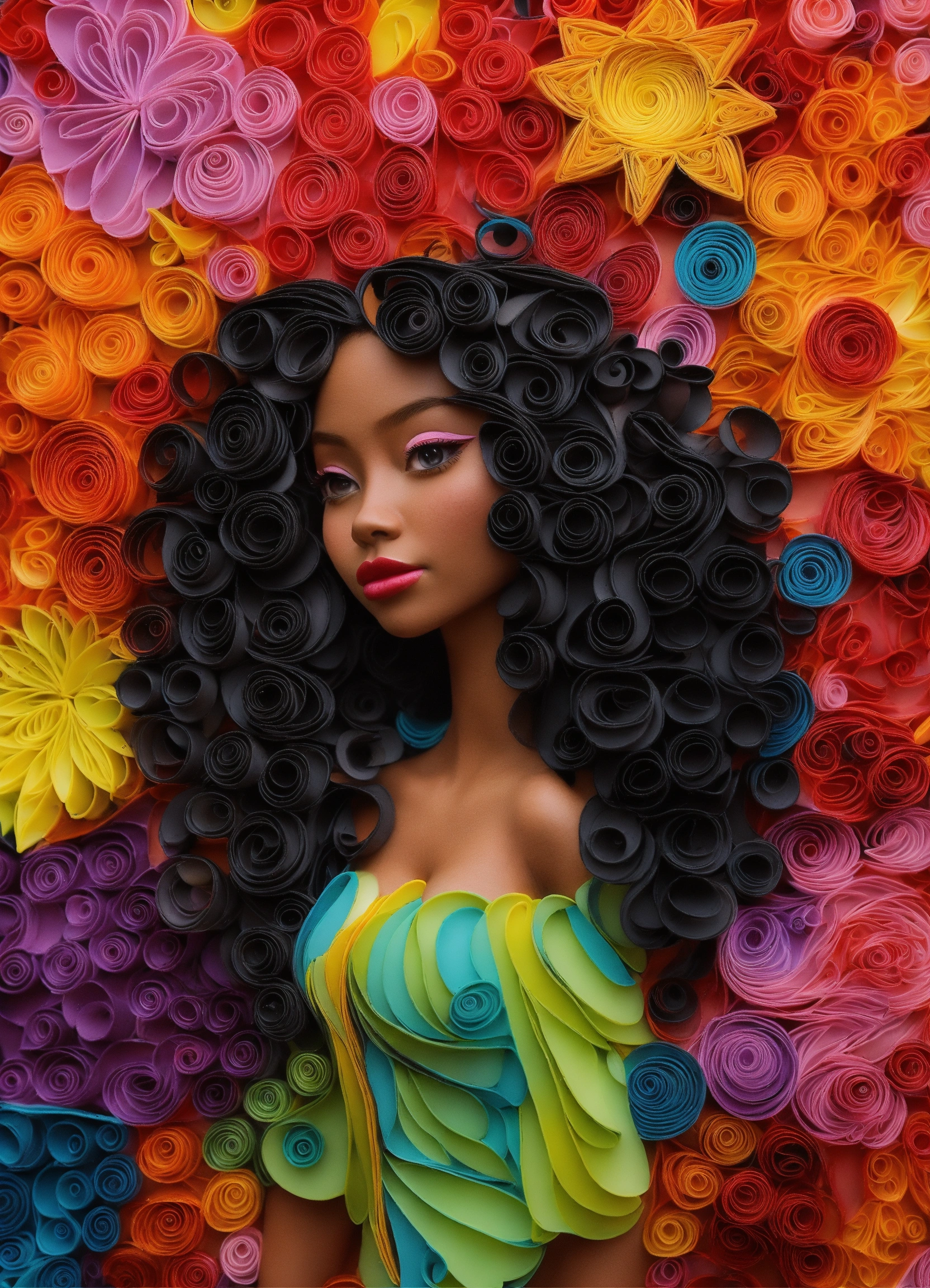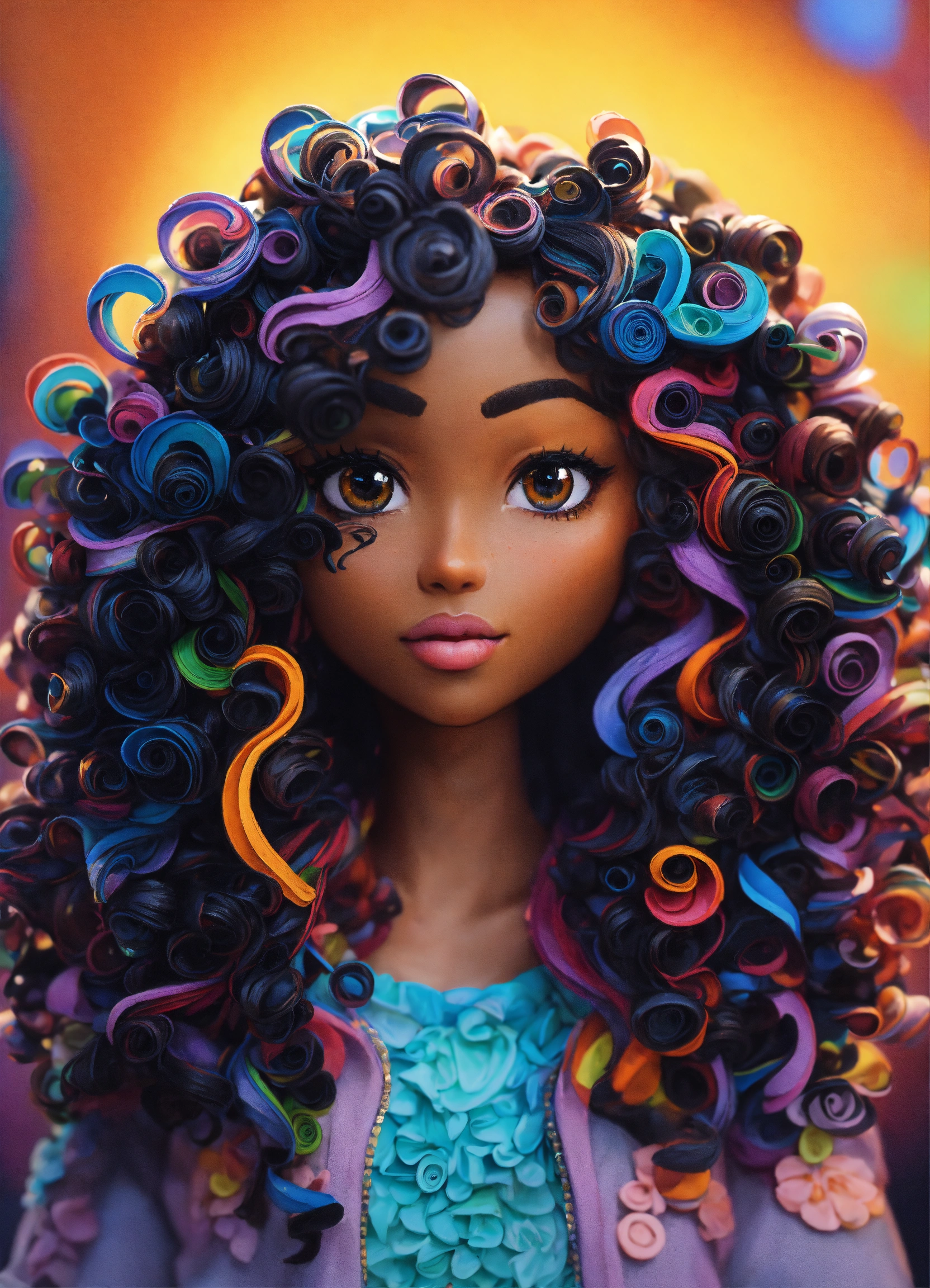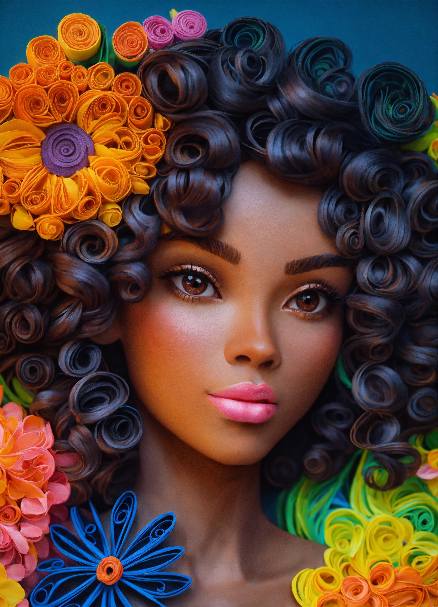 Summer colors quilling of a beautiful black light skin pixar animated woman with curly hair, highly detailed, centered, trending on artstation