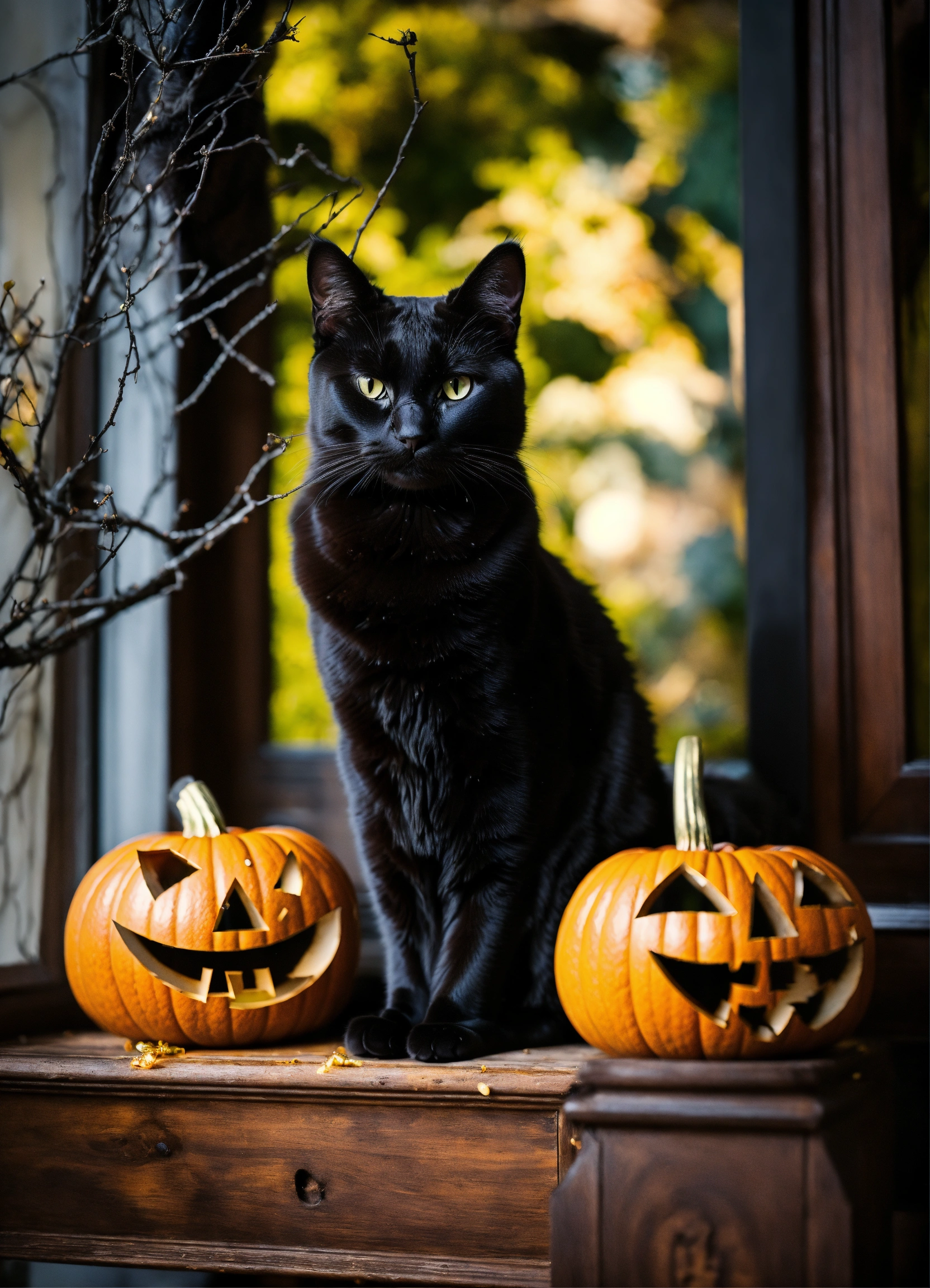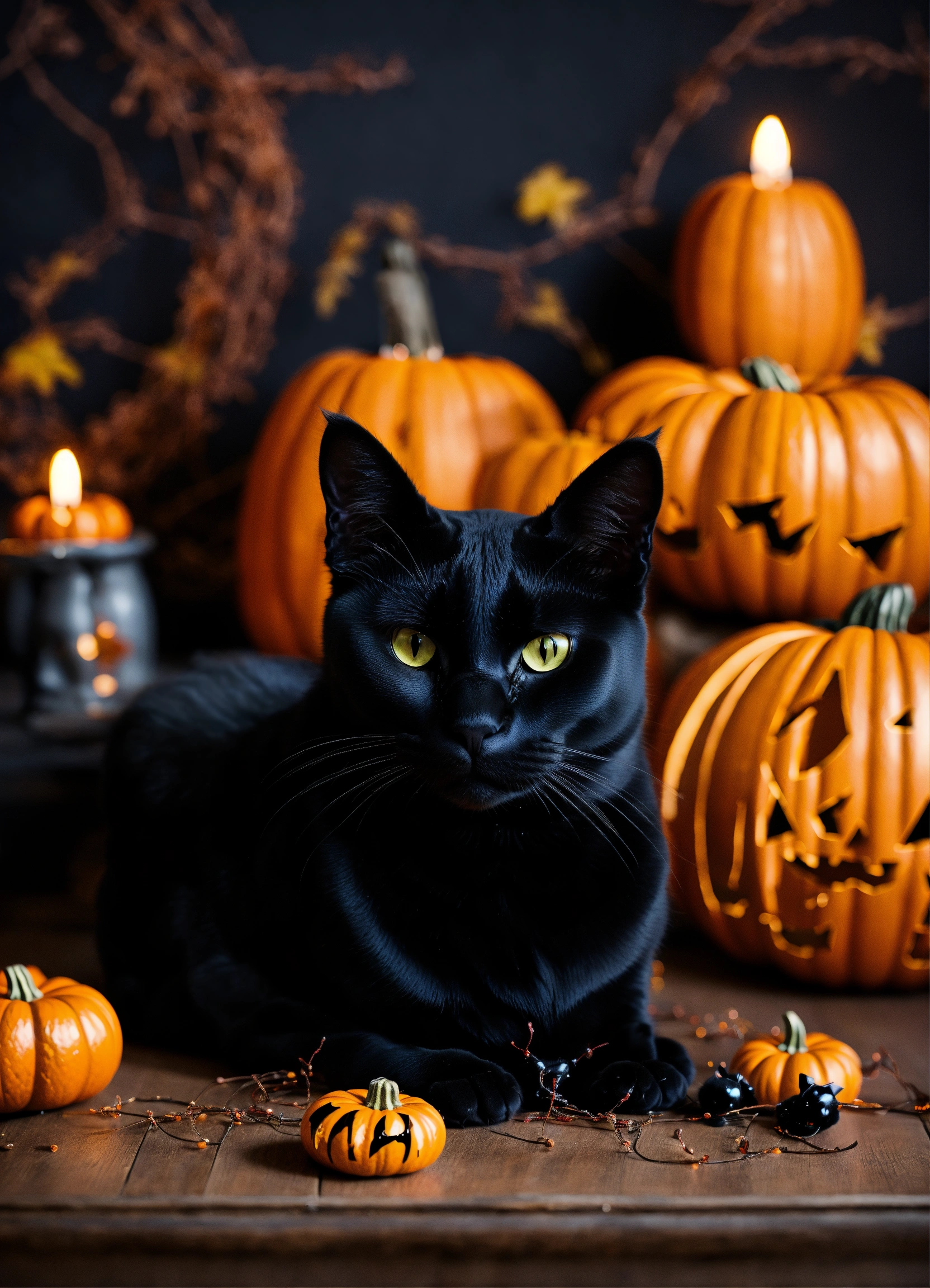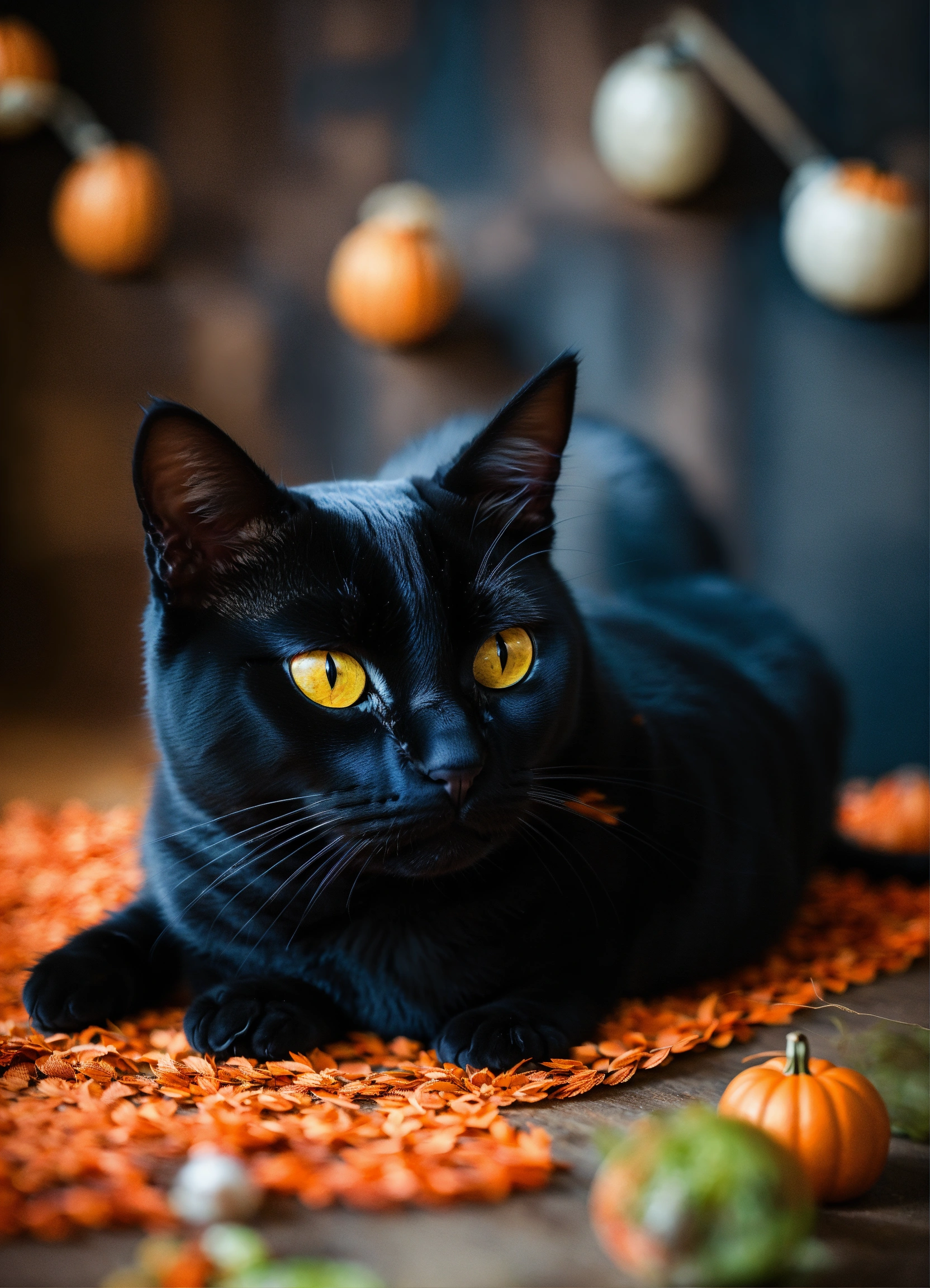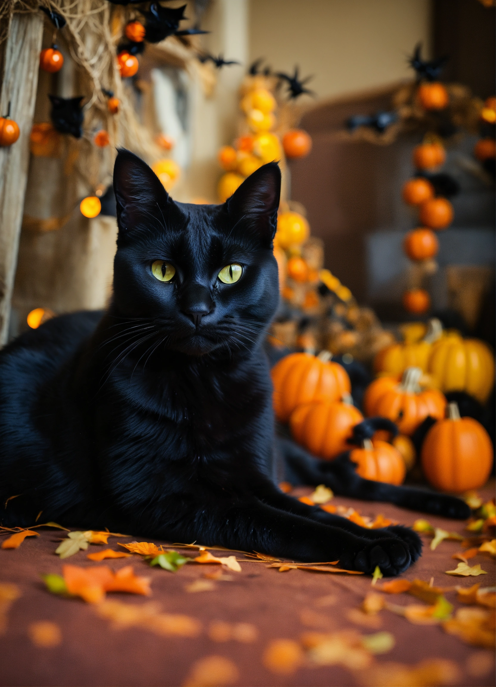 Portrait of a black cat as a halloween decoration