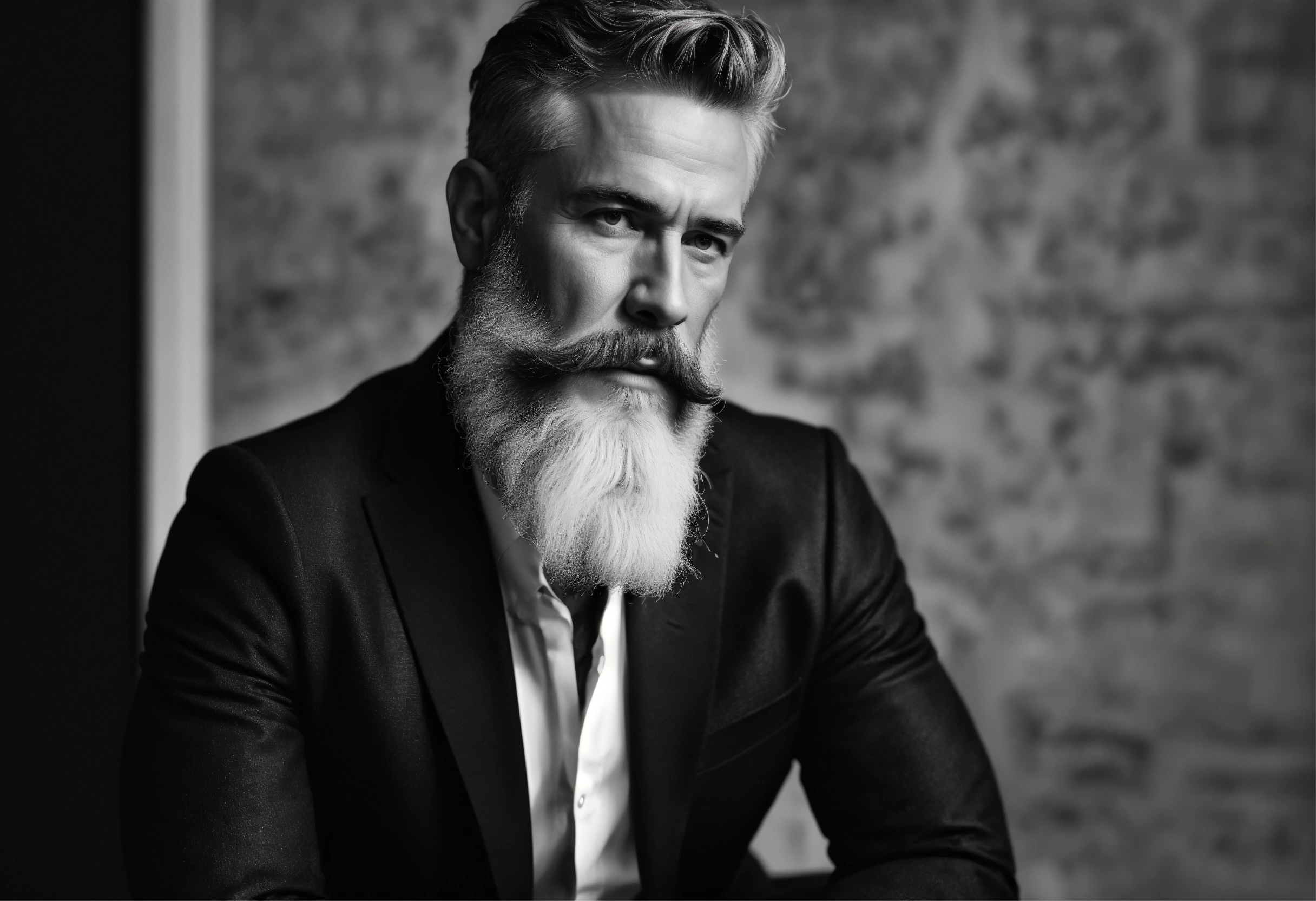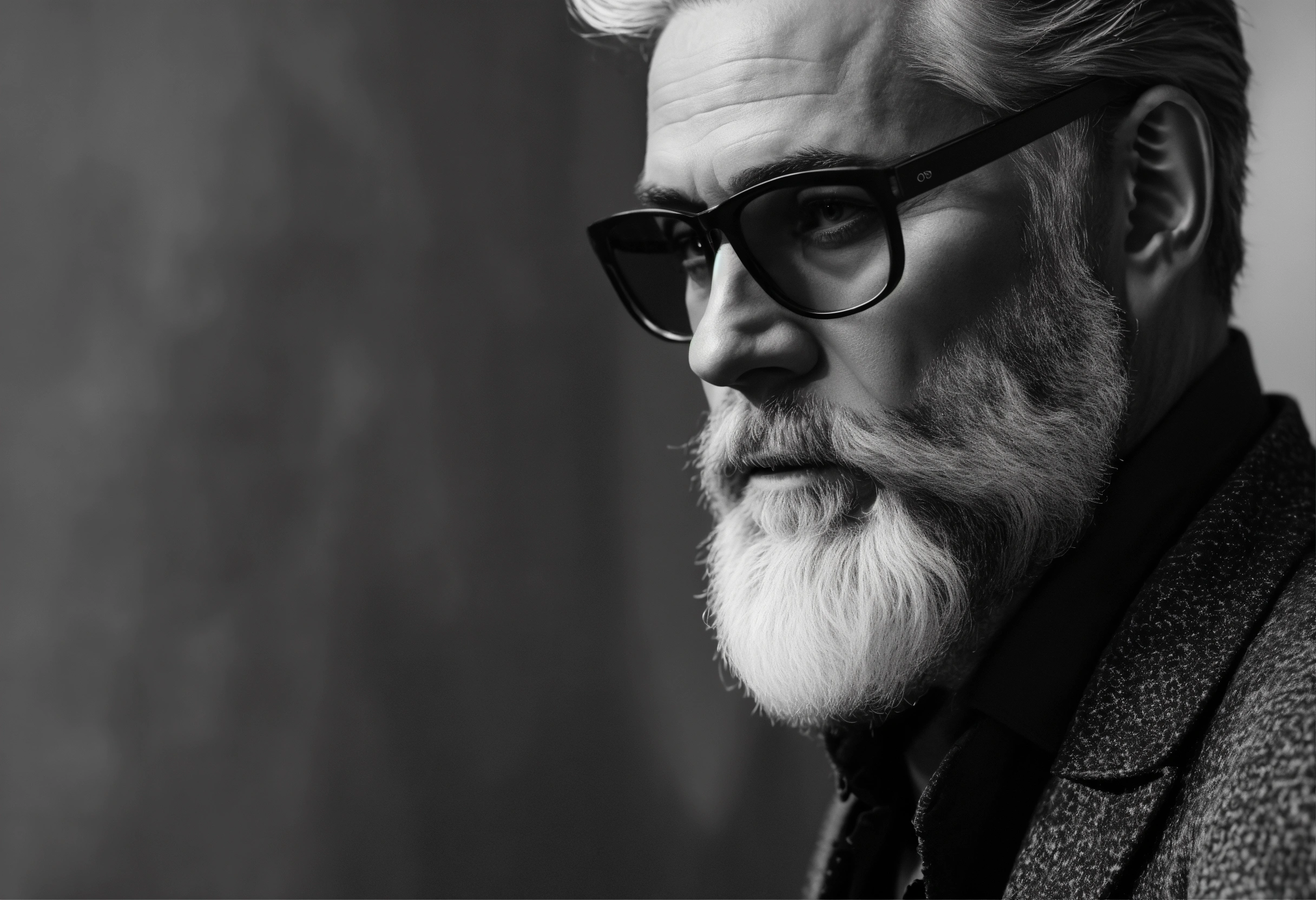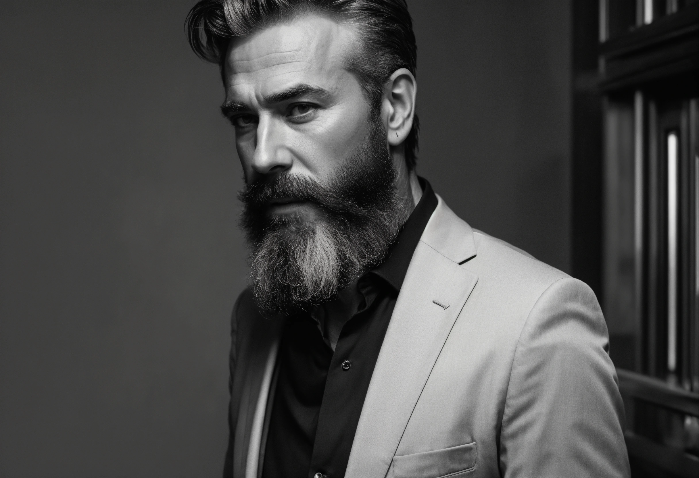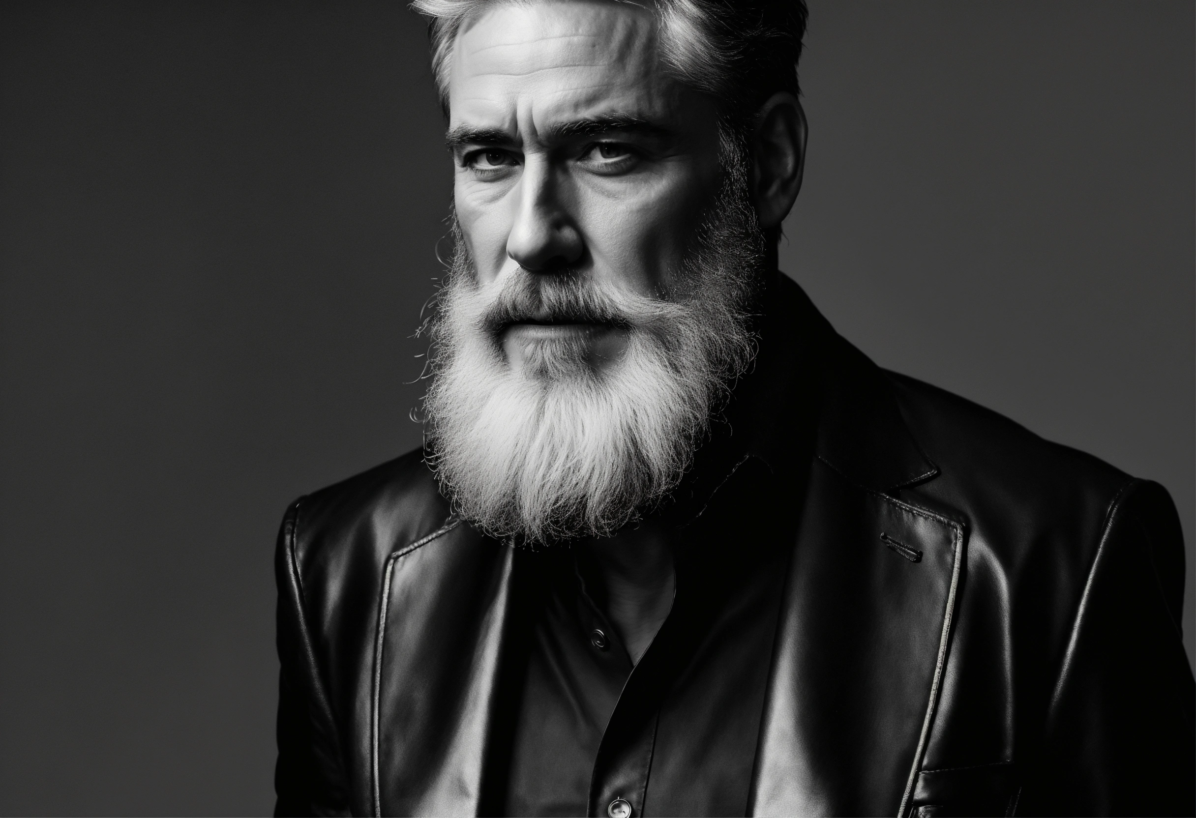 Website mockup, black and white online portfolio for classy 50 year old actor with beard, fashion model