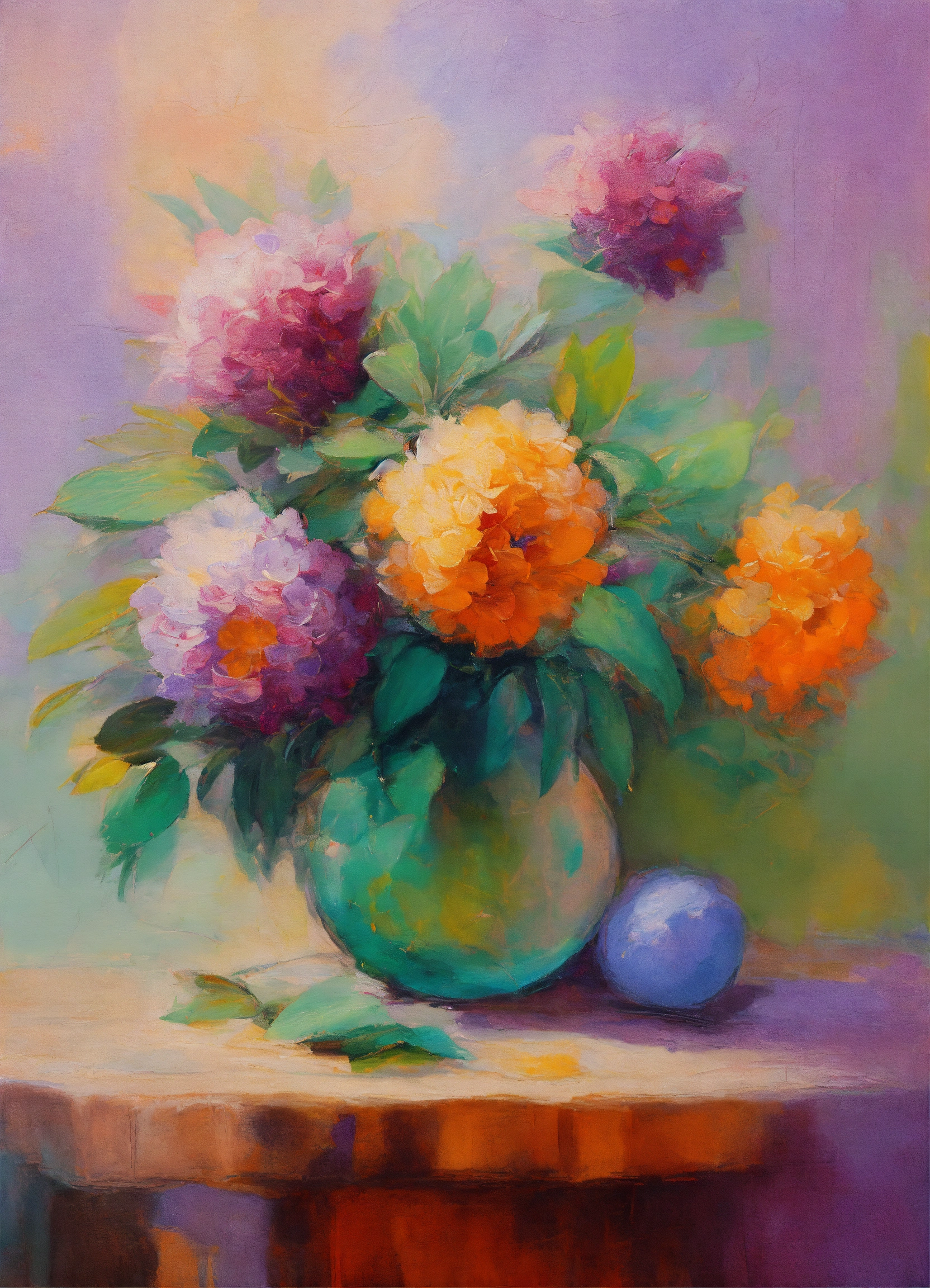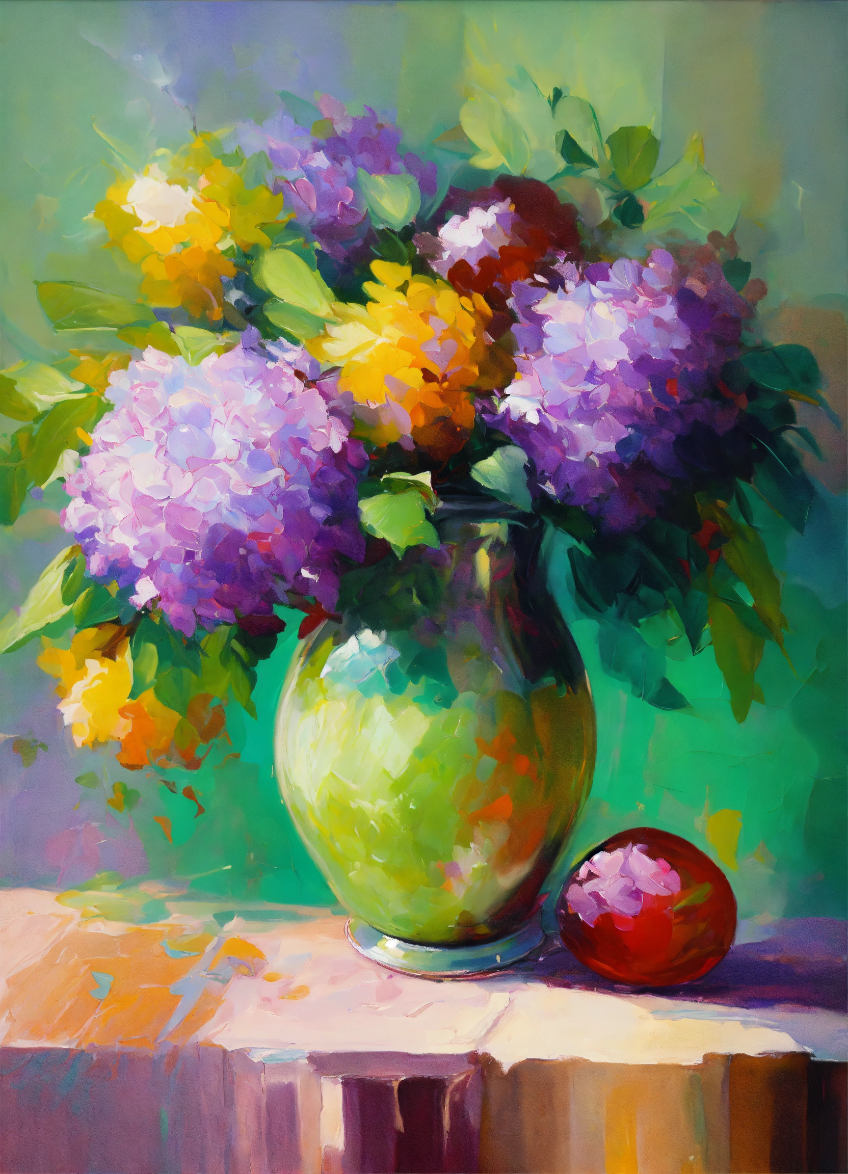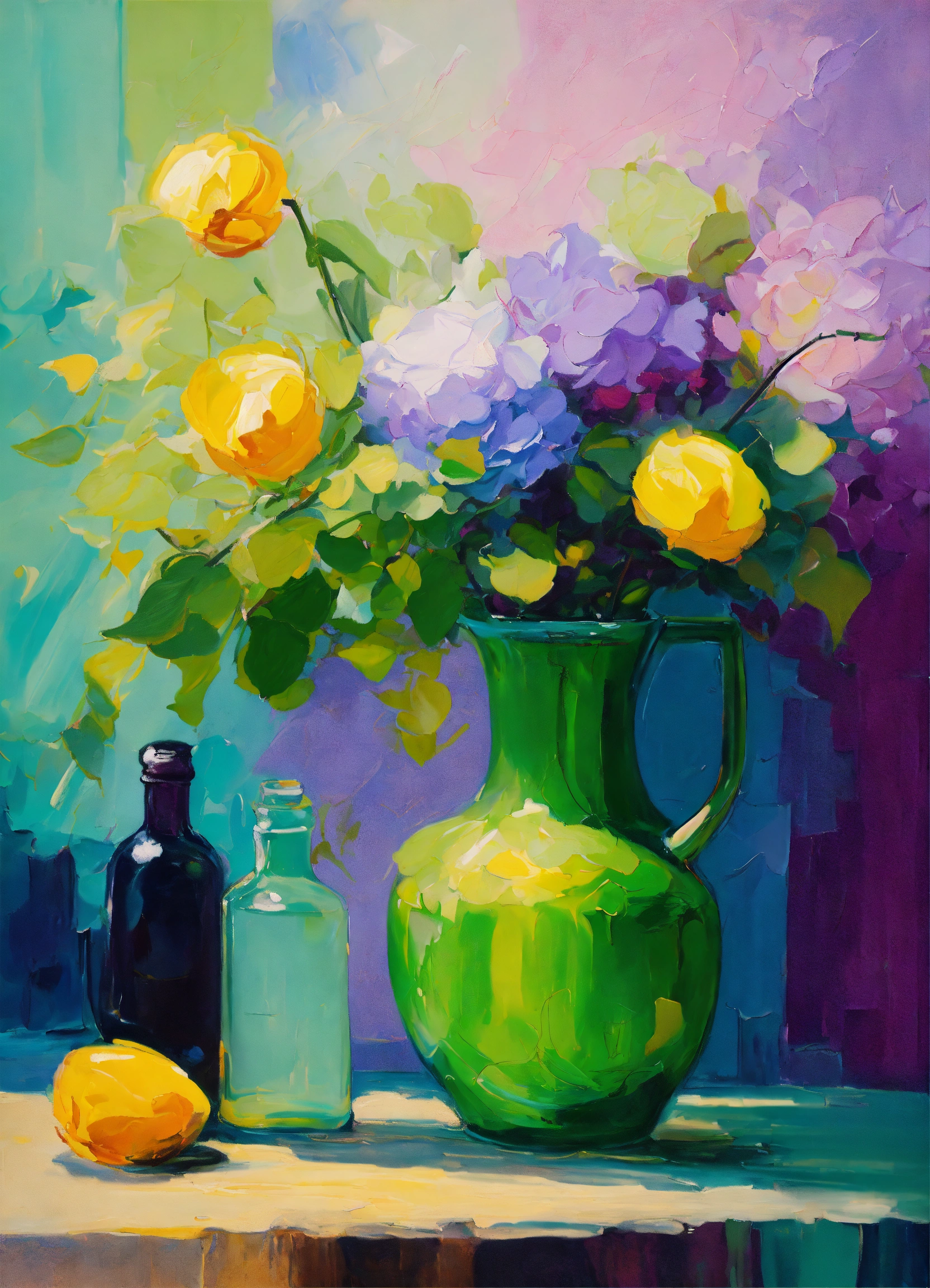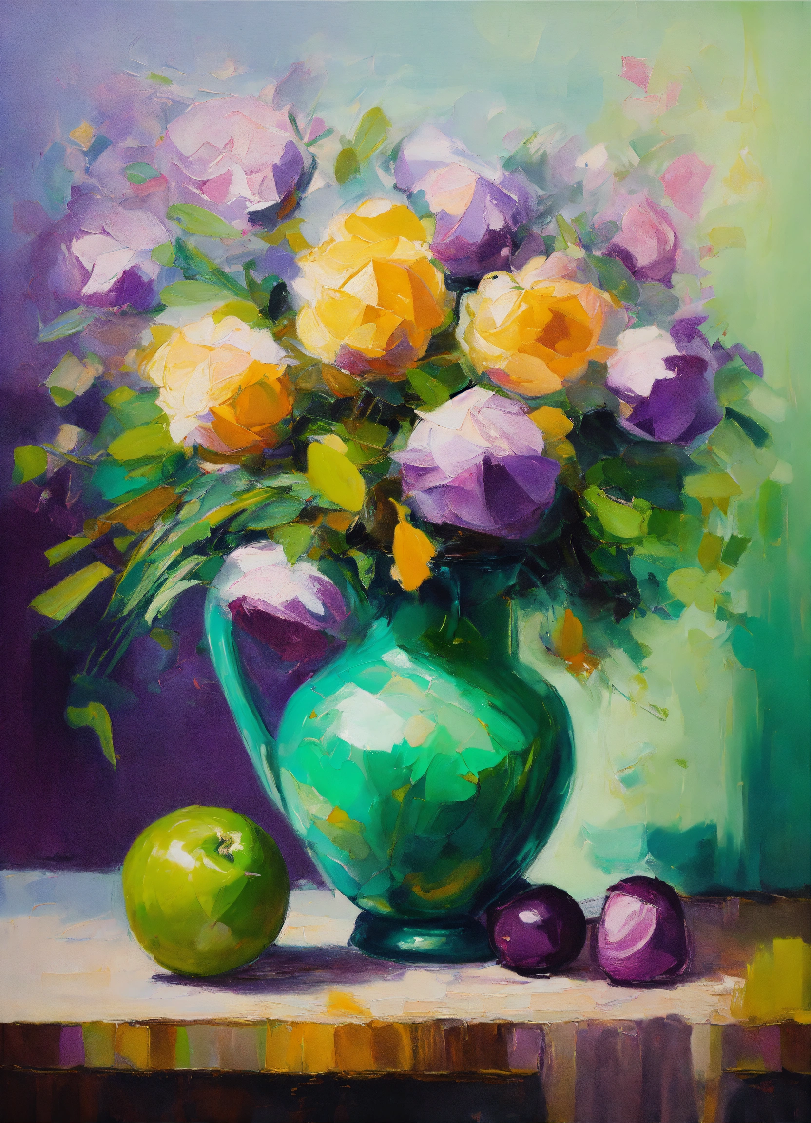 Abstract impressionistic oil painting of beautiful still life
