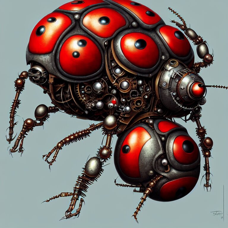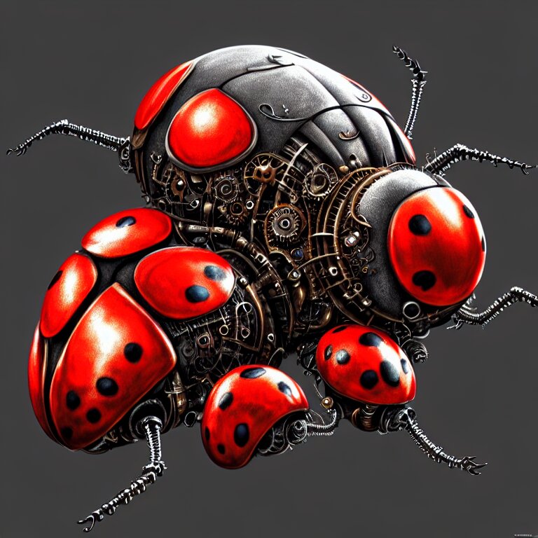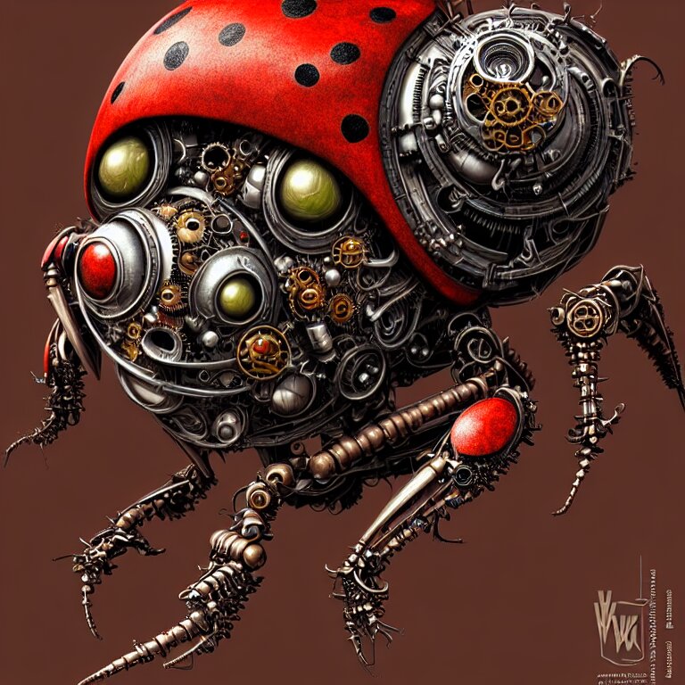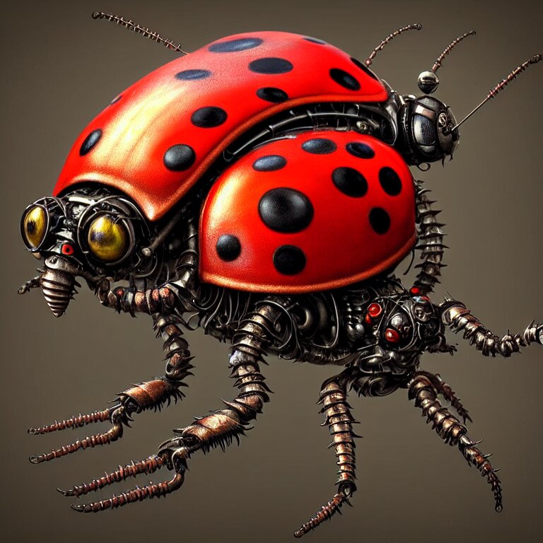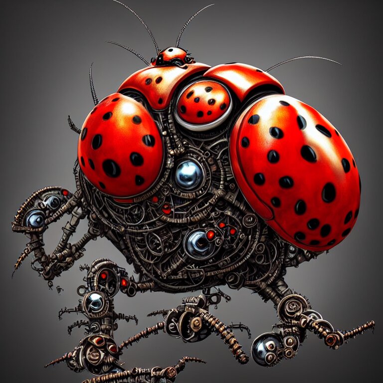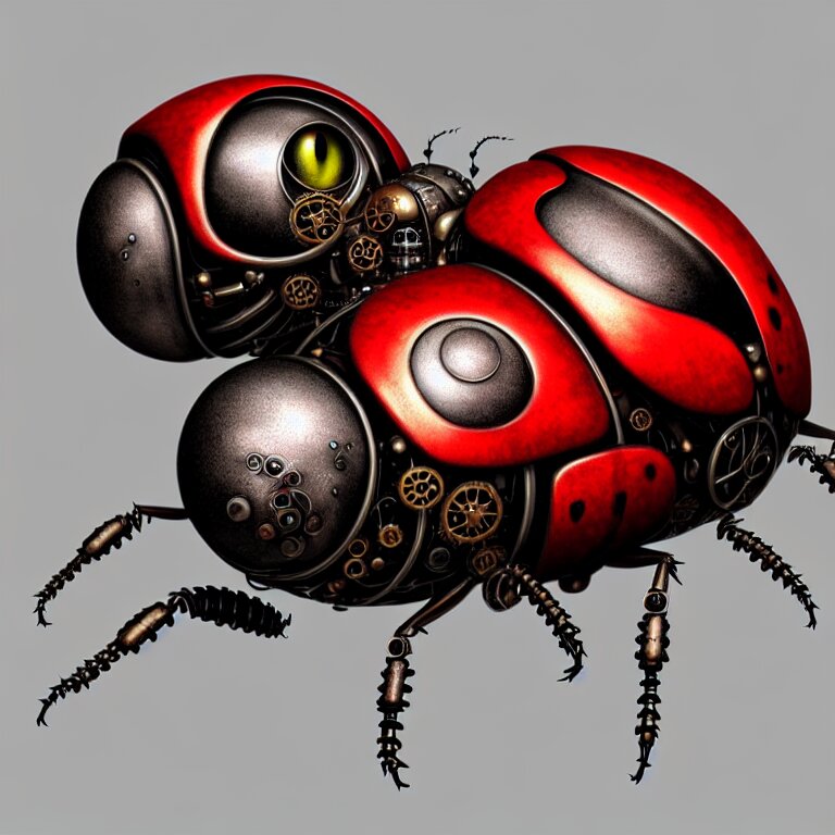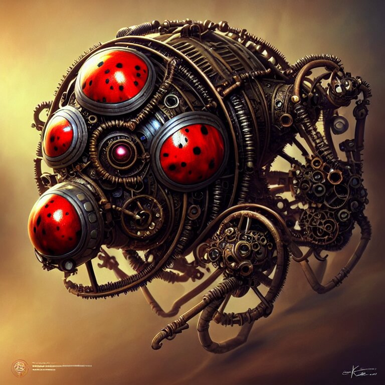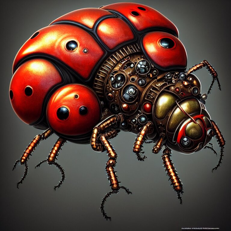 Steampunk ladybug, biomechanical, very coherent symmetrical artwork, cinematic, 3 d model, unreal engine realistic render, 8 k, micro detail, intricate, elegant, highly detailed, centered, digital painting, smooth, sharp focus, illustration, artgerm, tomasz alen kopera, by wlop