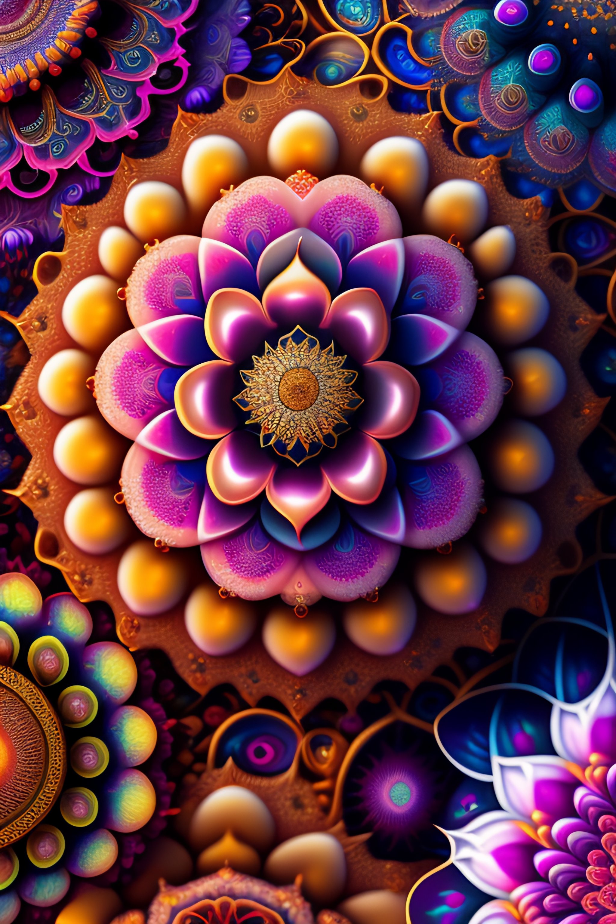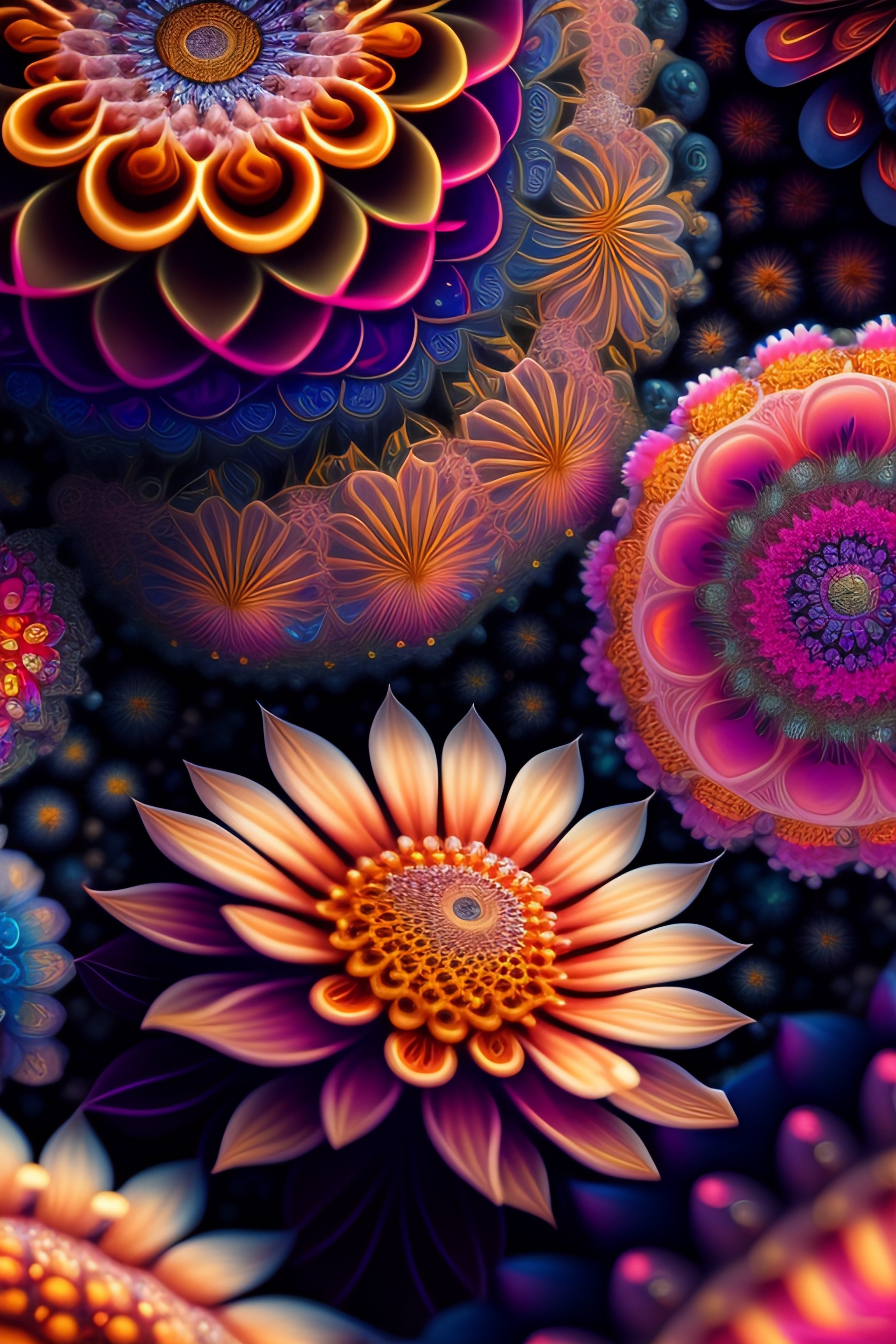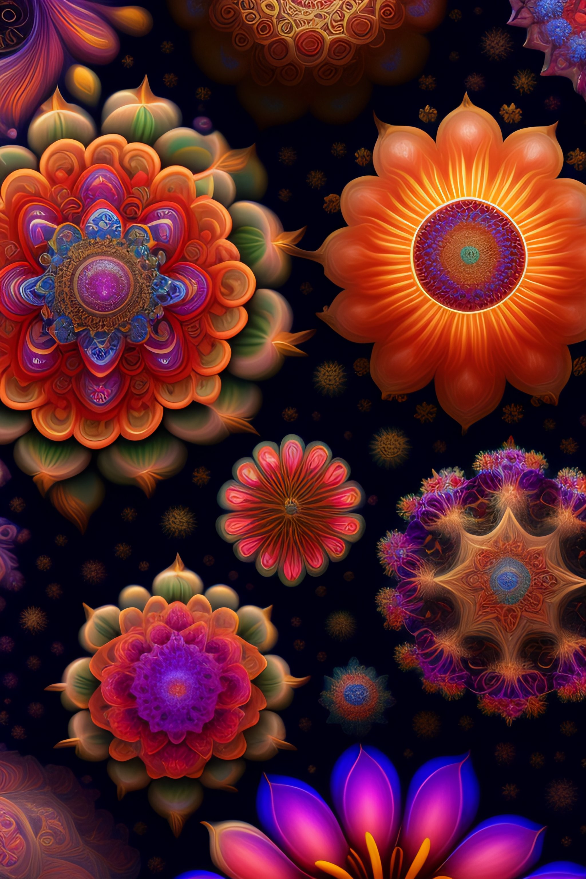 An ultra hd detailed painting of many different types of fractals that look like flowers by android jones, earnst haeckel, james jean. behance contest winner, generative art, baroque, intricate patterns, fractalism, movie still, photorealistic