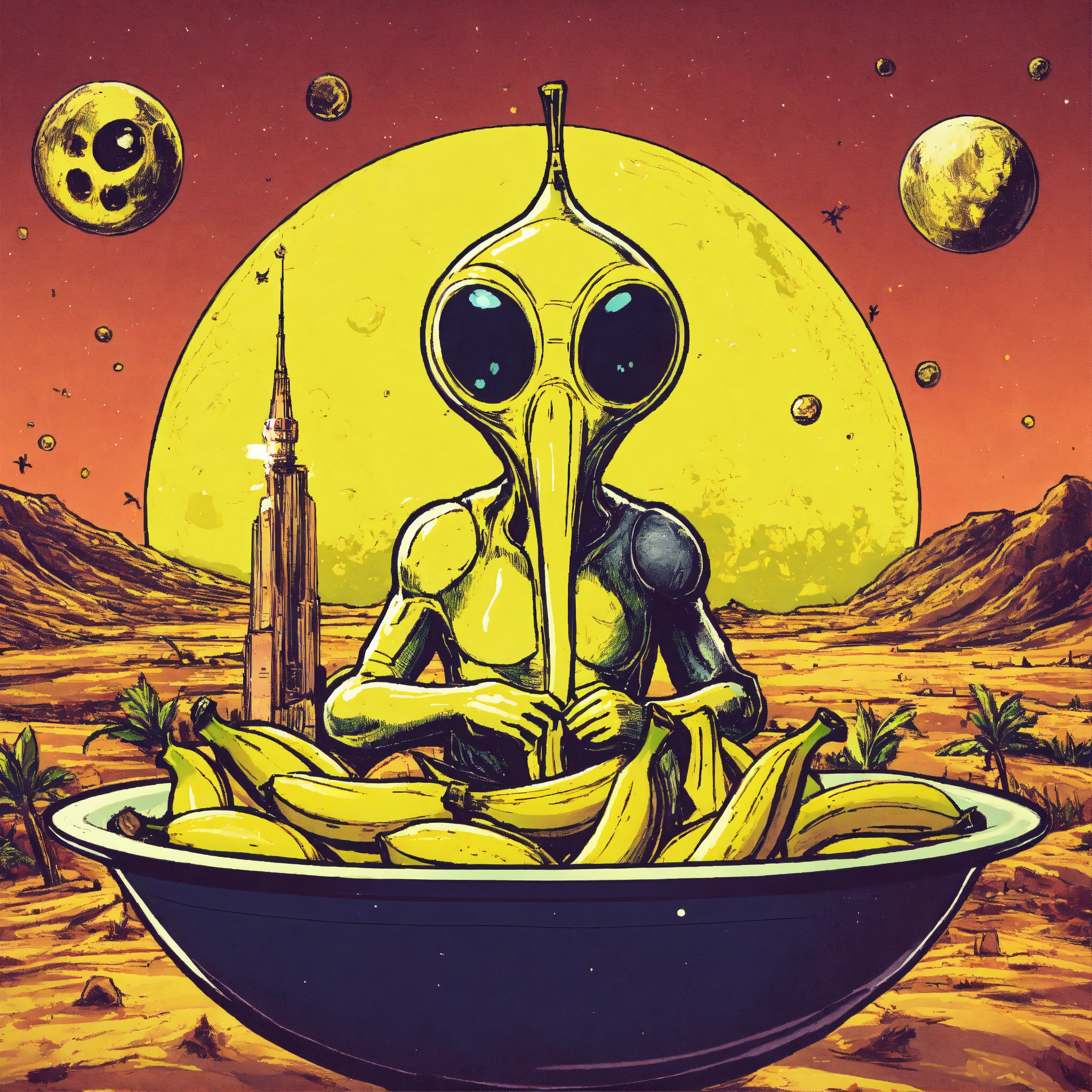 Banana-eating alien logo