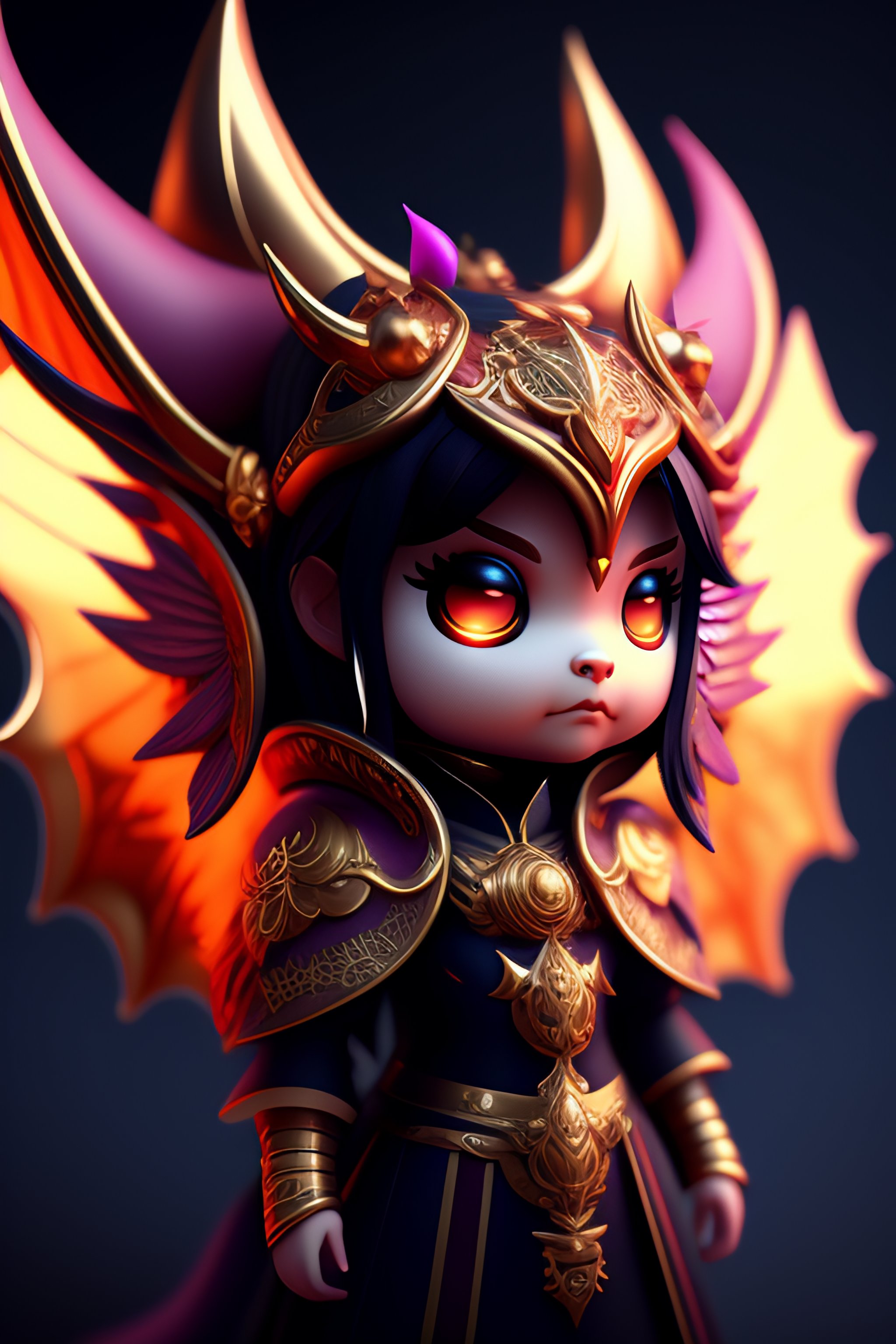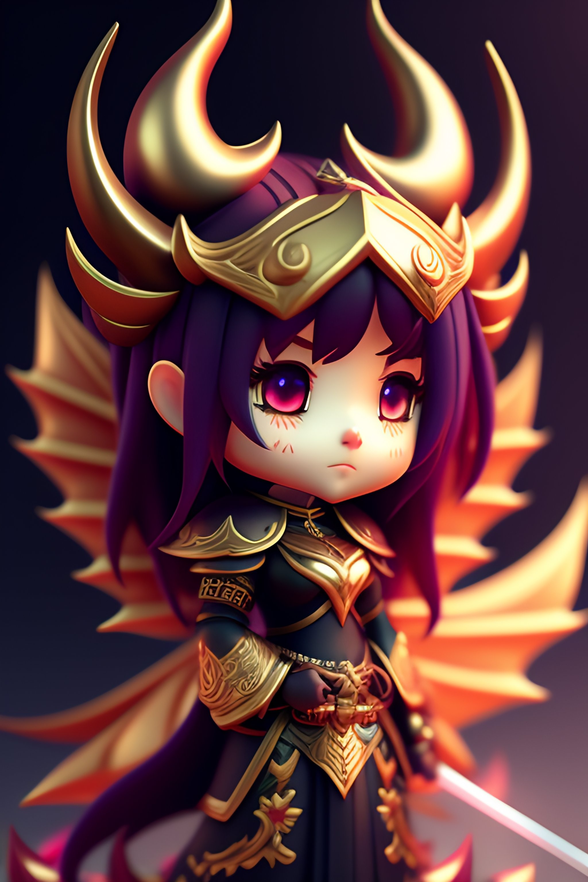 Https://lexica.art/prompt/c81e80d2-a107-4839-97ab-ff43c392c910 imagin a design on the back of a tcg card full shot of a dragon warrior chibi from the abyss, symmetrical, dark foreboding atmosphere, maplestory art, kawaii, demon horns, wings, fantasy illustration, award winning, artstation, intricate details, hyperdetailed, 8k resolution, octane render