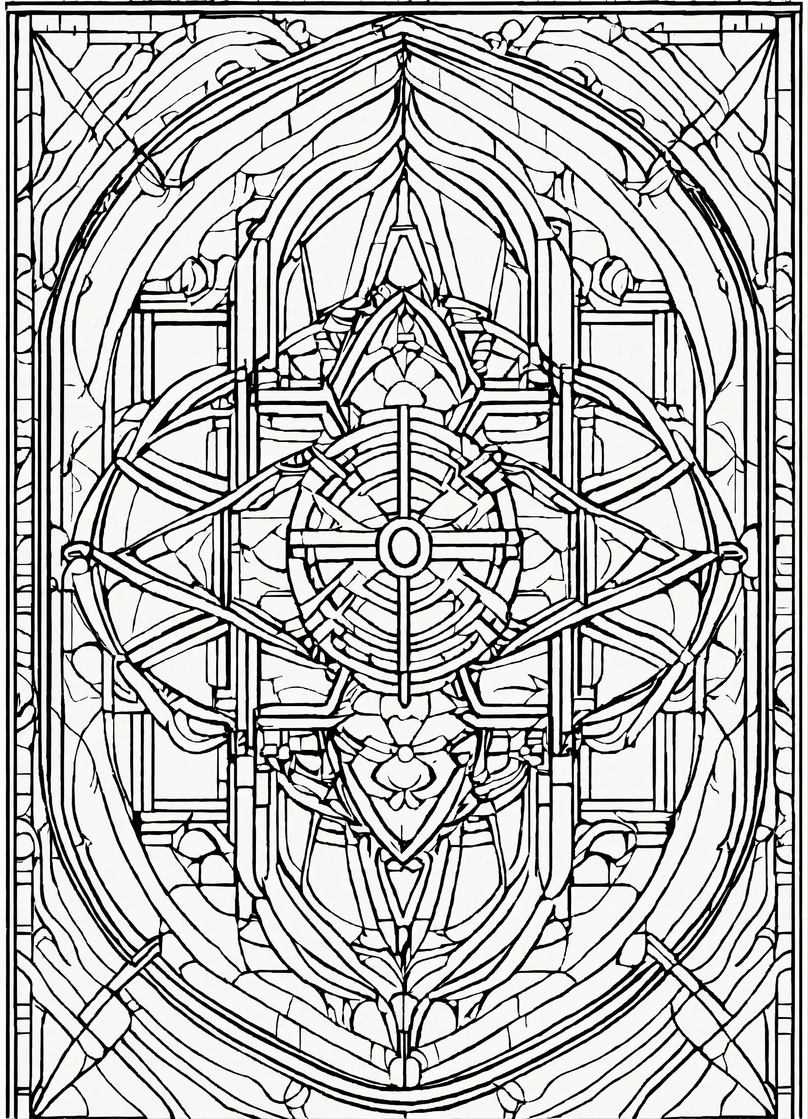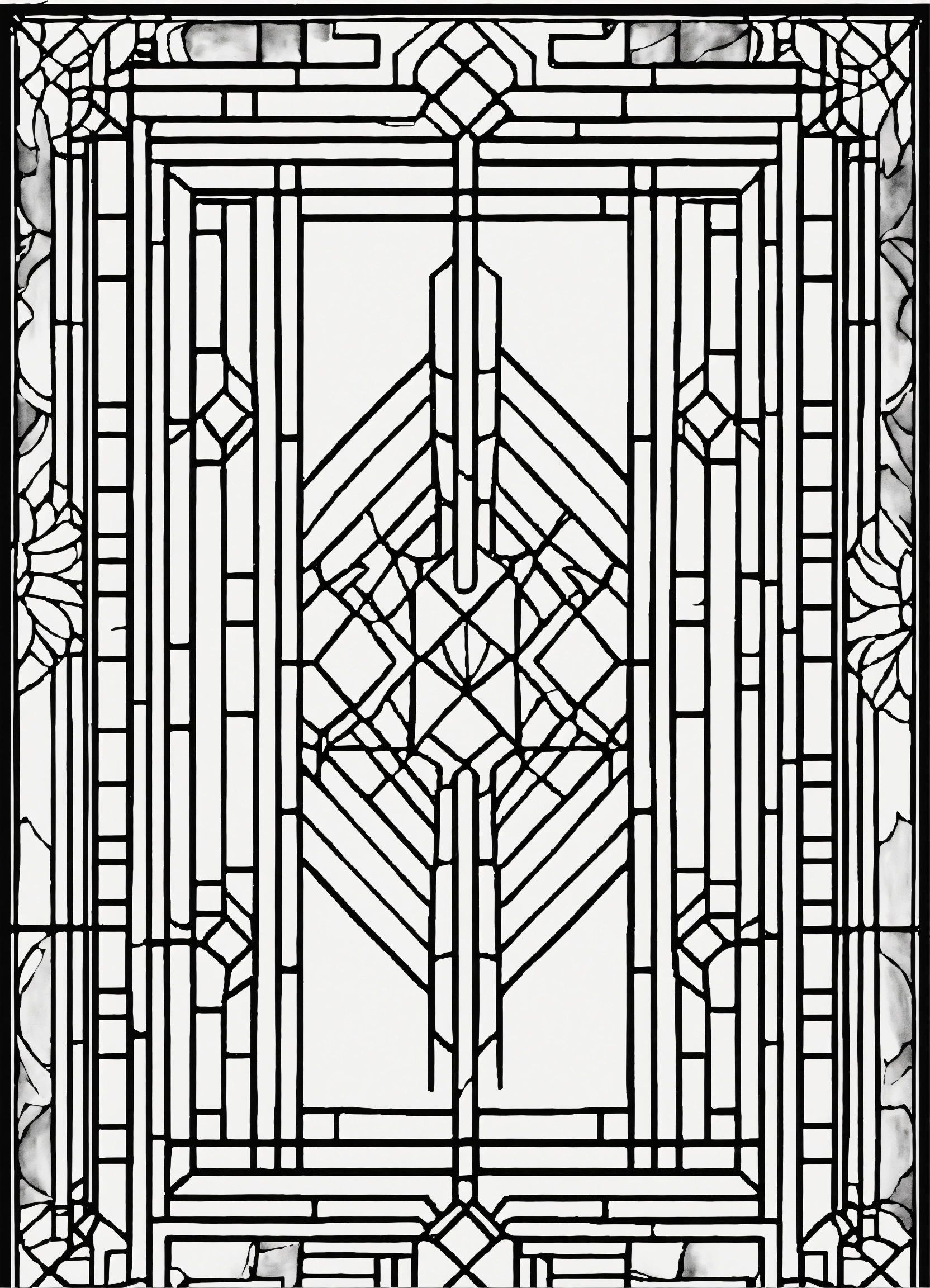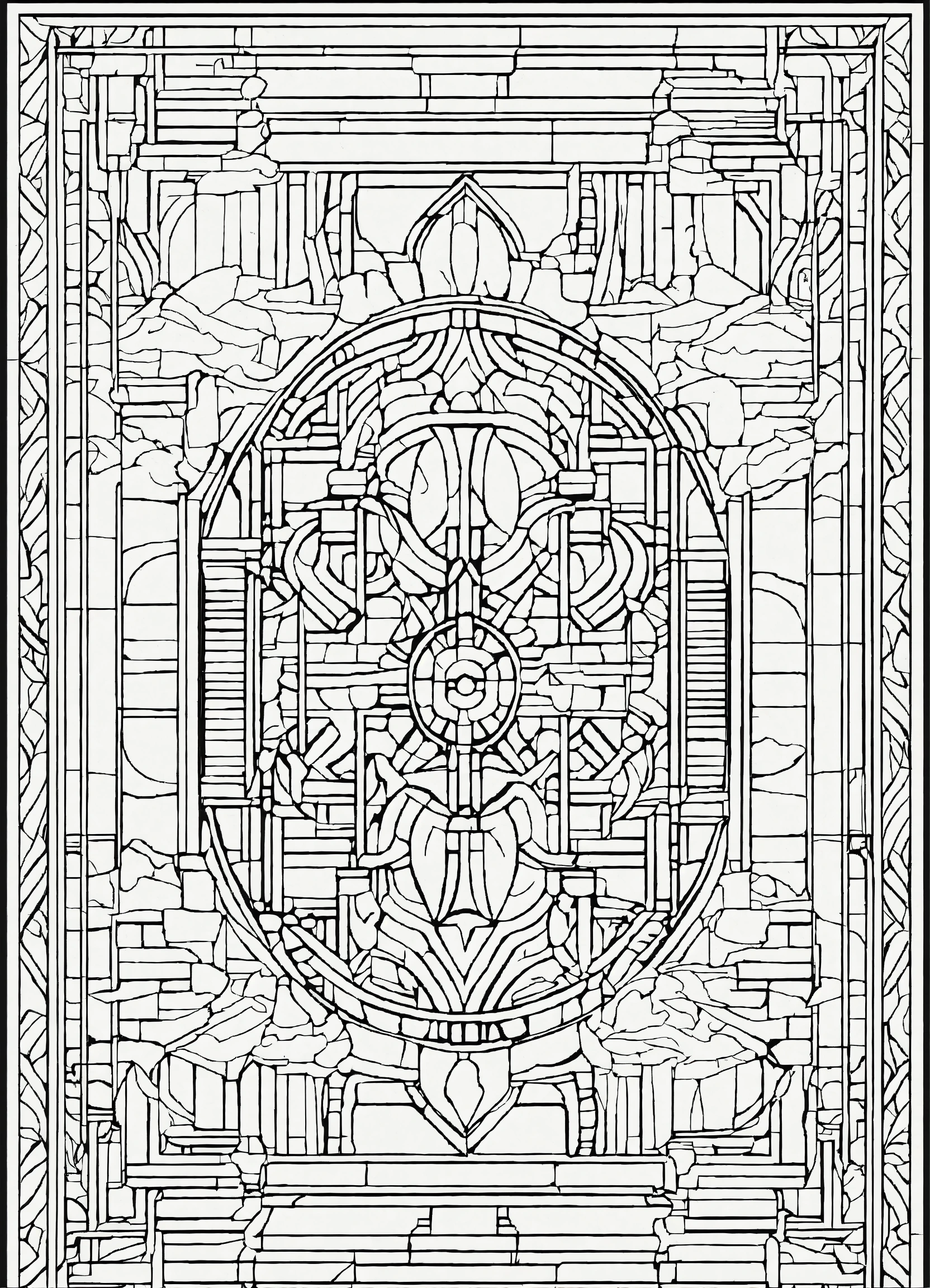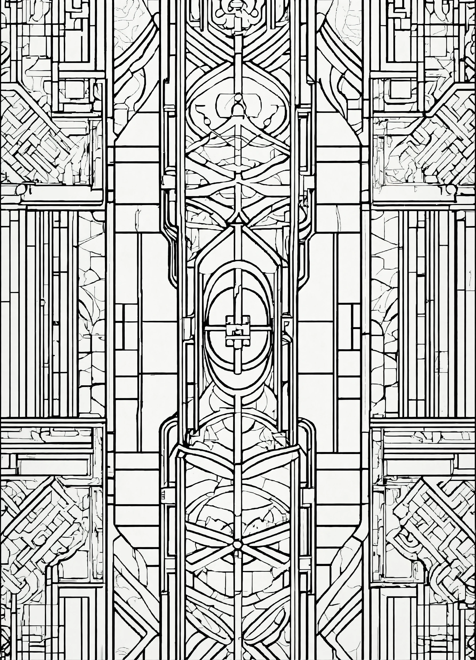 Coloring page for adults, bold lines, dark lines, symmetrical, white background, clean line art, fine line art, minimalistic art naveau style, white and black, big empty white area in the middle