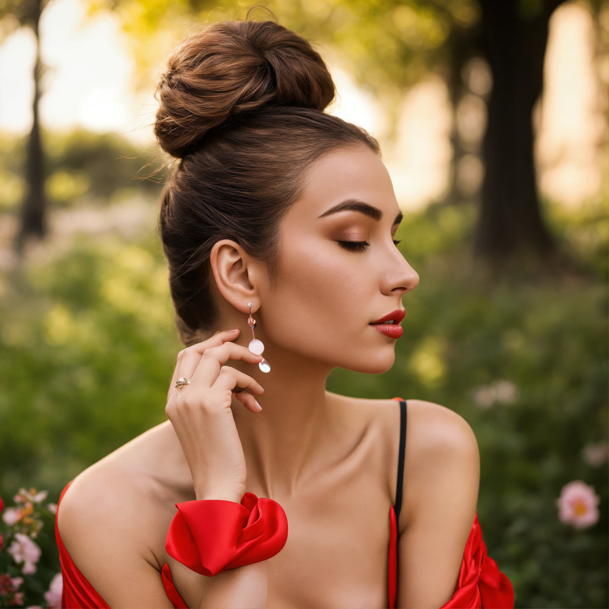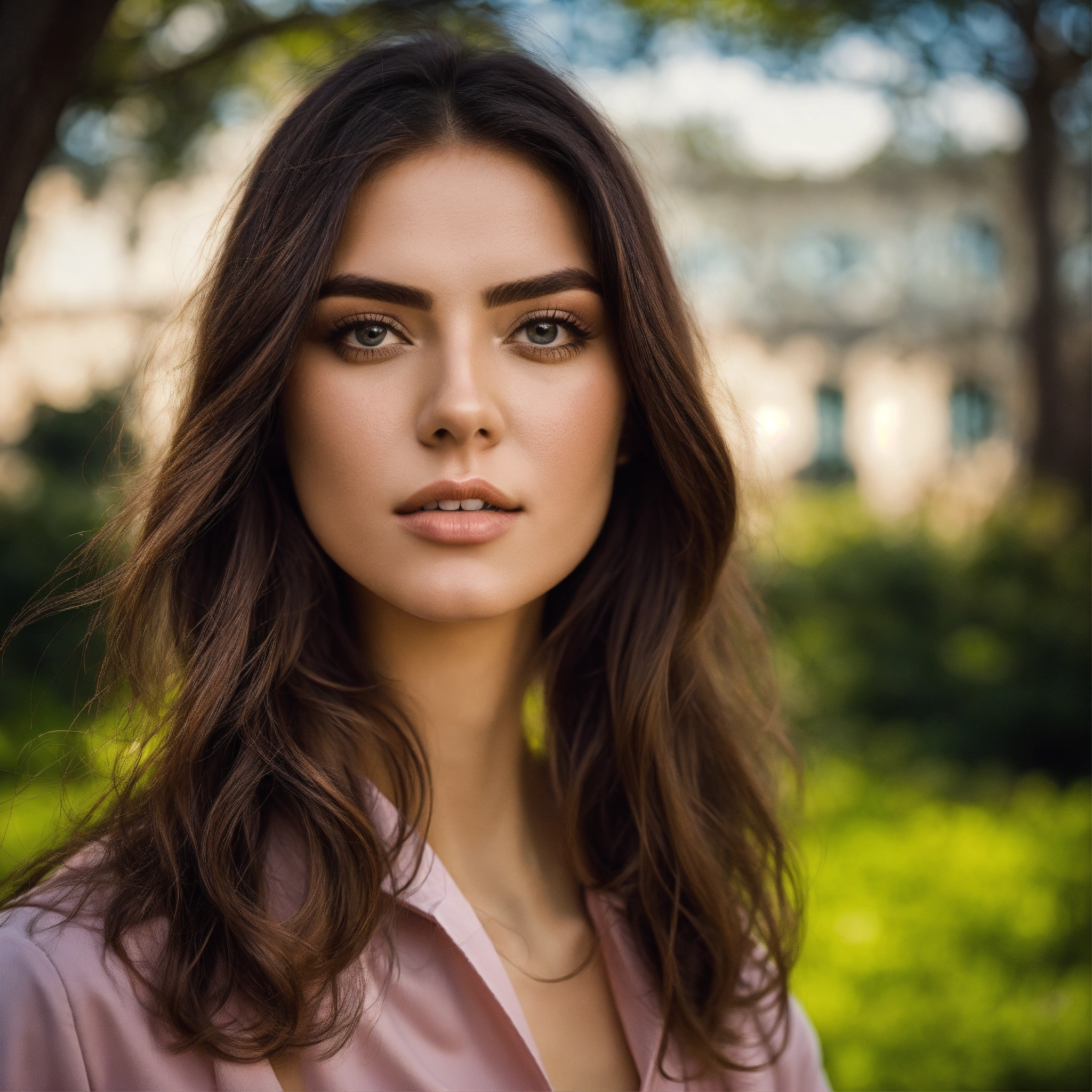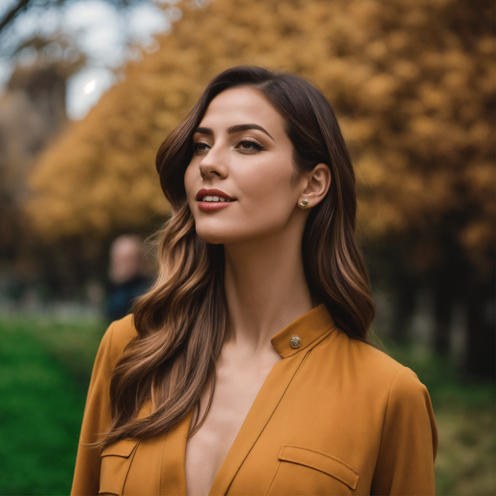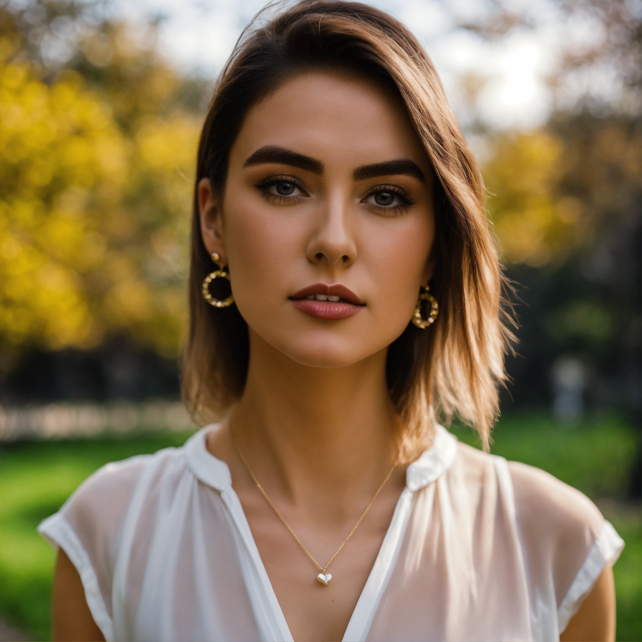 Signora che indossa un gloss labbra in un parco