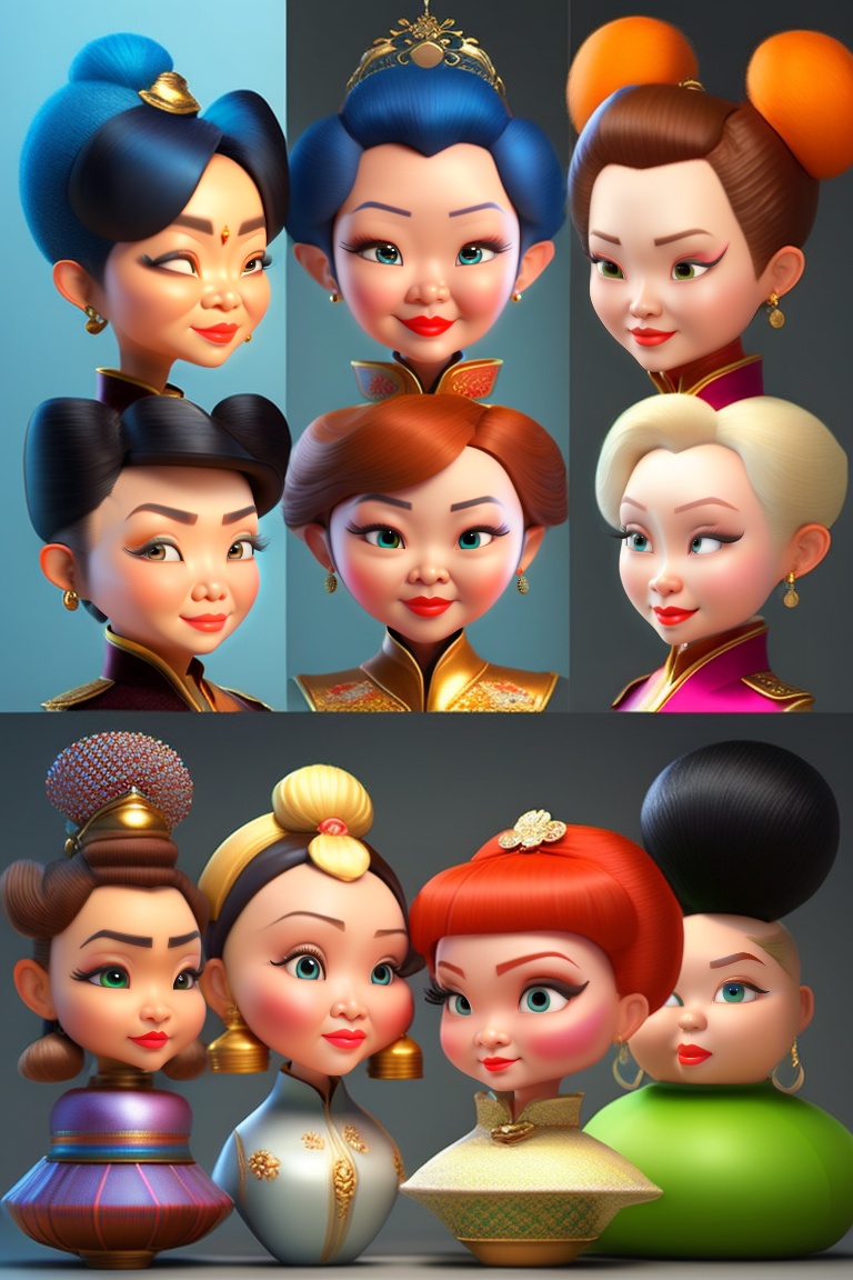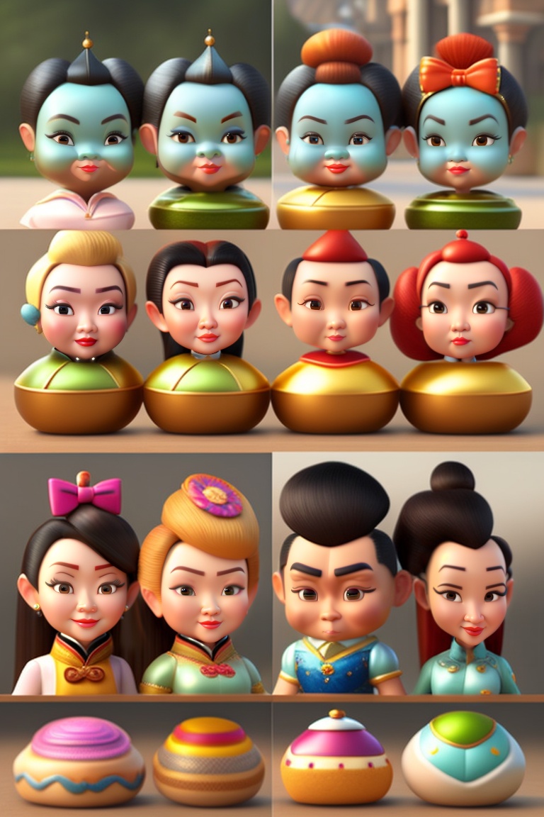 3d characters from disney pixar animation, chinese film actors, soulful eyes, pickles style, disney, surreal fabrics, surreal hairstyles, surreal skin, surreal dazzle jewelry accessories, contour light, natural fill light, wedding photography, --q 2 --s 250 --style expressive --style cute --style scenic --style raw --niji 5 --ar 9:11 --q 2 --s 750 --style