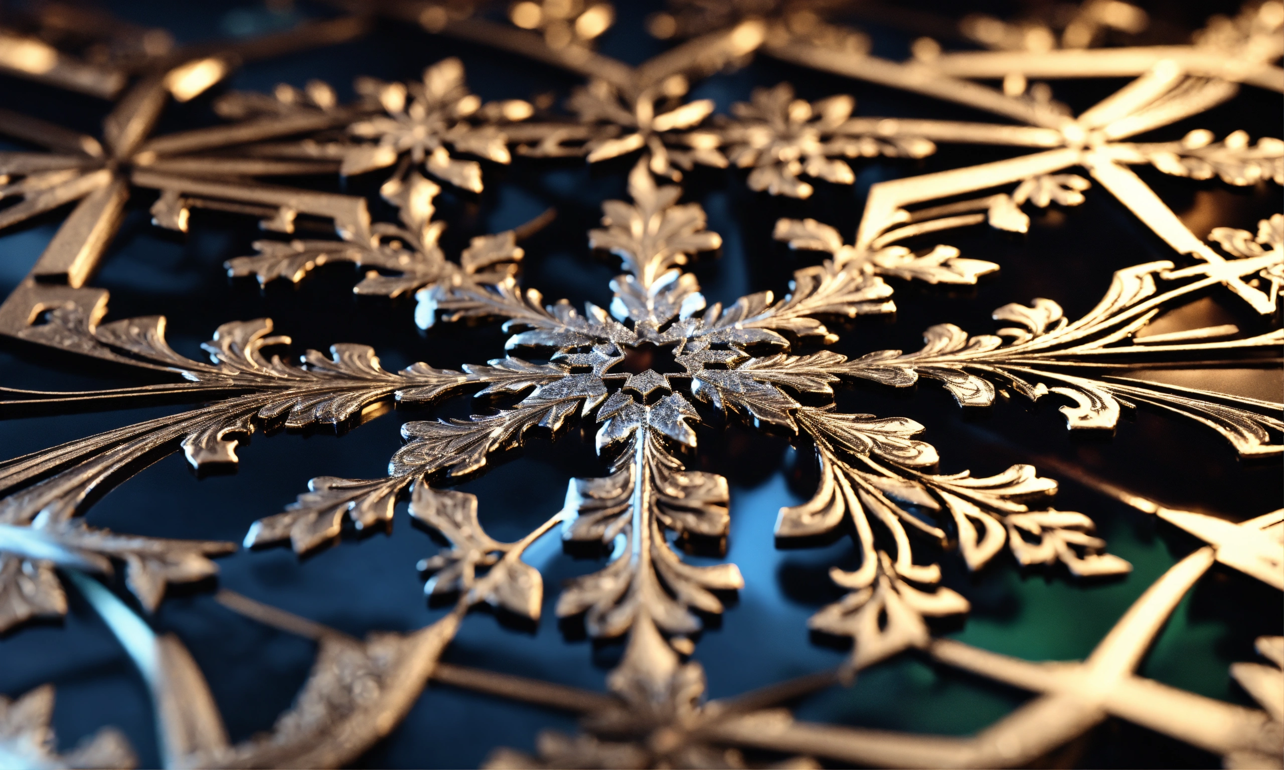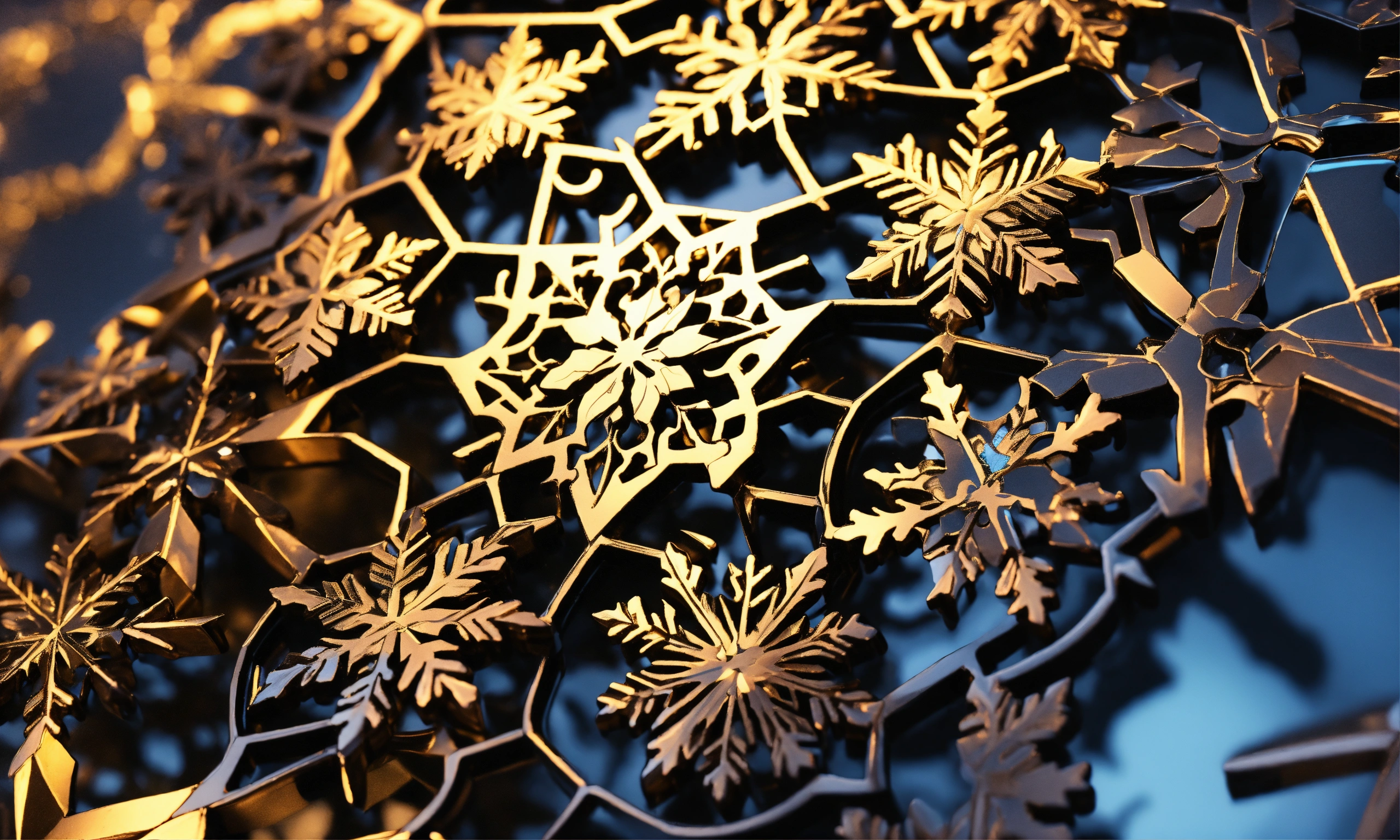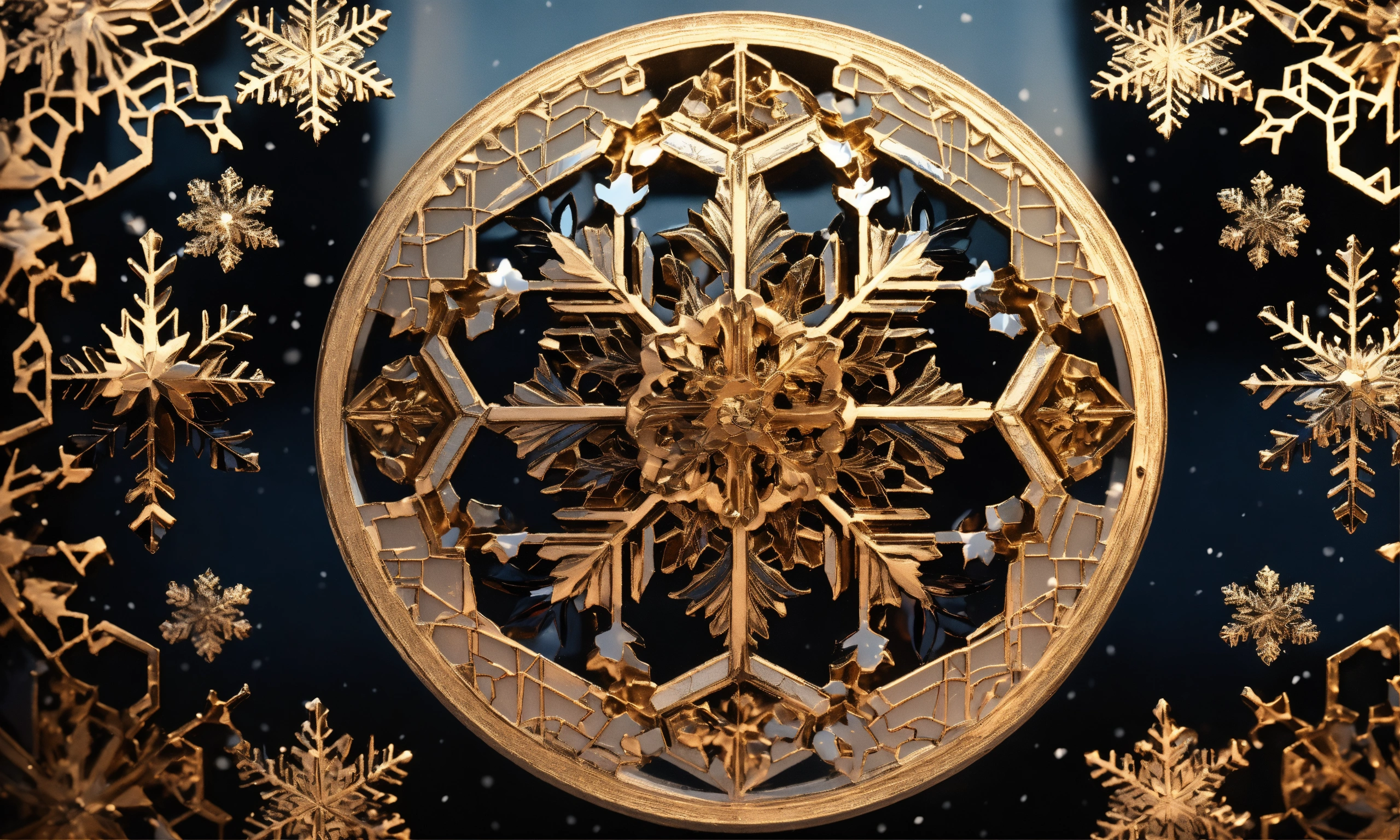 3d stunning detailed titanium windows christmas snowflakes engraved obsidian and hyper realistic 8k