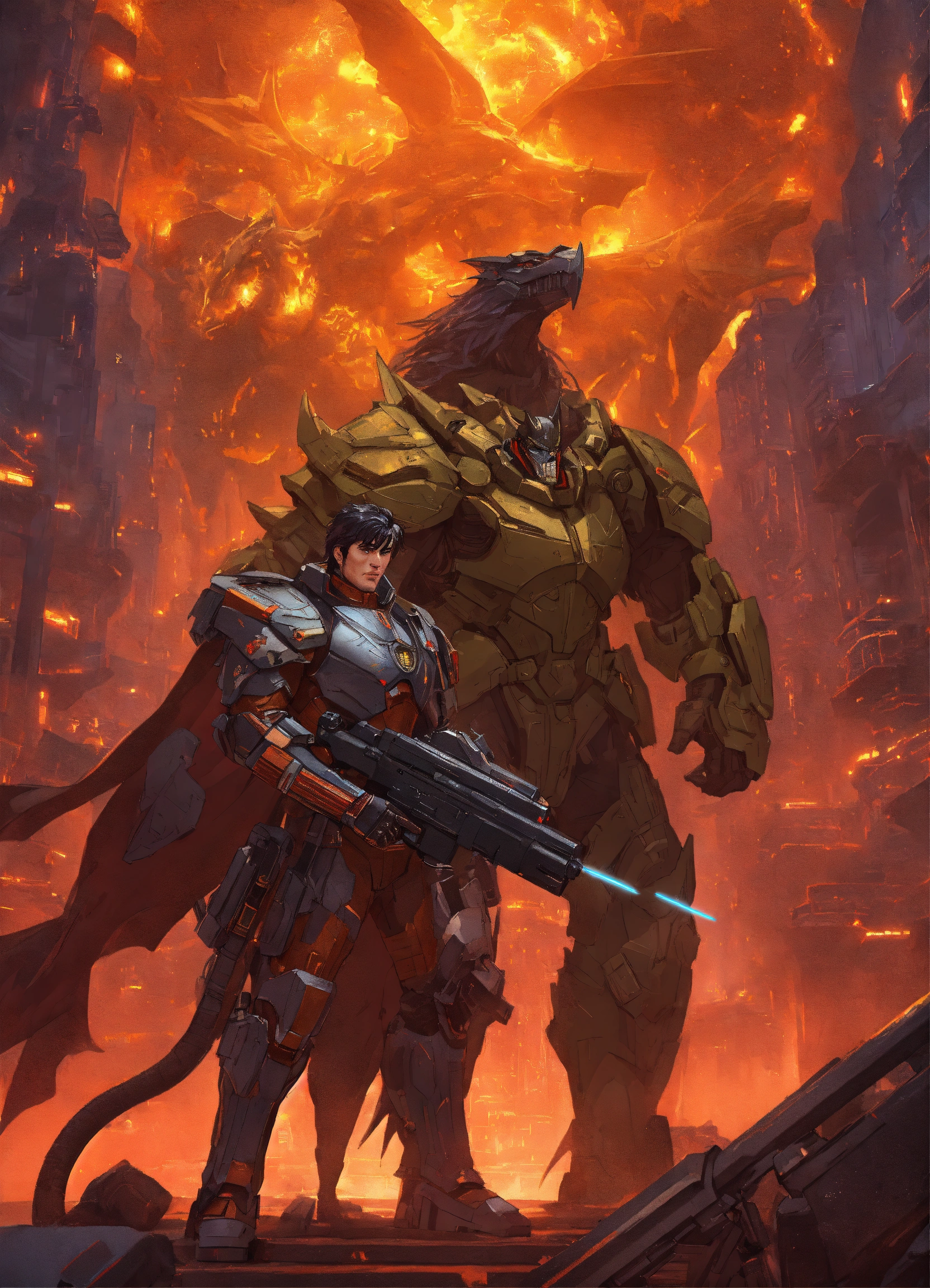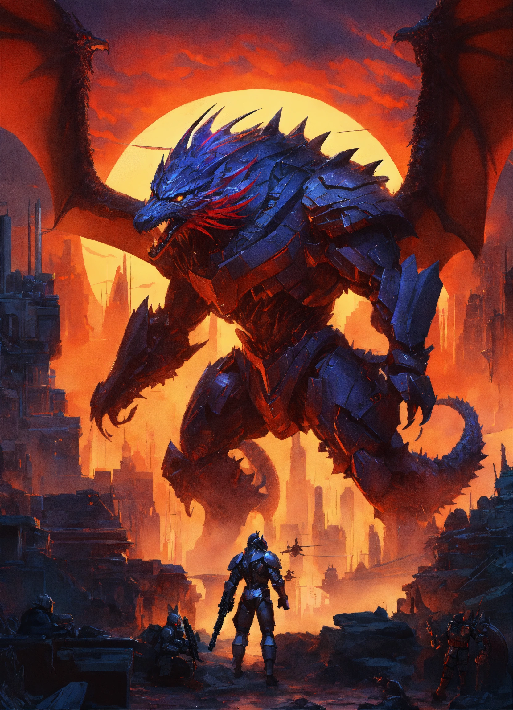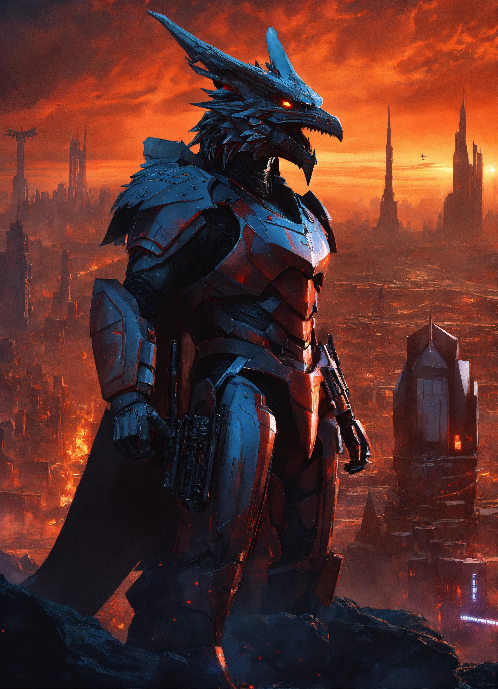 Dragon hybrid mutated male & female werewolves\raven batman, dracula, vampire, superhero athletic cyborg men & women in 60th century dragon-like muscular humanoid in full body armor scenes or mega future blade runner cities scenarios holding 5965 a.d. advanced star wars blasters, laser rifles & ancient looking h. r. giger-like gears of war-like big gun weapons in a photo of a quetzal armored figure fighting on a detailed advanced futuristic civilized back-drop densely or heavily populated worlds with metallic chrome wolf & raven vampire dragons on land & in space vs rom the space knight, battlestar galactica meta-hybrid cylons vs alien cyborg kaiju space predators in style of laurie greasley, studio ghibli, akira, kryptonian, galvatron movie version, tomiyama, gene roddenberry, george lucas, james gilliard, genshin impact, pixiv fanbox, acrylic palette light sabers, 4k, chrome, vibrant colors, deviantart, trending on artstation, rendered in highly detailed cinematic studio quality gci