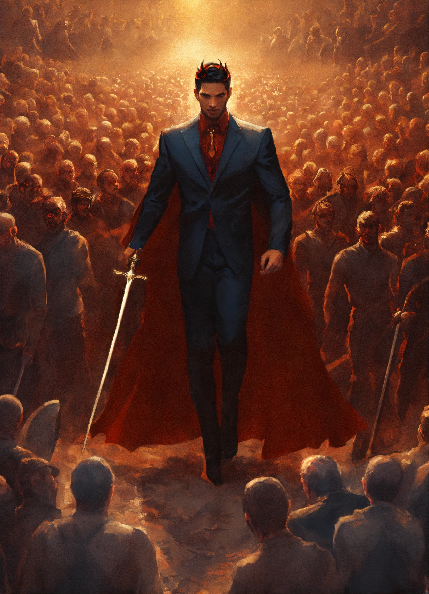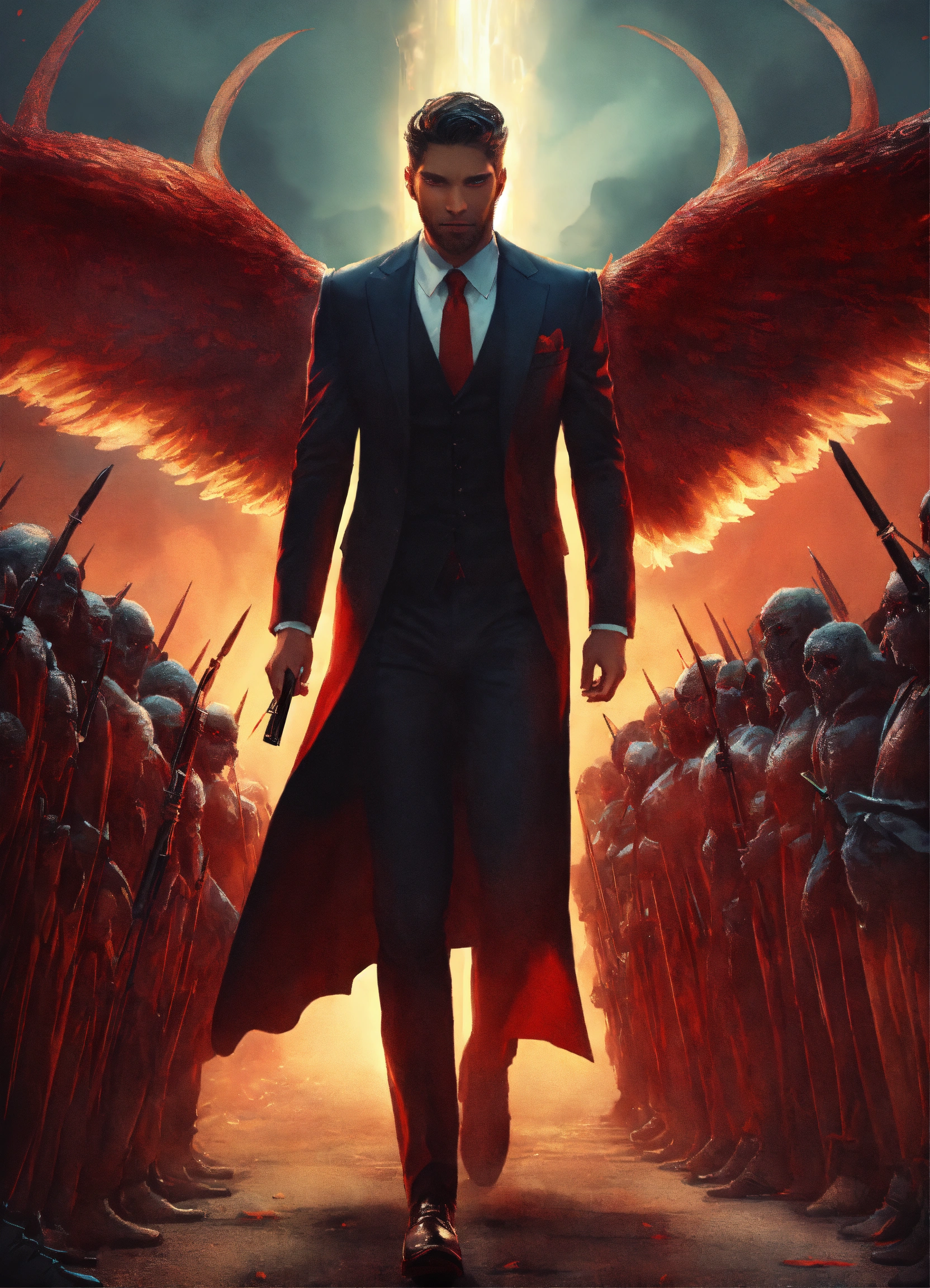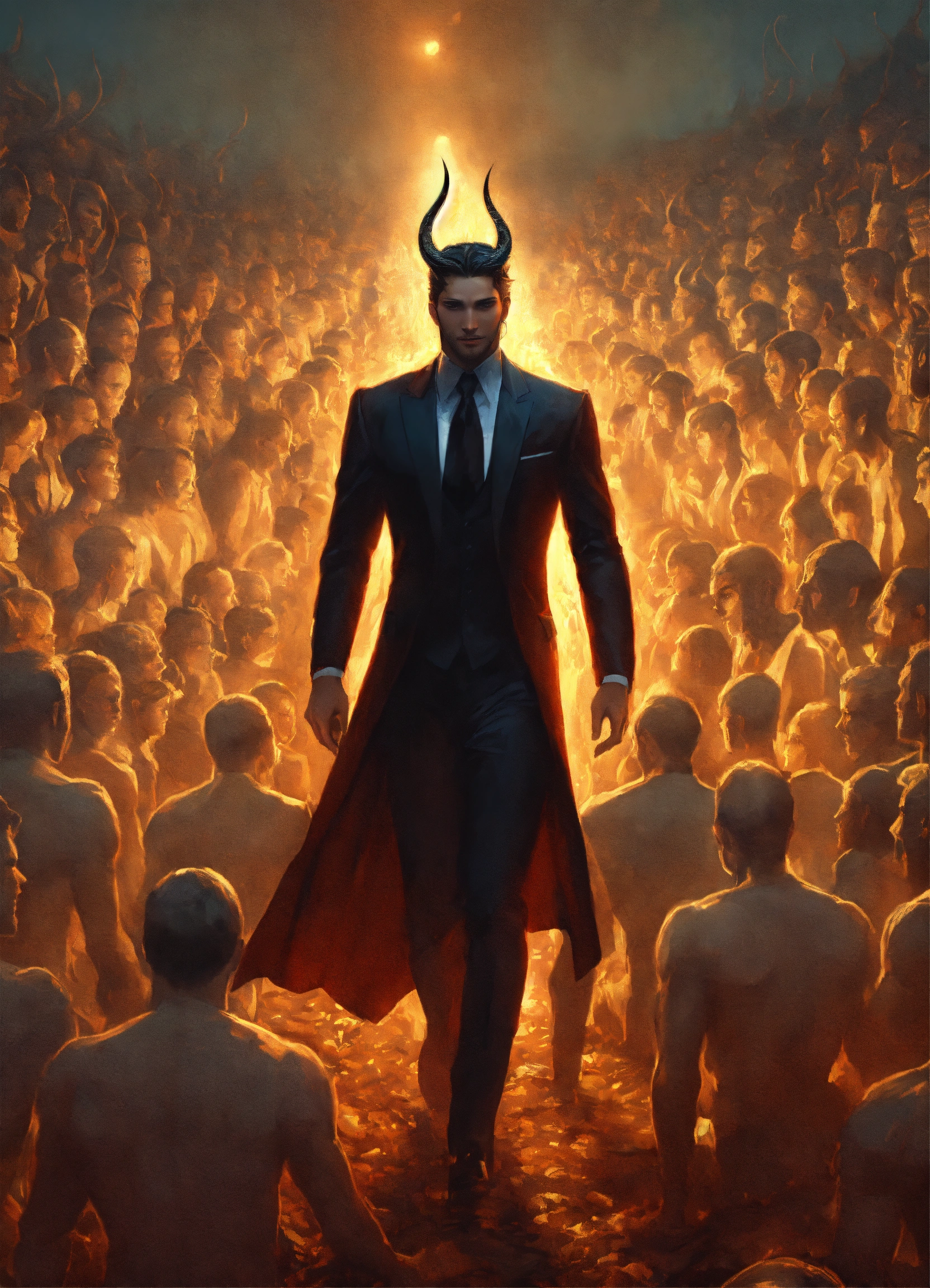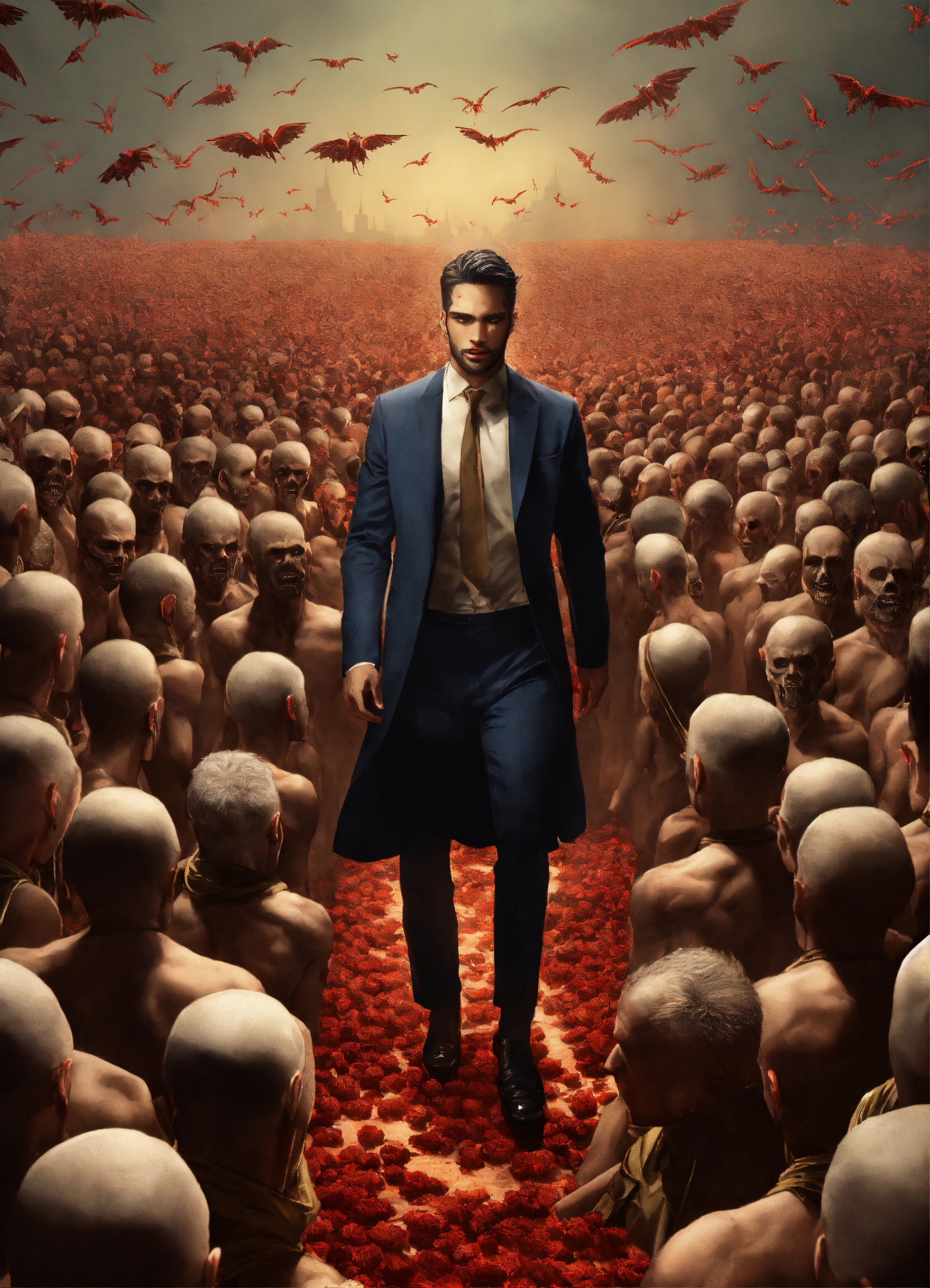 Lucifer leading an army of blind humans