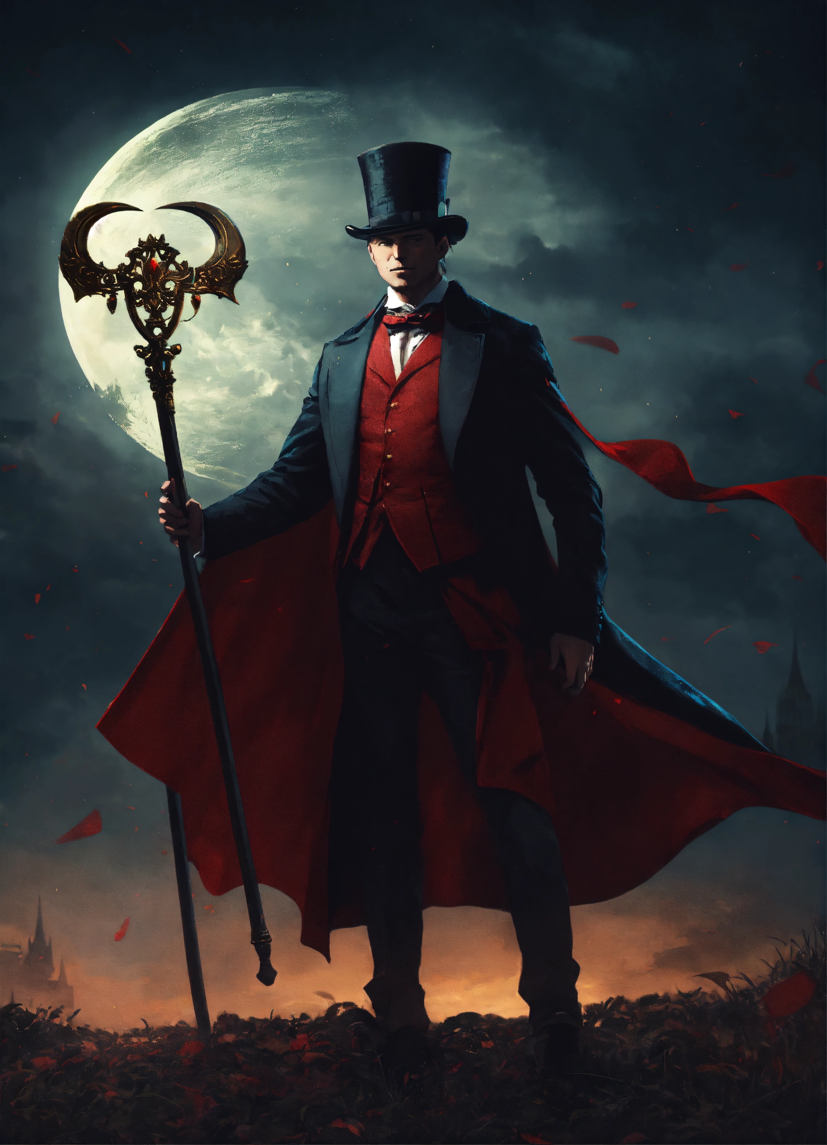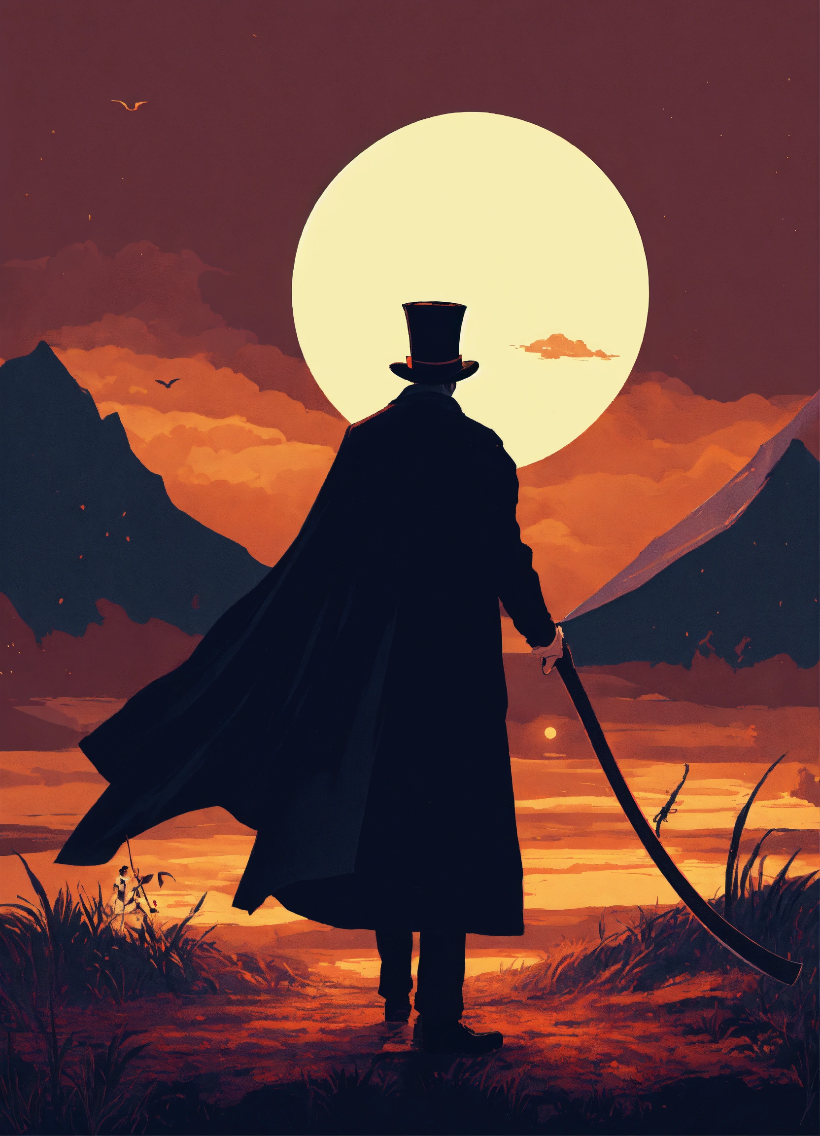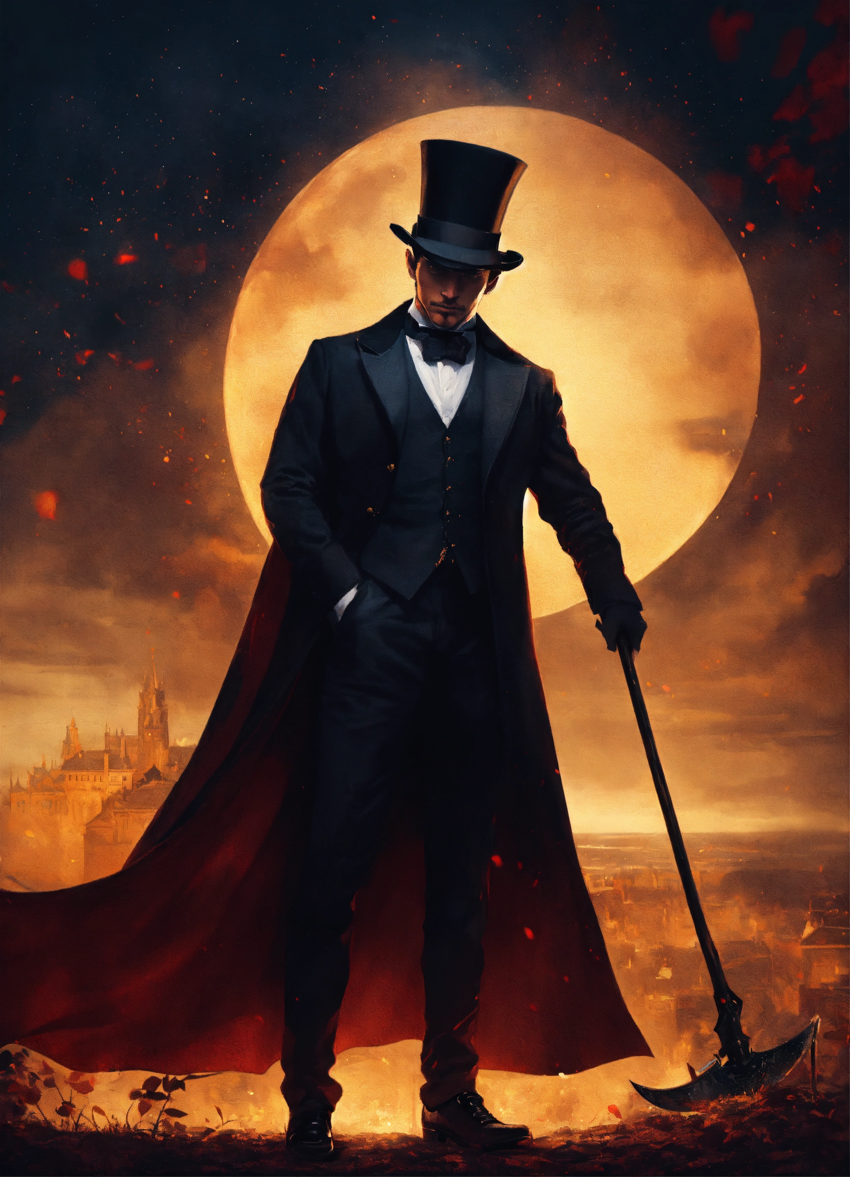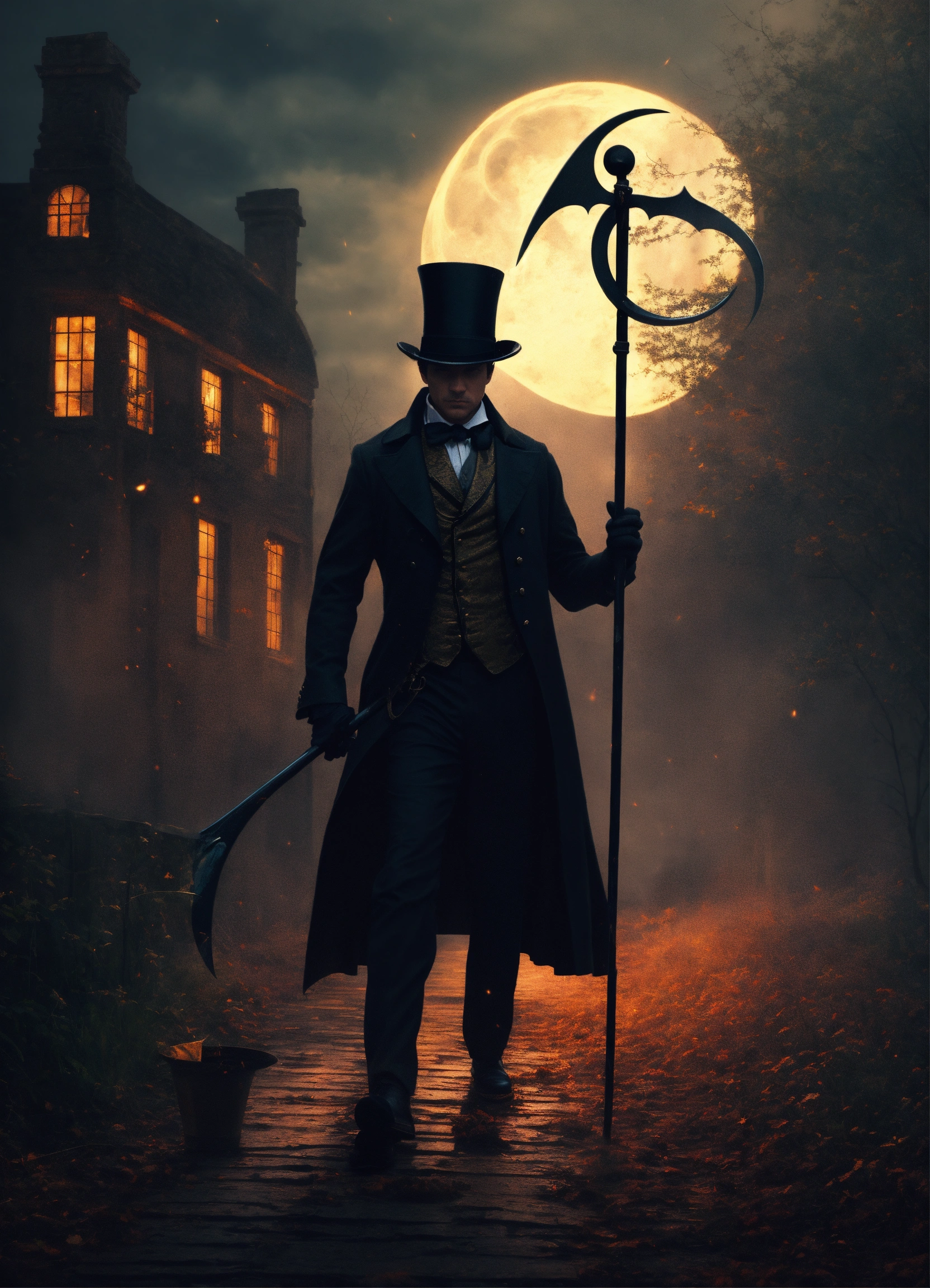 A man in a top hat and cape holding a scythe night