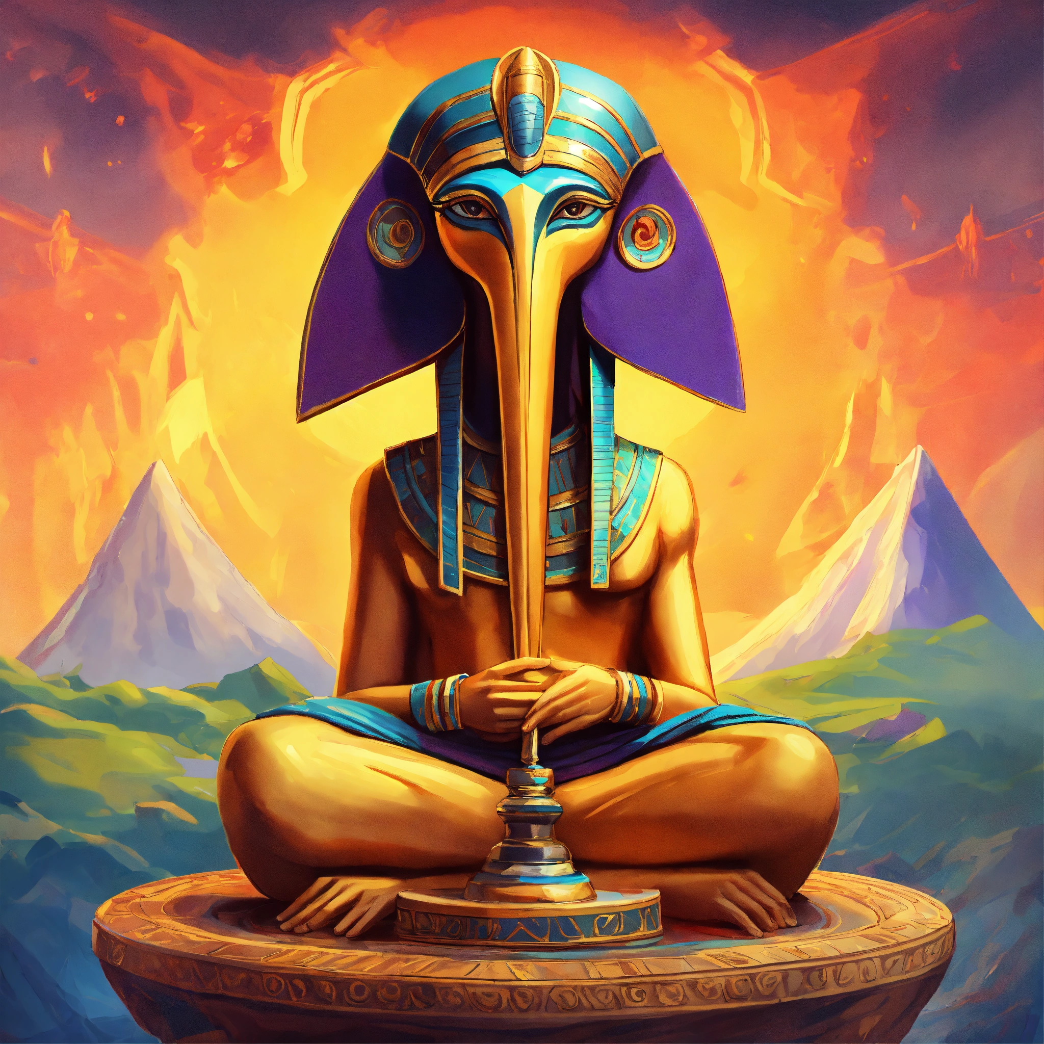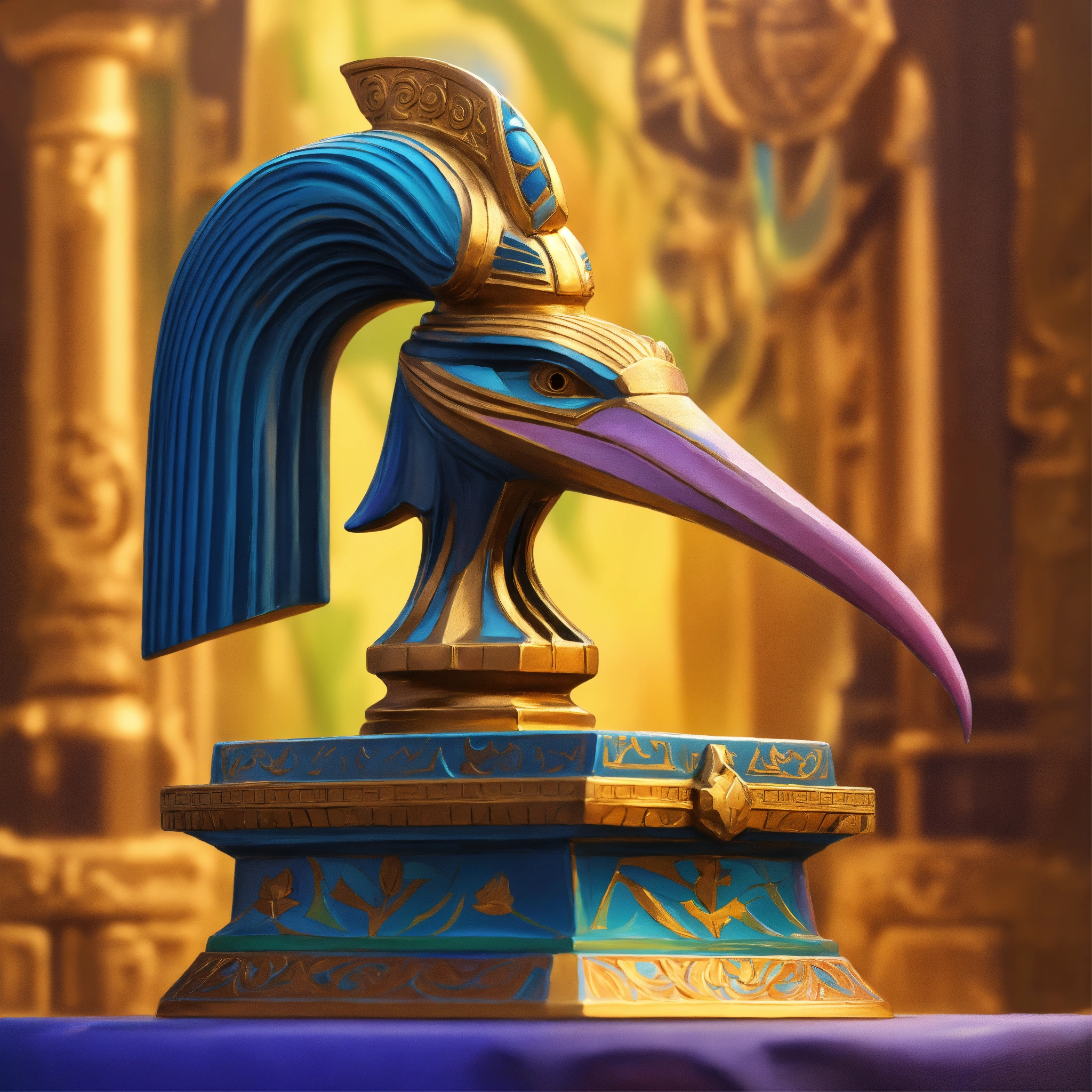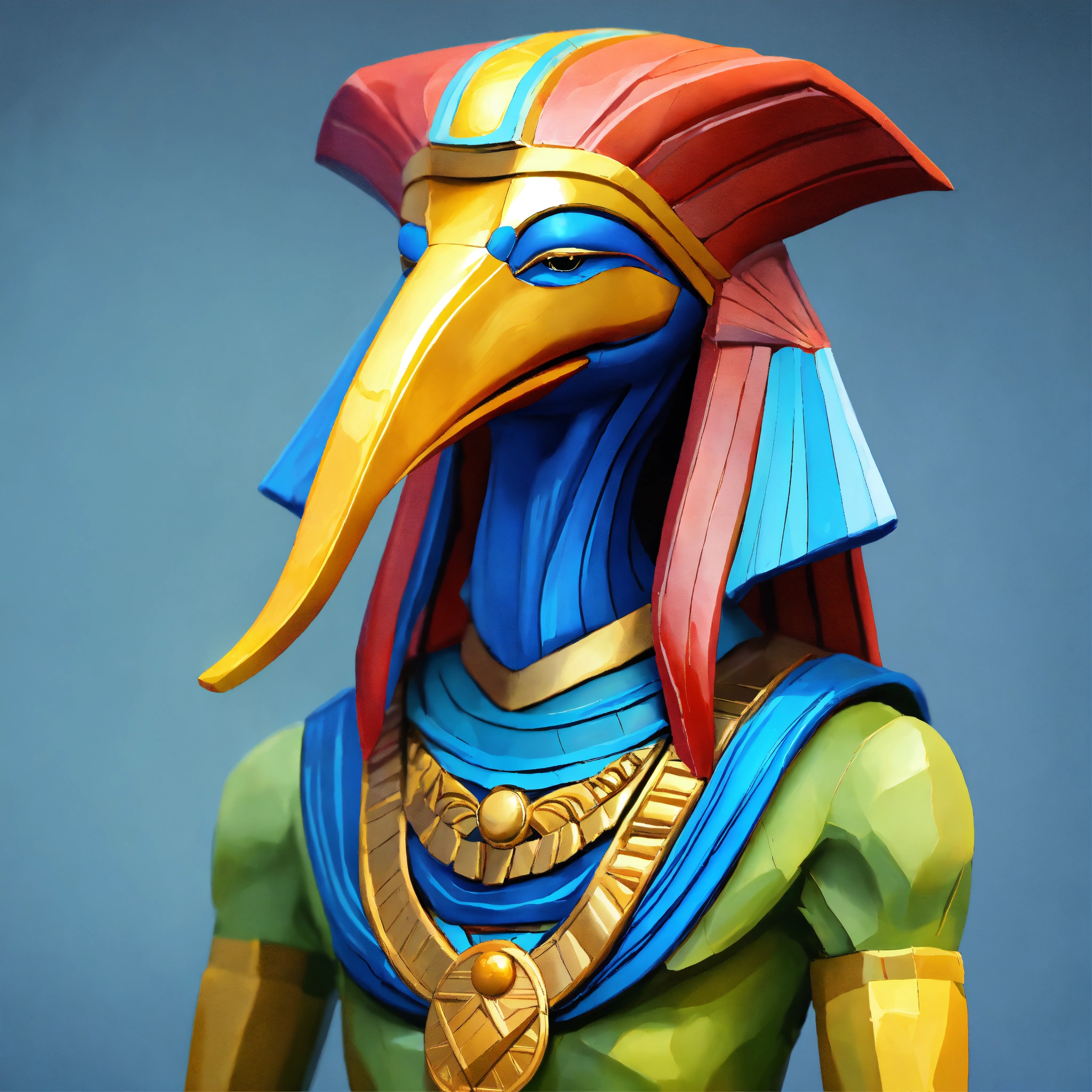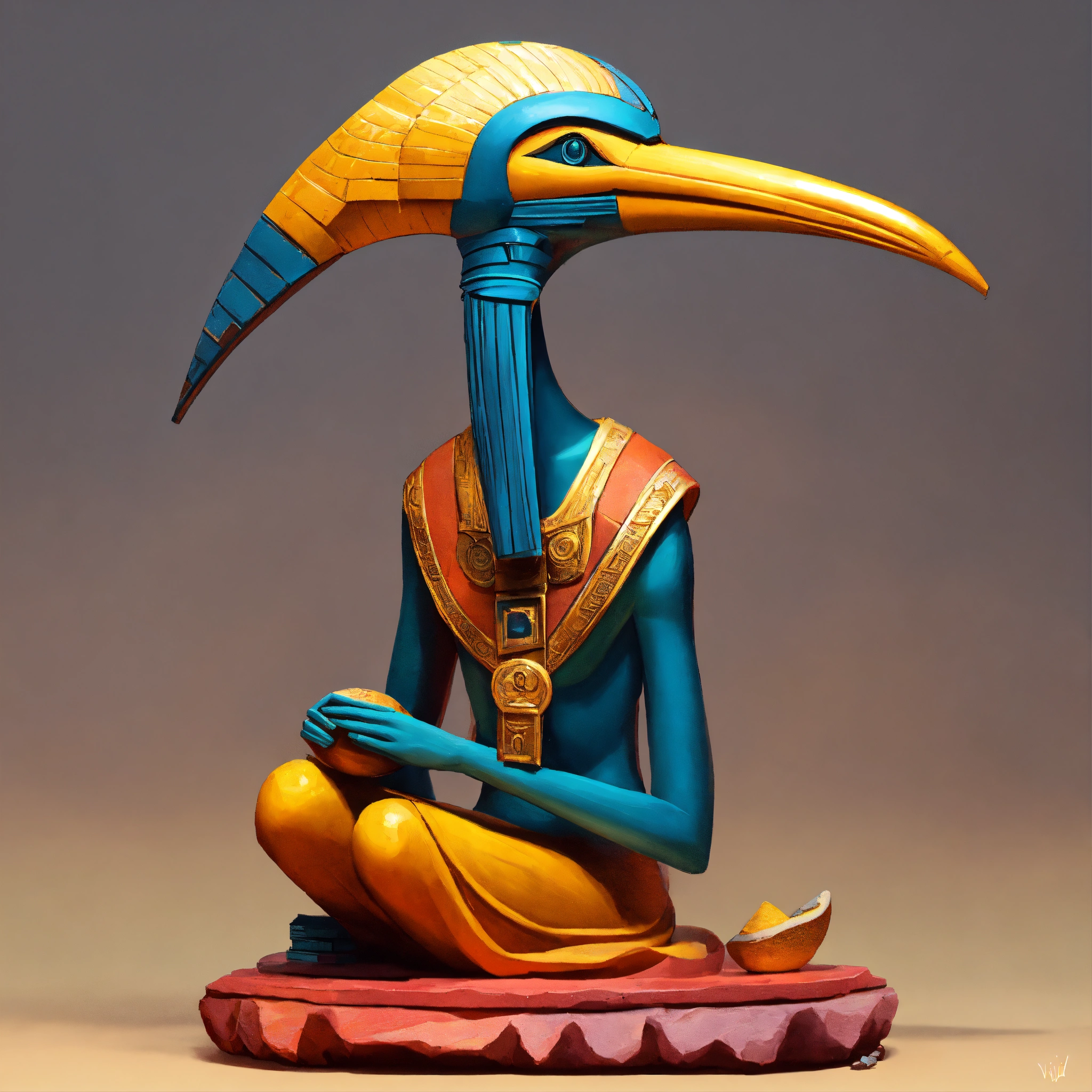 Statuette of god thoth, isolate object, volumetric cartoon oil paint, 2d illustration style, sharp focus, bright color, digital paint design, trending on artstation, high details, simple lines, ancient artefact, art by viktoria gavrilenko, josé luis ágreda and camilla d'errico