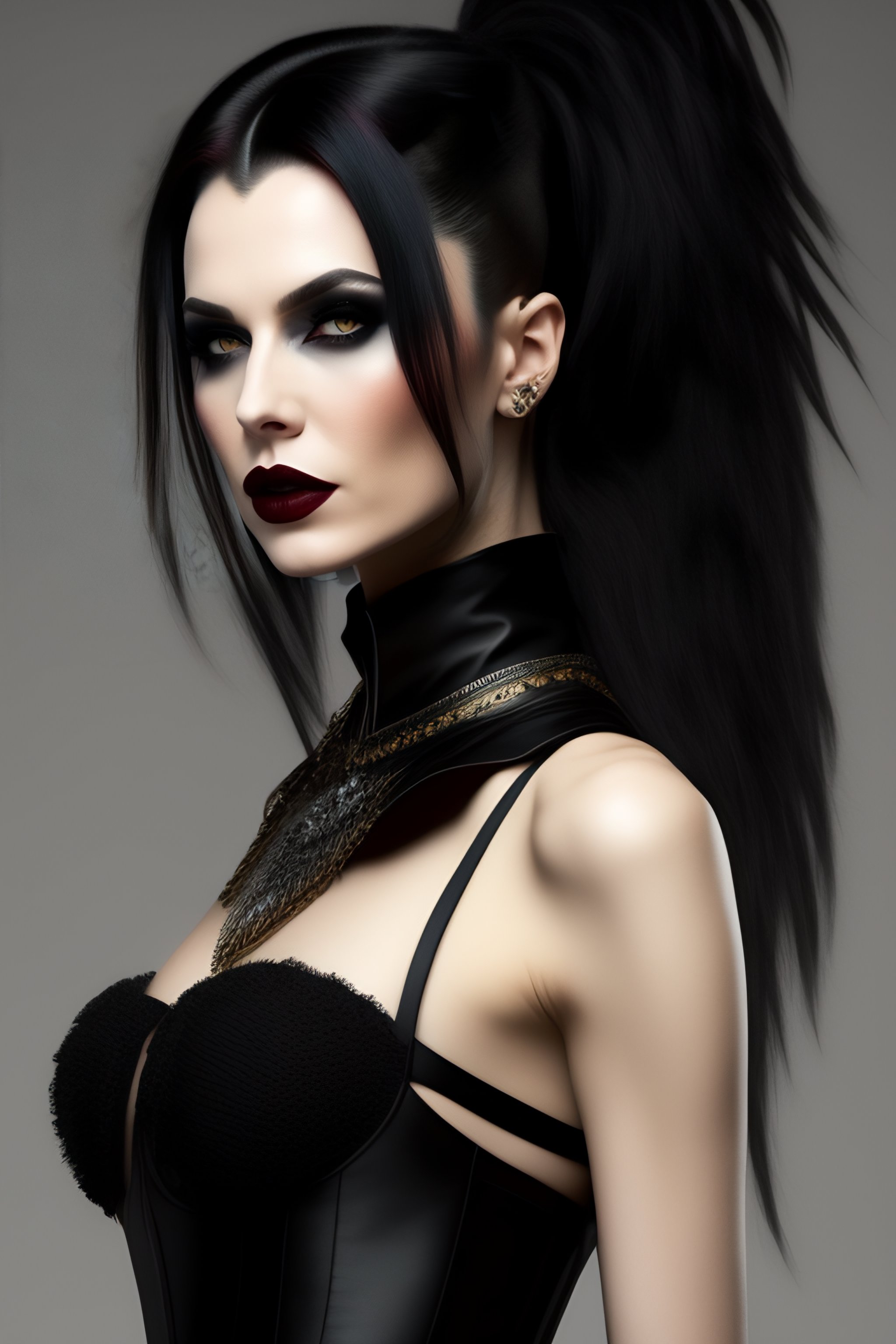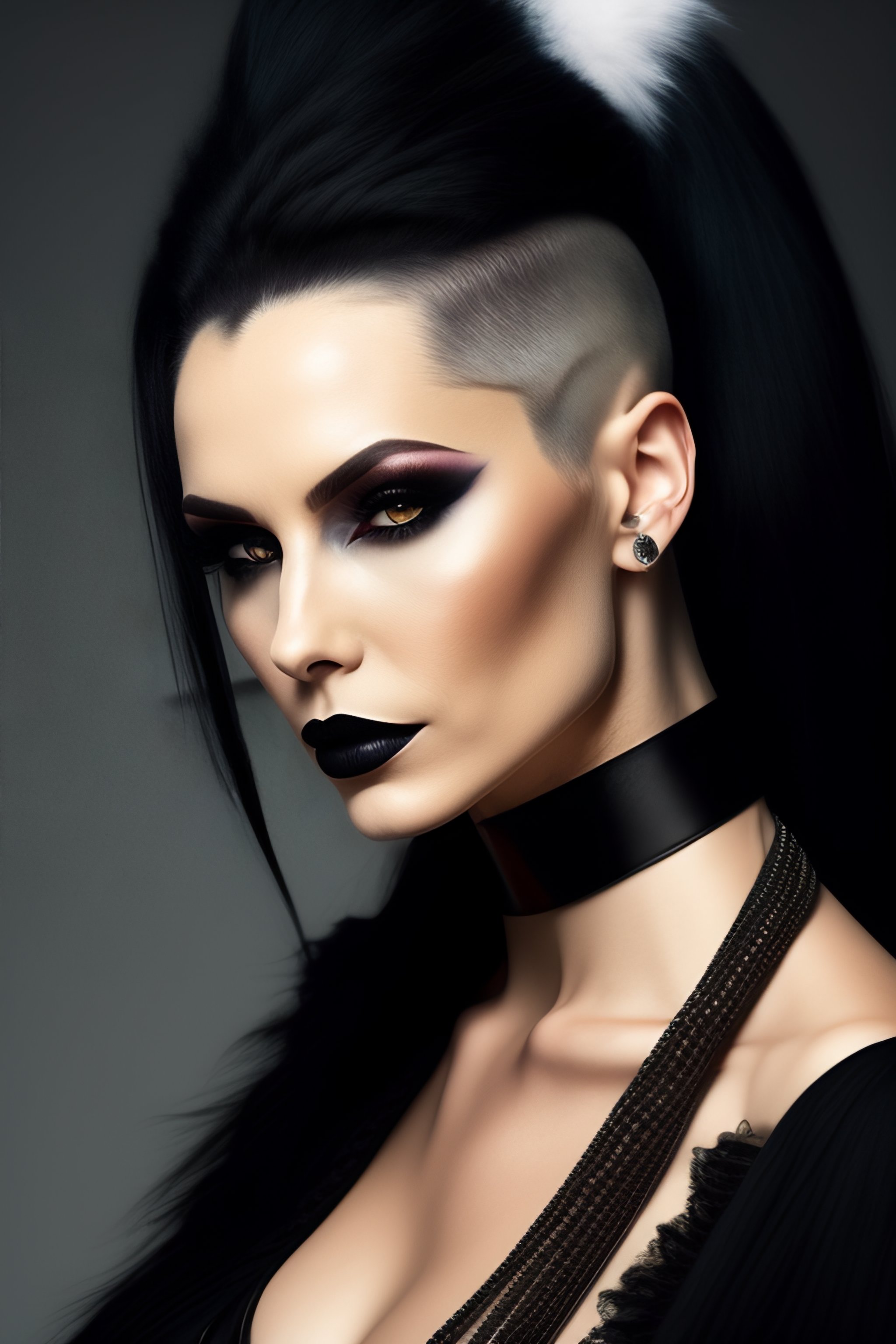 Pale woman goth vampire in black outfit hair mohican