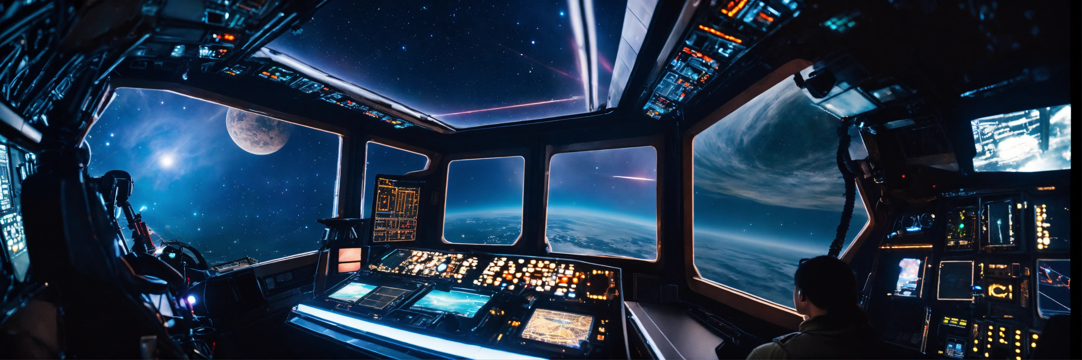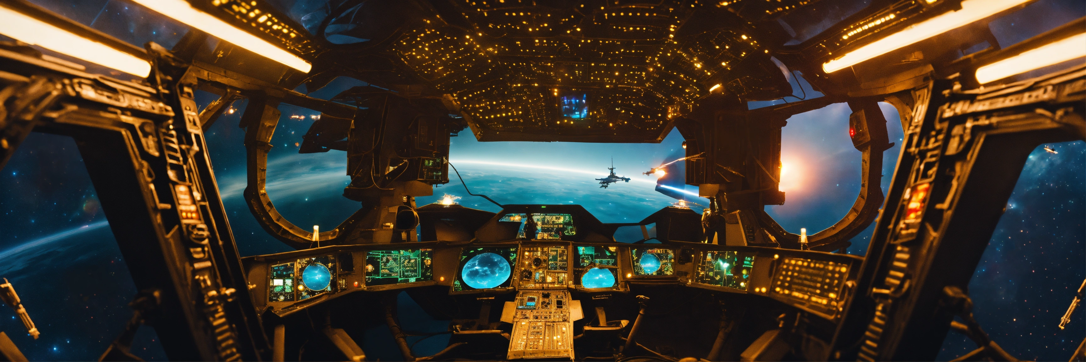 View inside the cockpit of an alien space warship