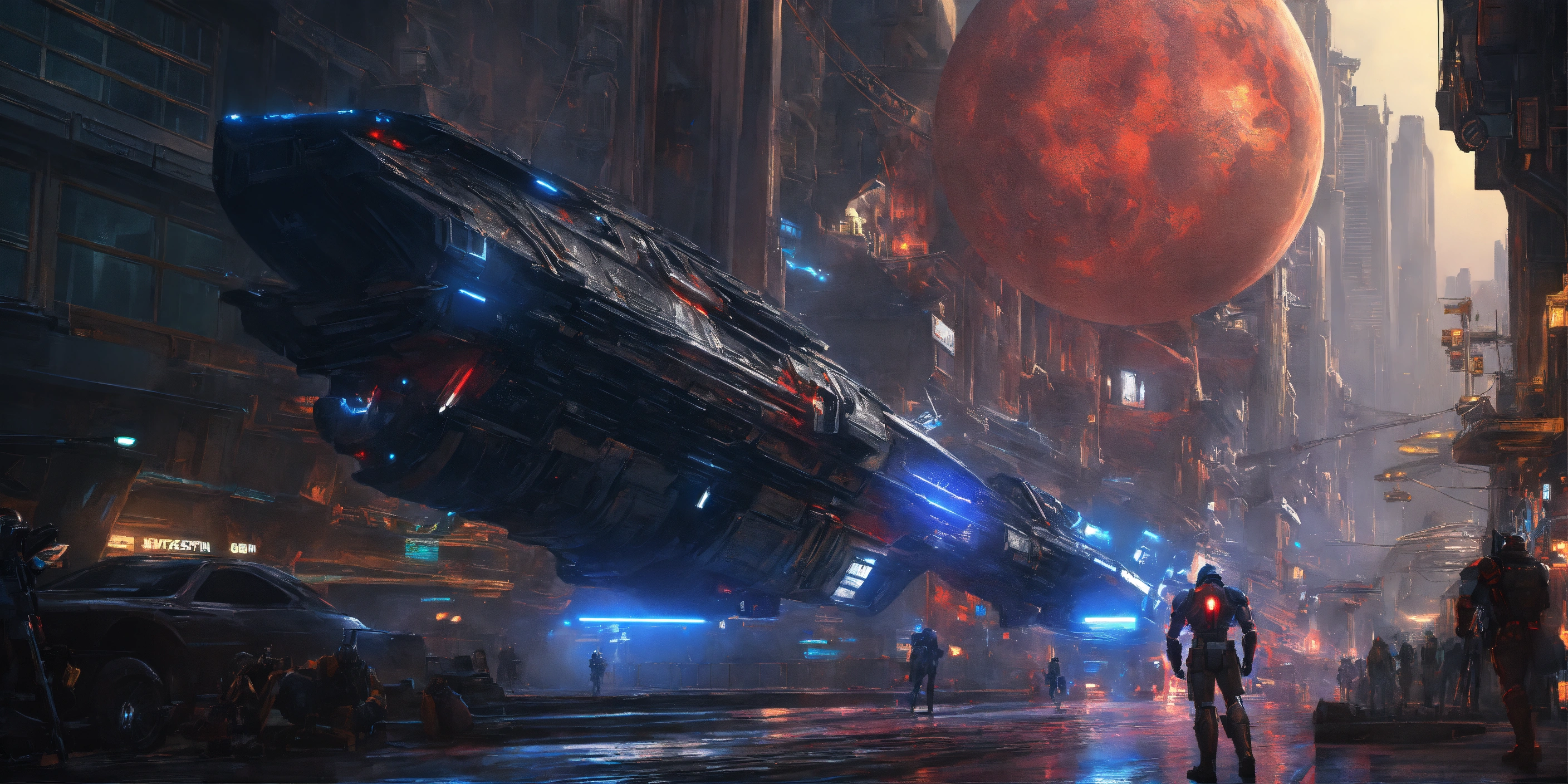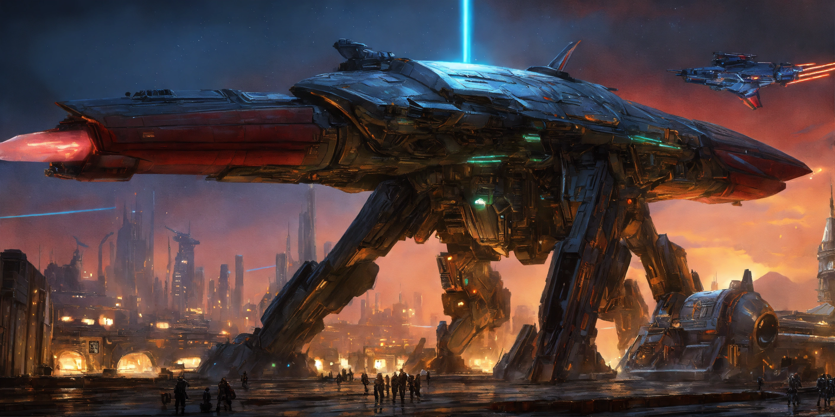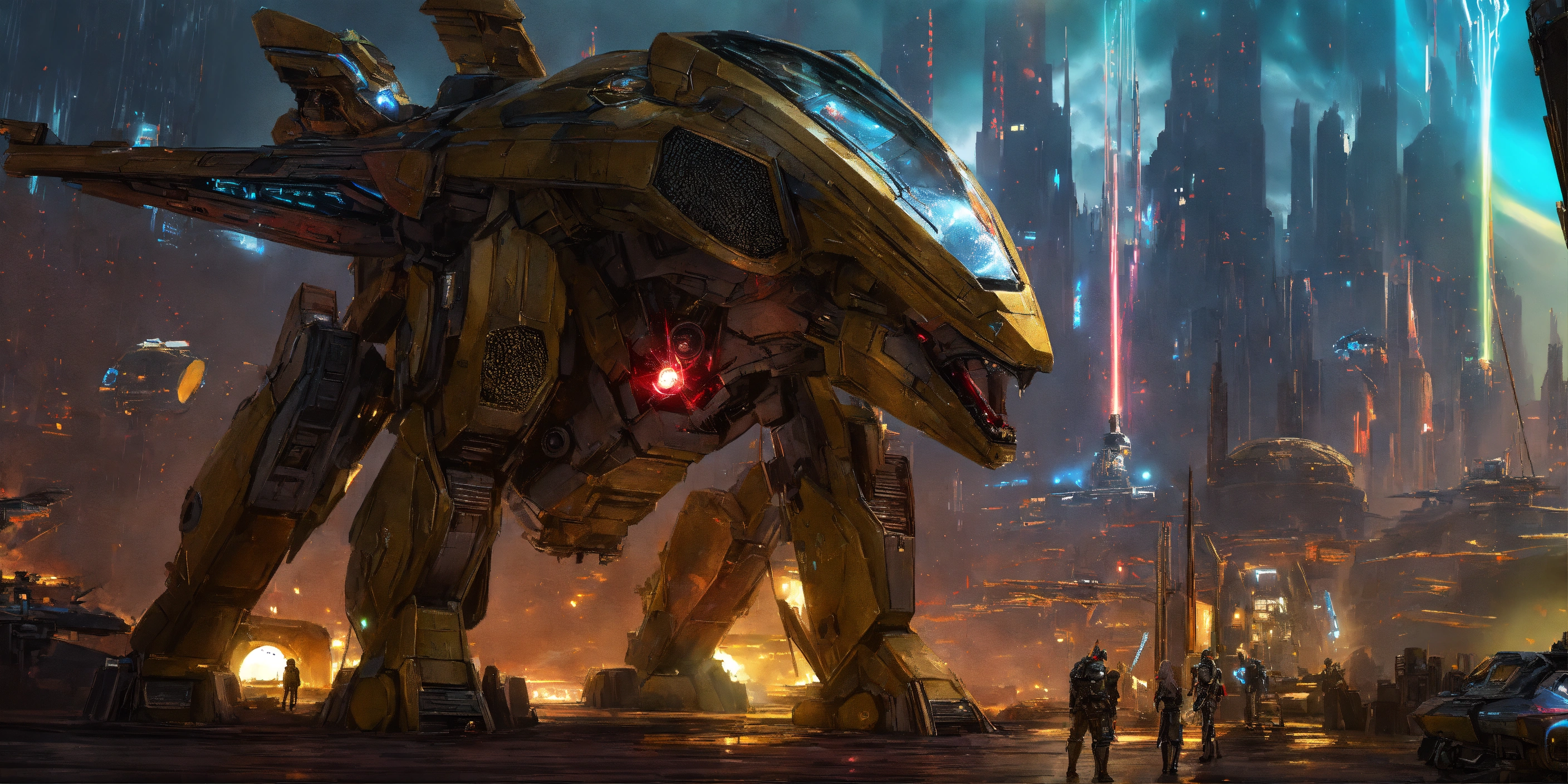 Adamantium, silver suffer, tron, hybrid vibranium dragon armor, griffin-wolves, ultraman, asgardian, thanagarian legions, dracula, nosferatu, athletic cyborgs, amazonians of 90th century, dracul-like muscular hulk buster led humanoids, rainy, wet scene, batwing, galaxy cruisers, blade runner mega cityscape holding 9965 a.d. advanced star wars blasters, laser rifle & ancient h. r. giger, gears of war mega guns, dune, things to come, quetzal armored streamline forms fighting detailed advanced futuristic civilized backdrop densely populated world of metallic chrome, wolf & raven vampires, titanic star zeppelin, rom the space knight, battlestar galactica meta-hybrid cylons, alien cyborgs, flying batmobile, style of davinci, picasso, laurie greasley, ghibli, akira, akkadian, atlantis, kryptonian, megatron live film, tomiyama, gene roddenberry, george lucas, genshin impact, nuke vfx, surreal acrylic, kyber sabers, 8k, vibrant dark color, deviantart, high detail, cinematic studio quality gci