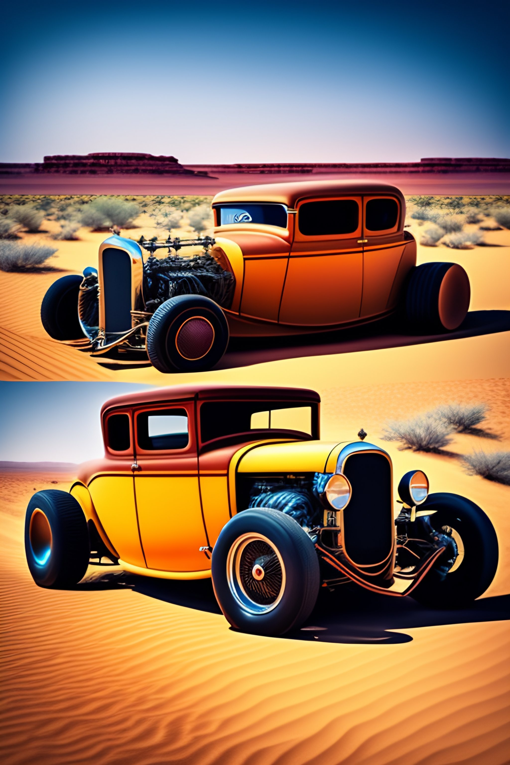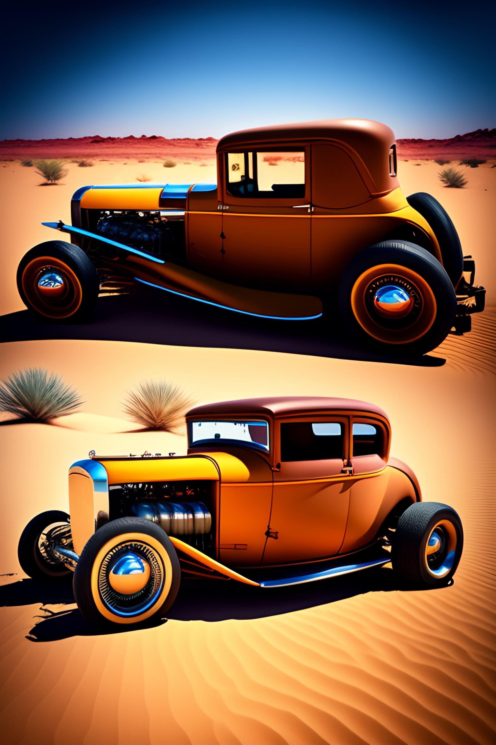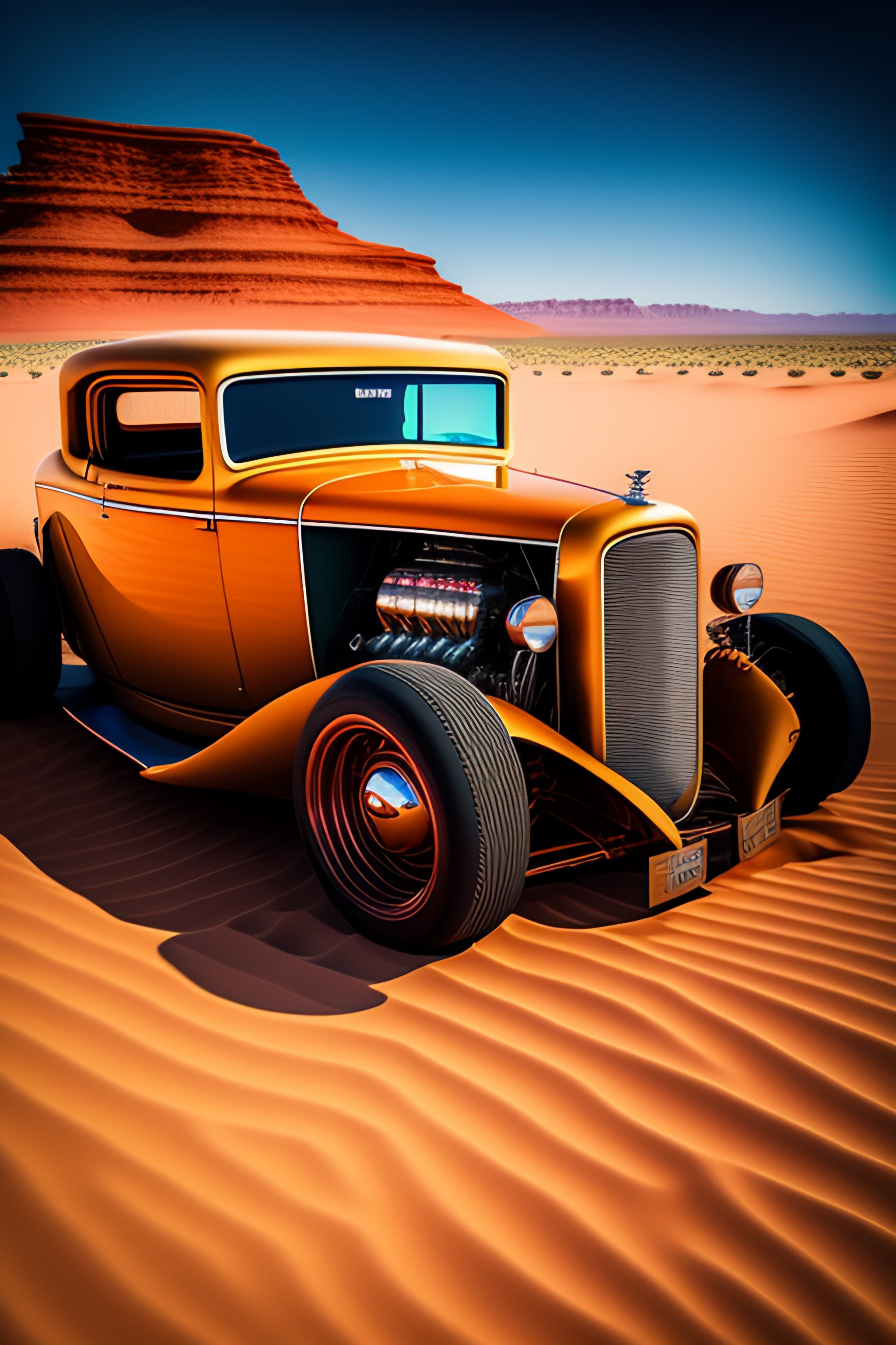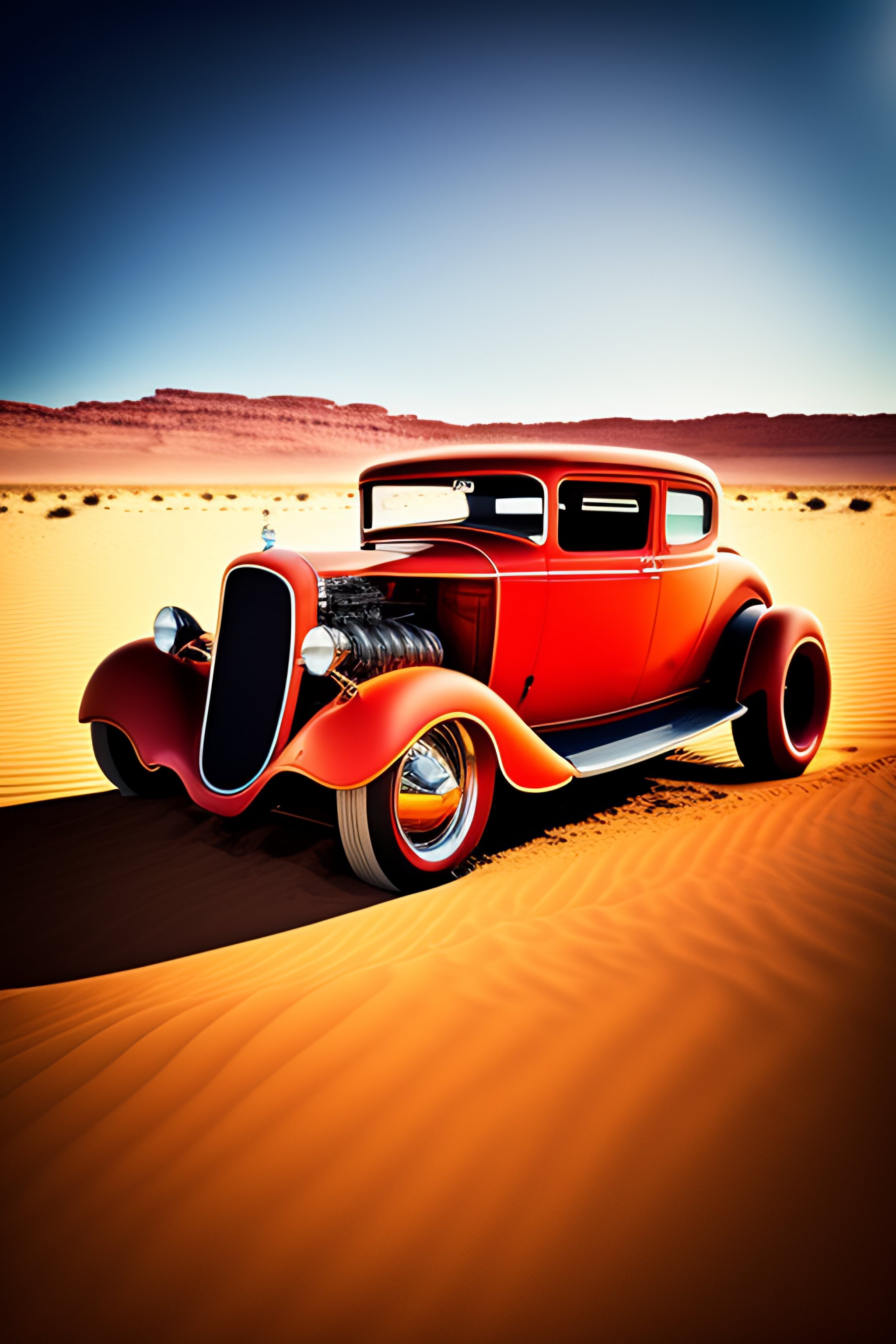 Vintage hot rod car in the desert