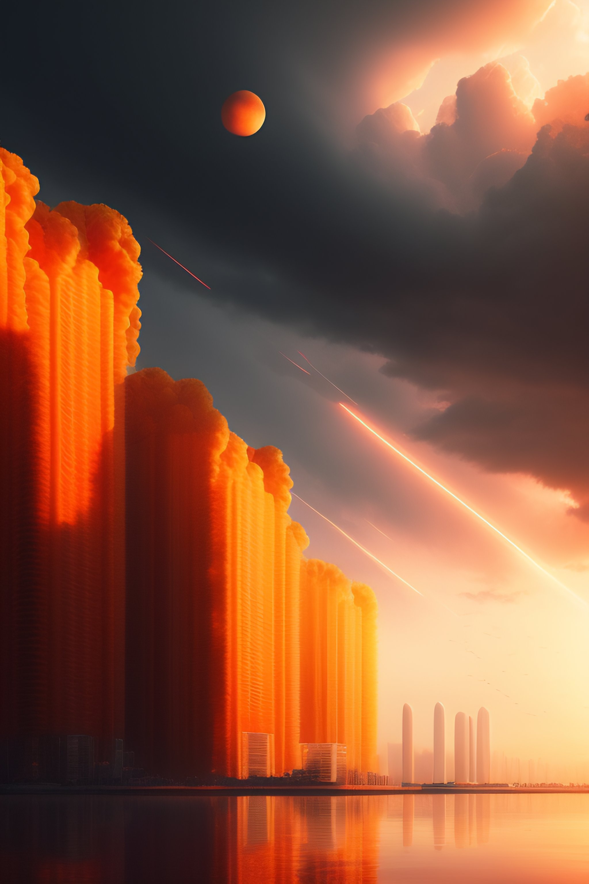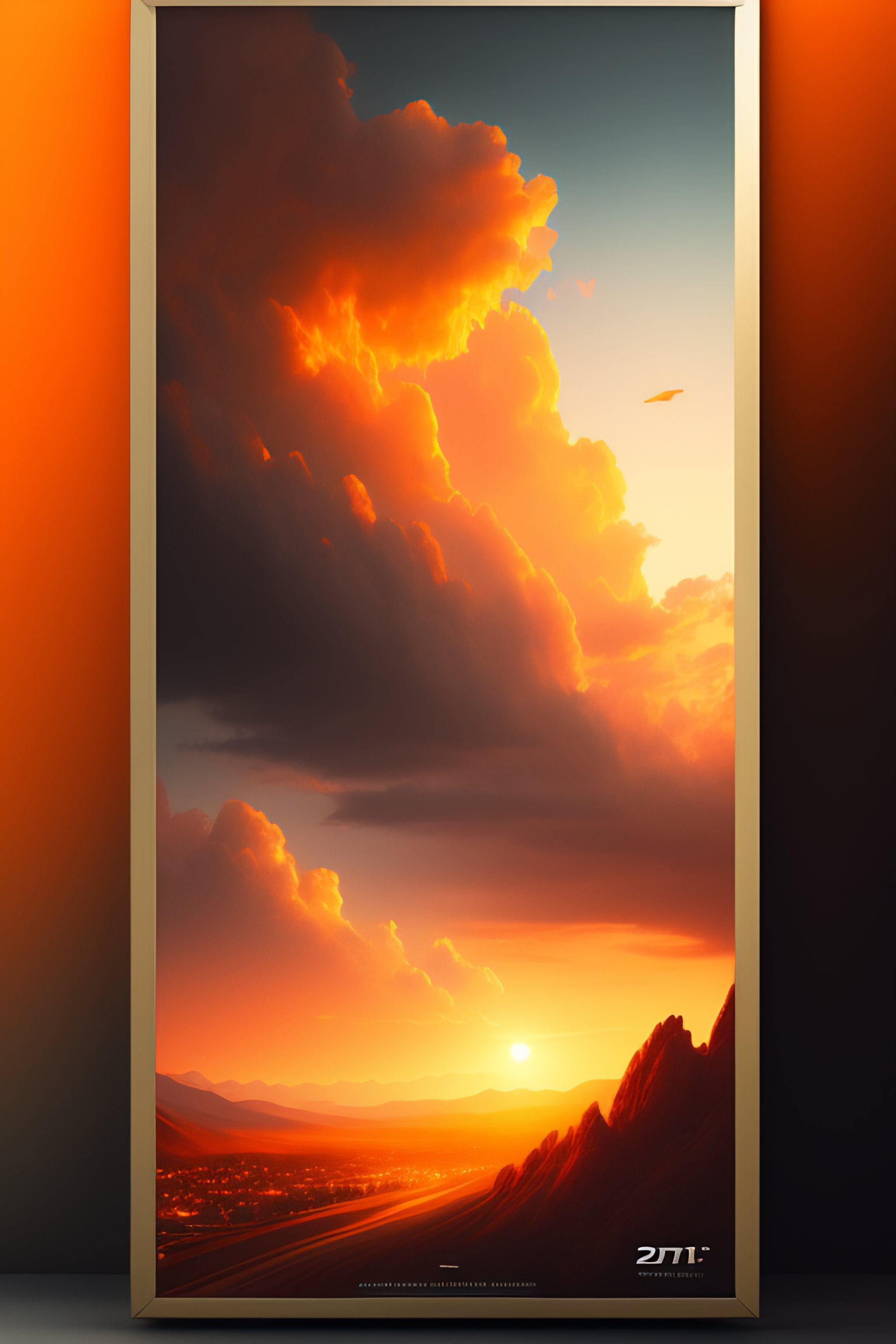 A poster, cover, 2000s, marketing, magazine, photography, backgound with clouds in white, orange, beige, tan colored sky, old school, detailed, artstation, digital painting, post-processing, masterpiece, vibrant deep colors, 8k octane beautifully detailed render
