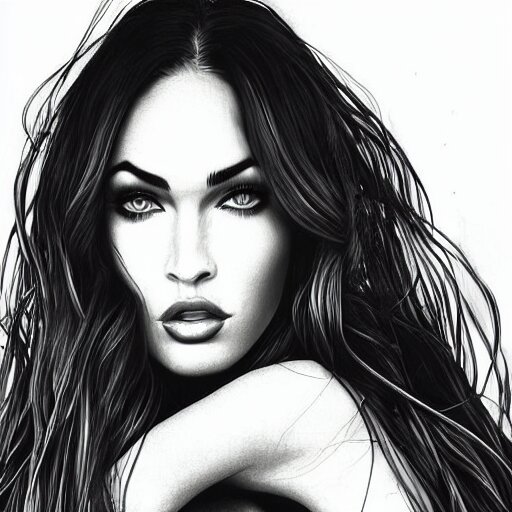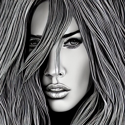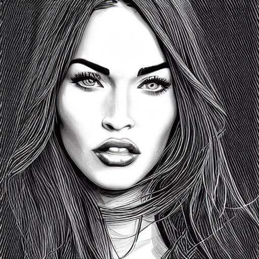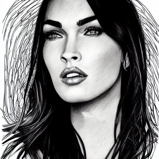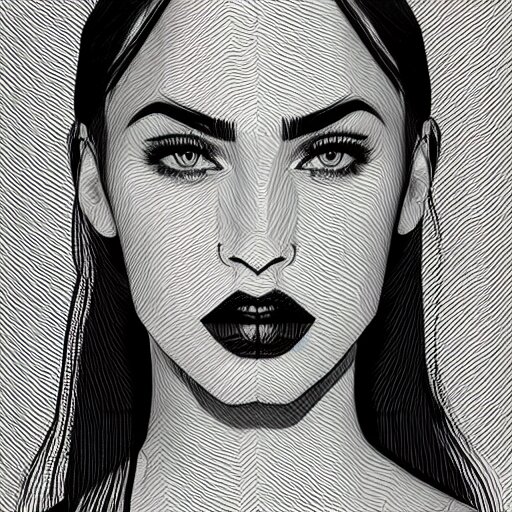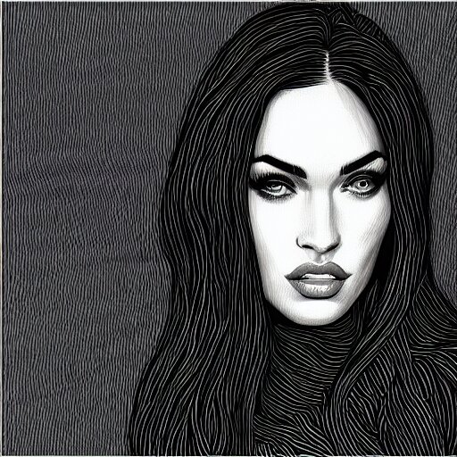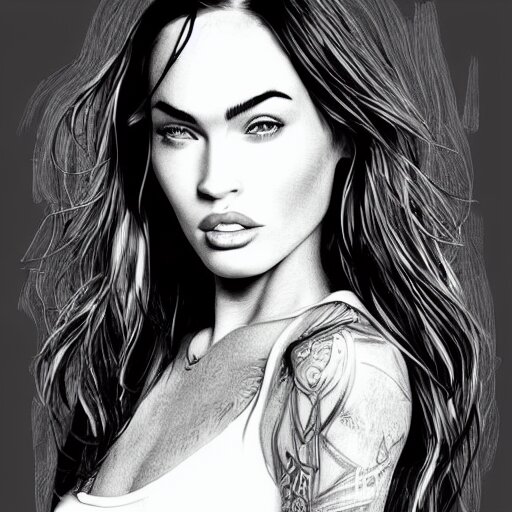 “megan fox, portrait!!! portrait based on doodles, scribbled lines, sketch by liz y ahmet, monochrome, concept art, million lines, white background, ultra detailed portrait, 4k resolution”