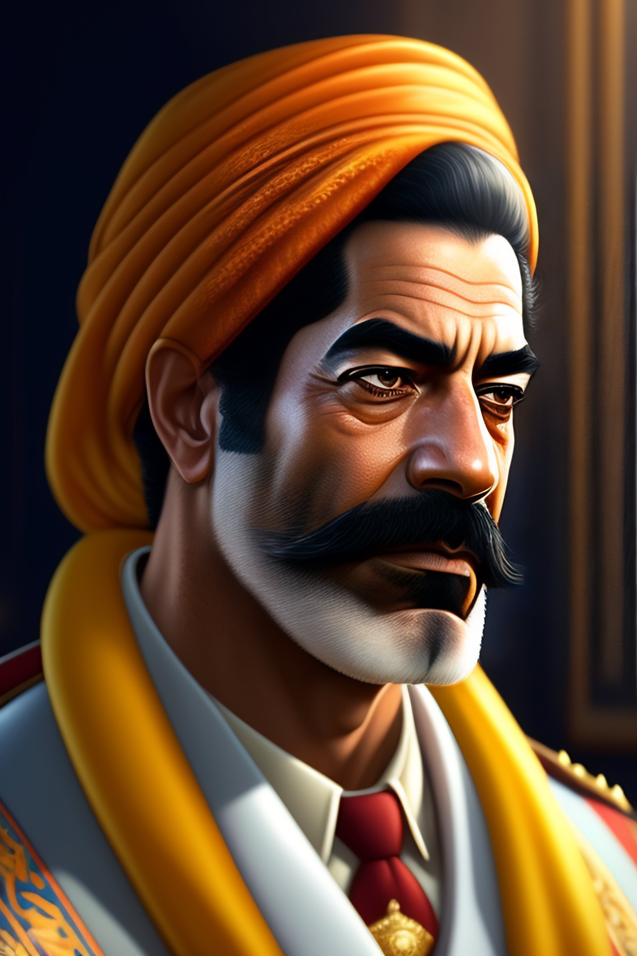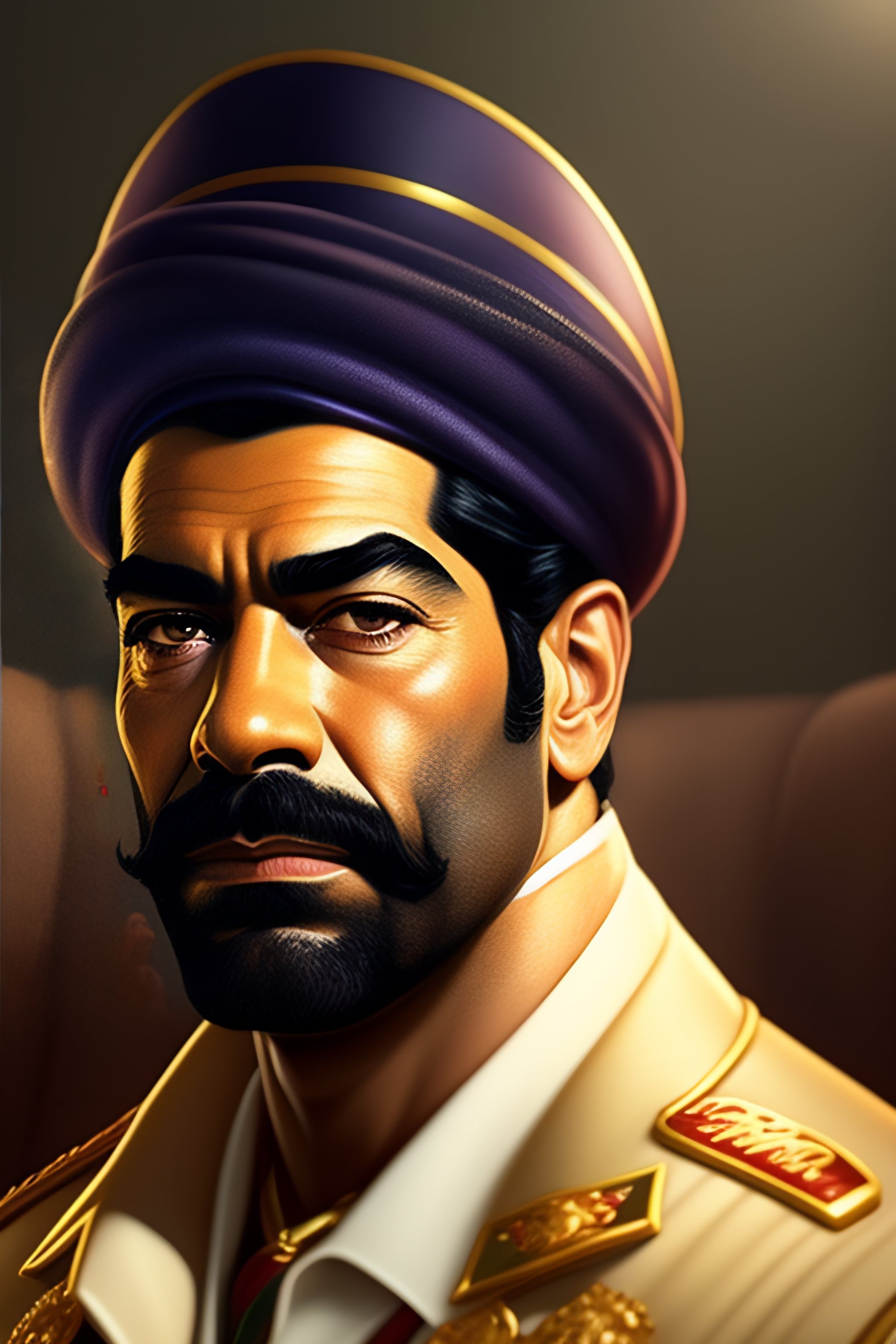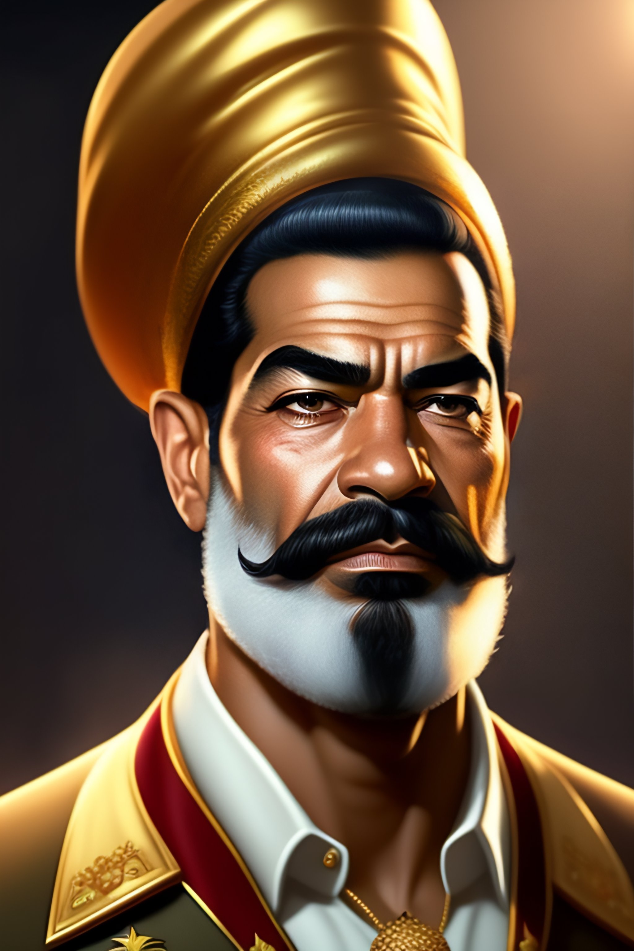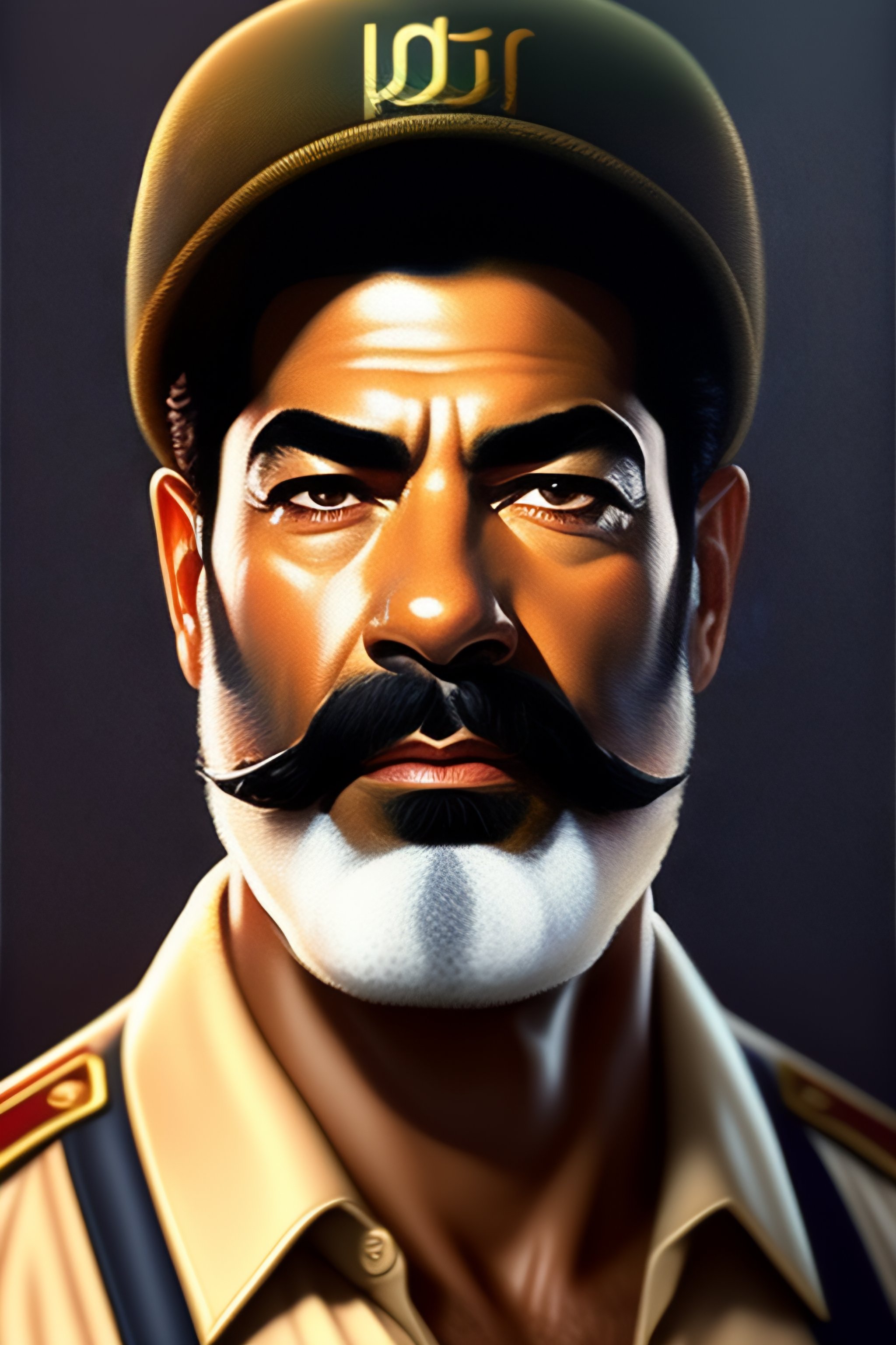 Saddam hussein as a simpsons character, realistic portrait, symmetrical, highly detailed, digital painting, artstation, concept art, smooth, sharp focus, illustration, cinematic lighting, art by artgerm and greg rutkowski and alphonse mucha