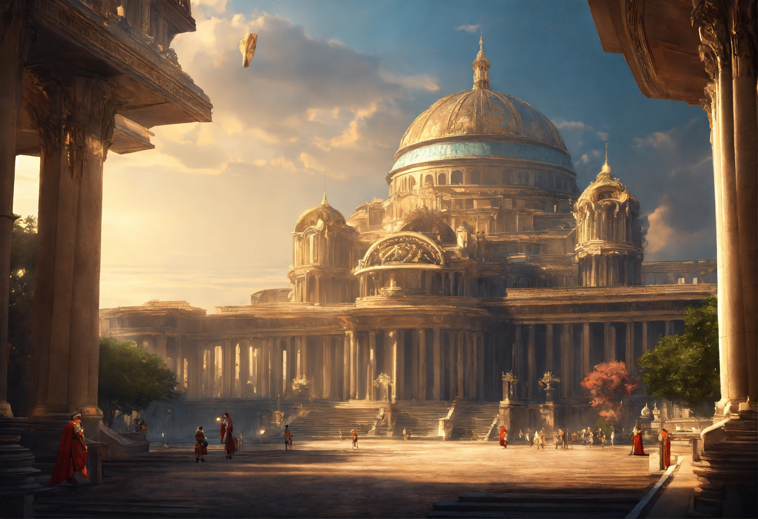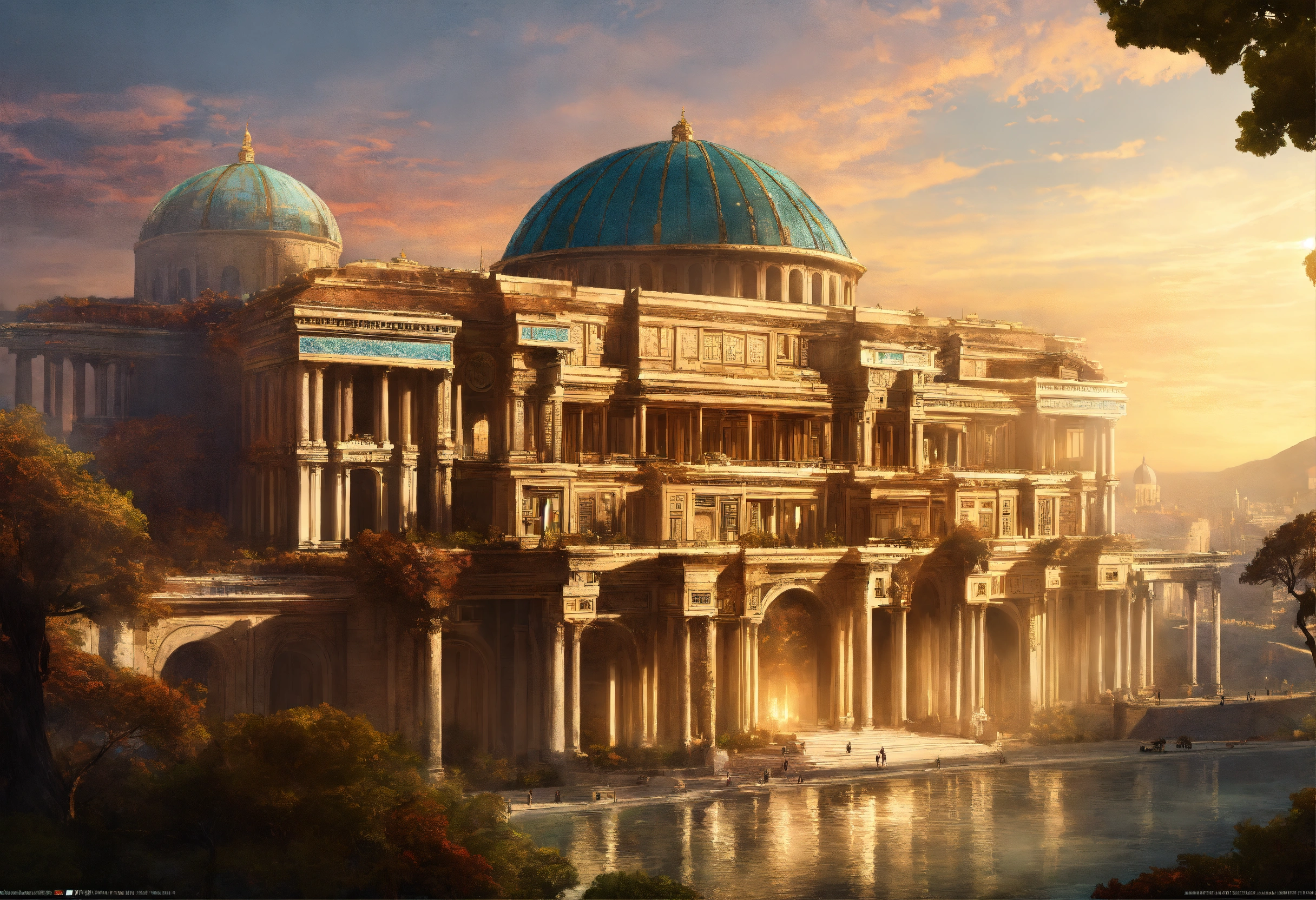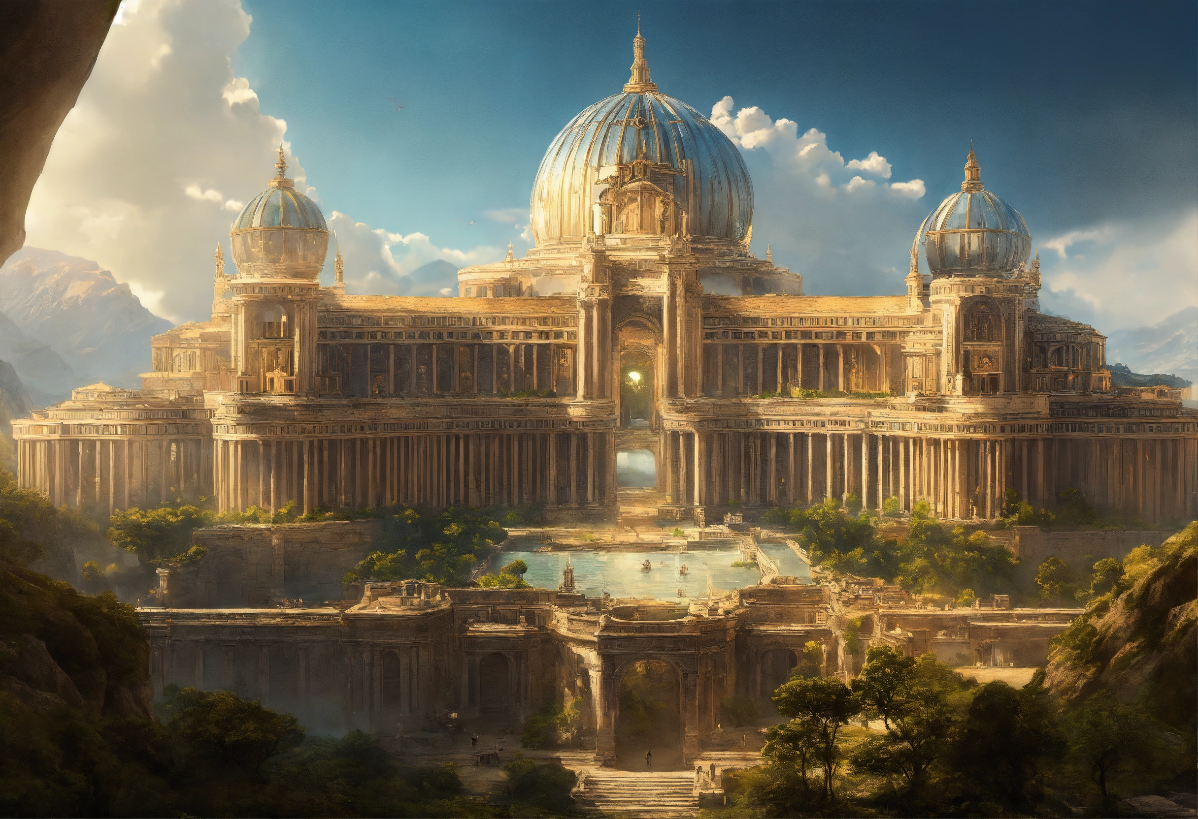 Gigantic futuristic palace inspired by the roman empire, its so big its reaches out of the picture epic wallpaper