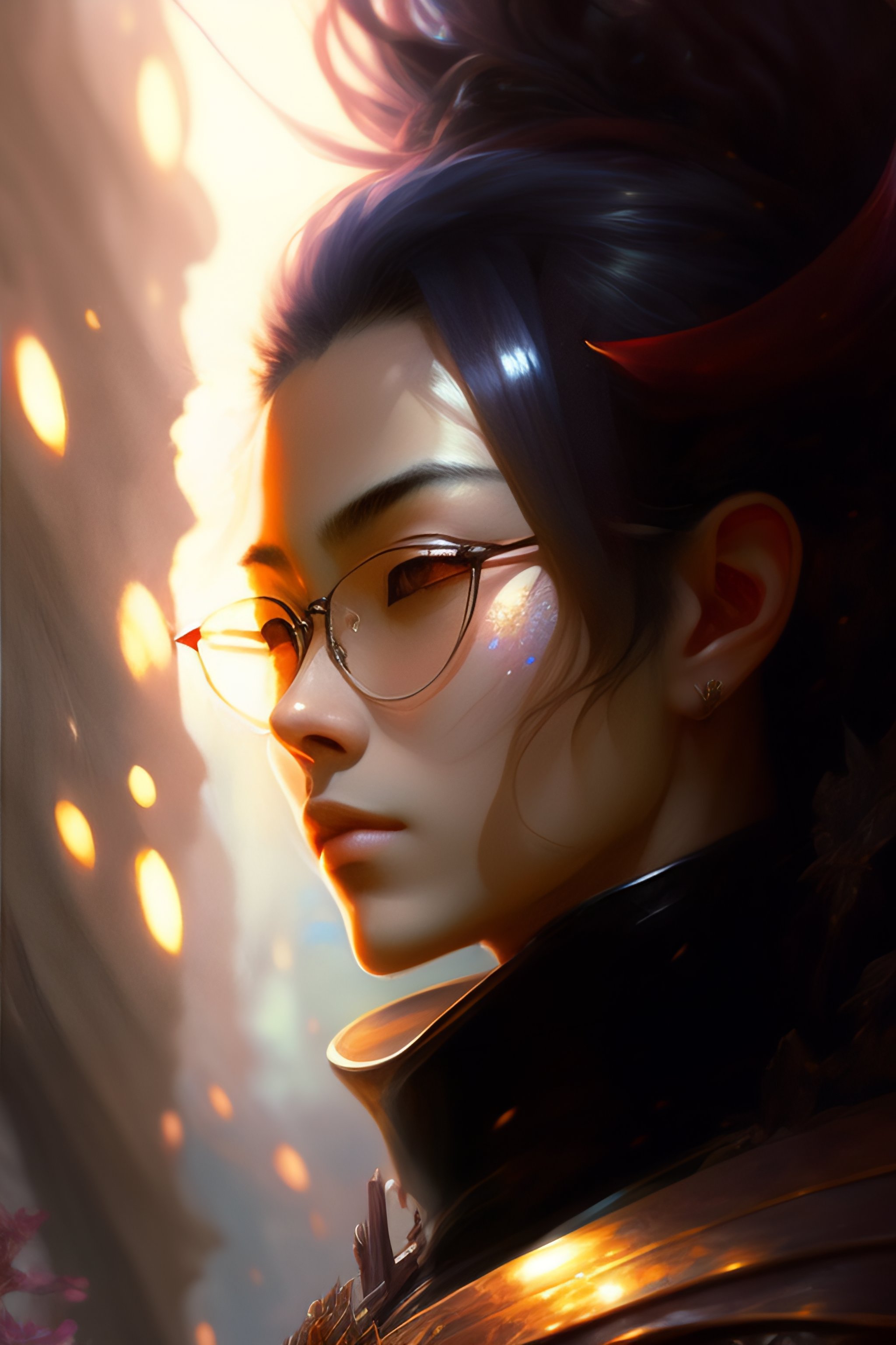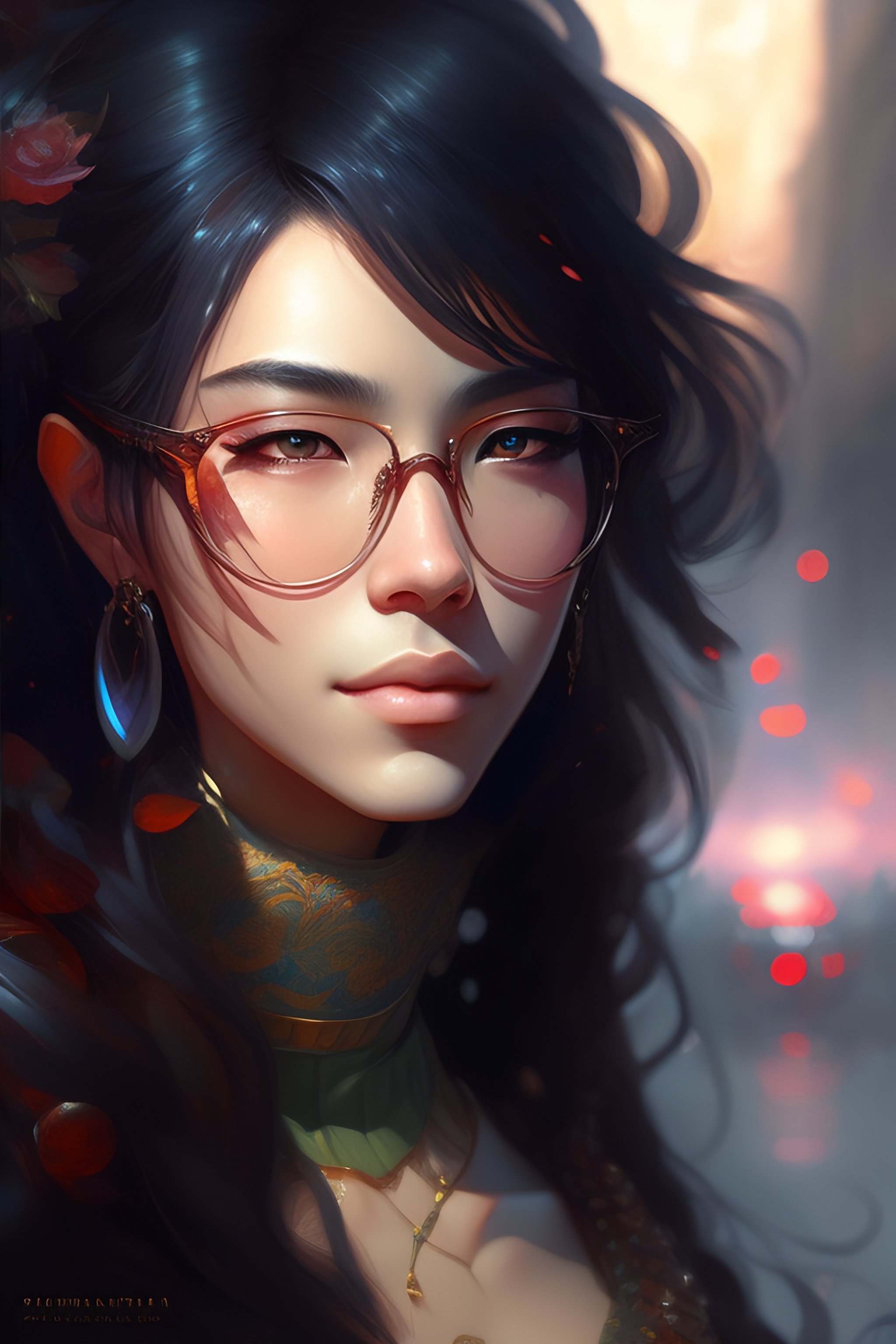 A masterpiece portrait of a incredibly beautiful male artist with a black beard, drops of paint on the skin, cool designer glasses, long hair on her head, black turtleneck, medium shot, intricate, elegant, highly detailed, trending on artstation, digital art, by stanley artgerm lau, wlop, rossdraws, james jean, andrei riabovitchev, marc simonetti, yoshitaka amano