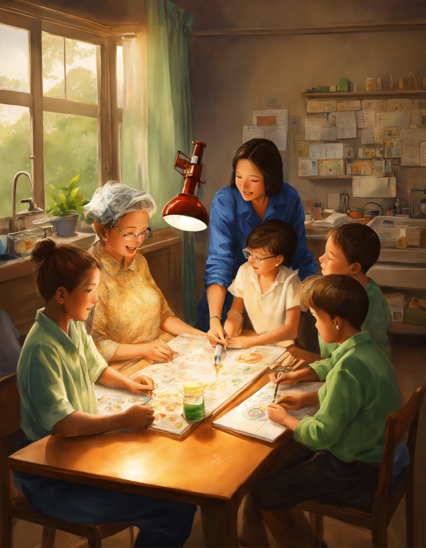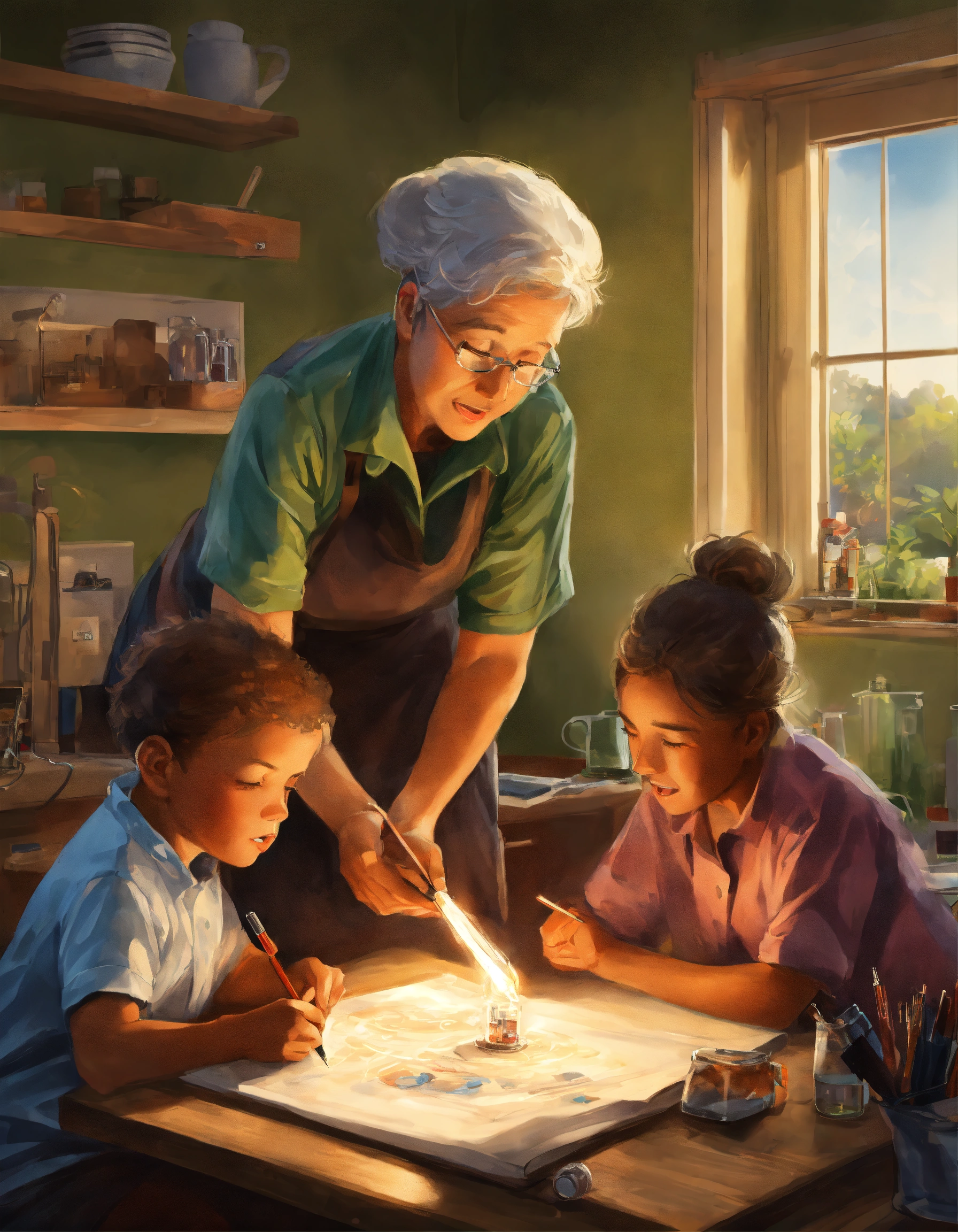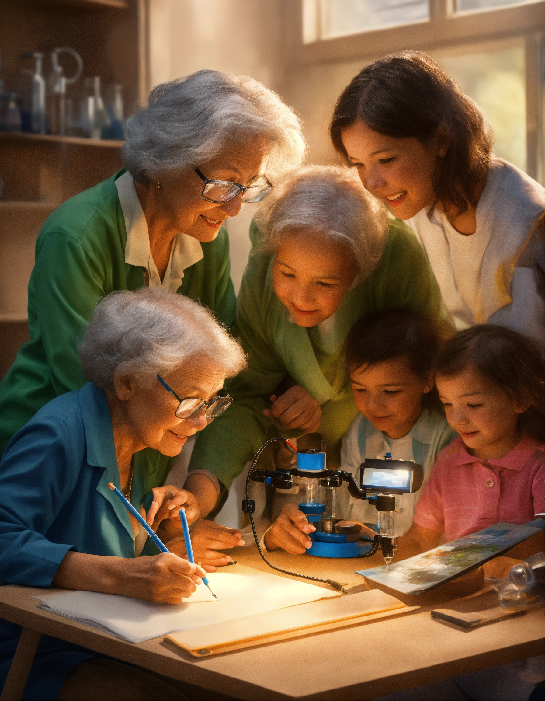 Draw a photorealistic energetic picture that shows how science is improving human lives and helping them make smarter decisions without depending on experts. show normal people like grandmothers, kids and poor people in the picture.