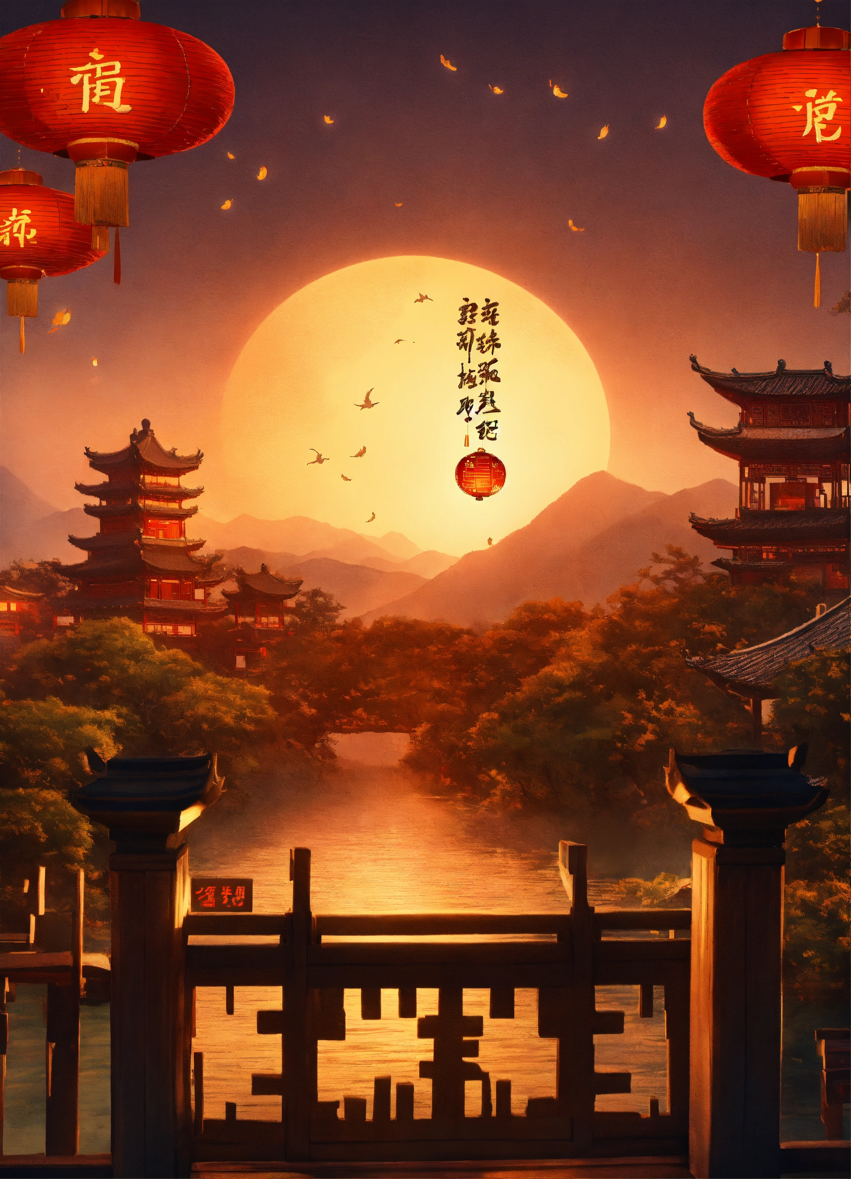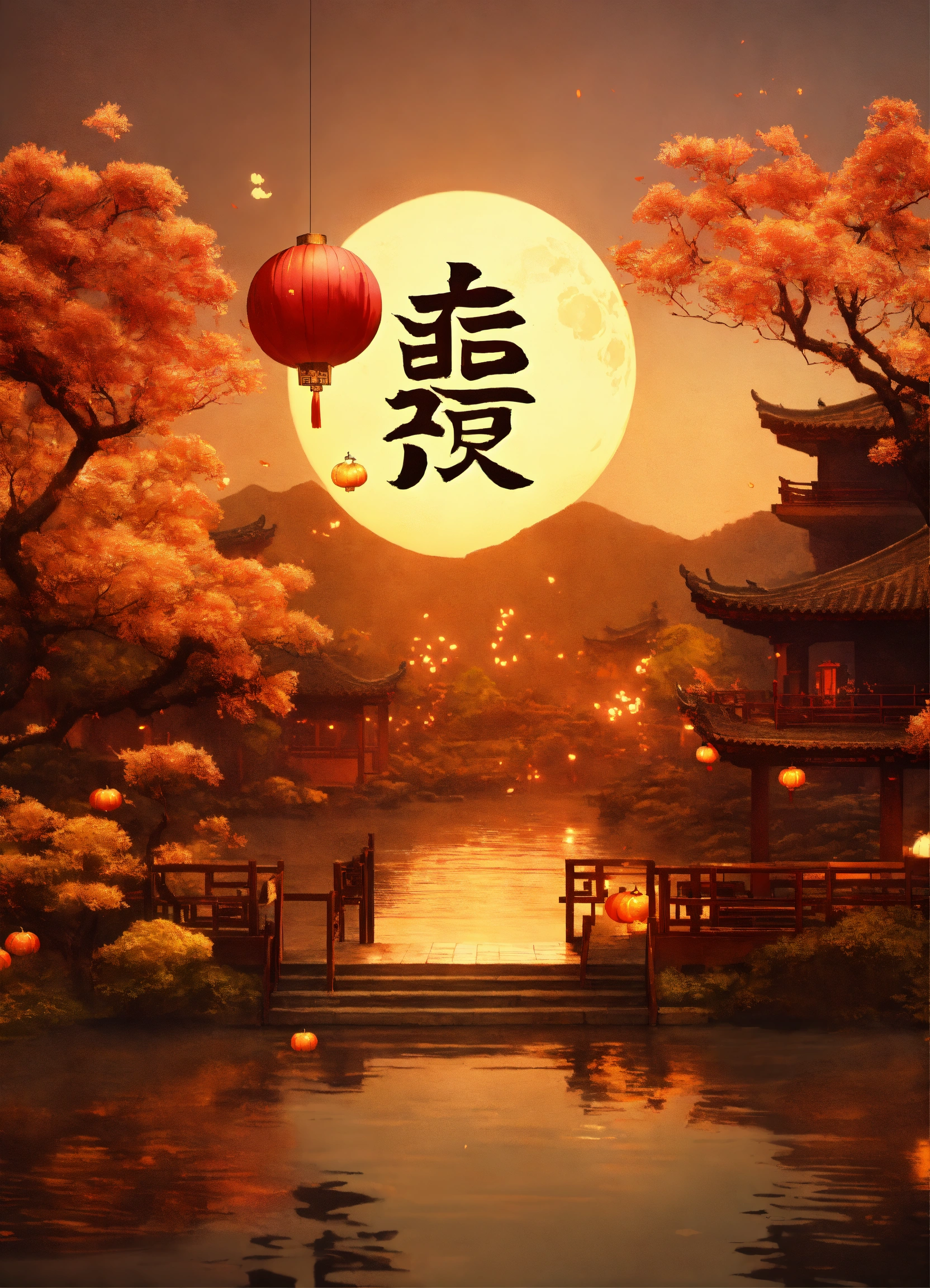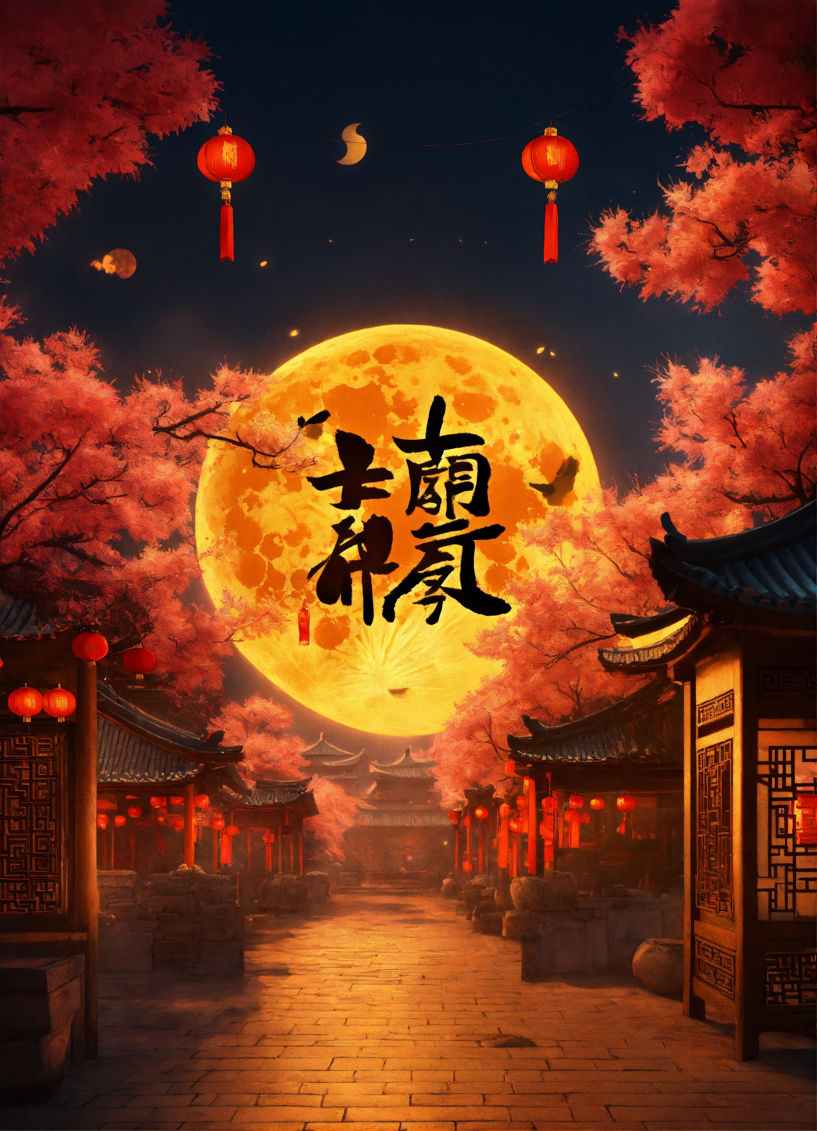 A realistic stunning view depicting the mid-autumn festival of year 2023, with handcrafted chinese characters wishes written in the picture, 8k, resolution