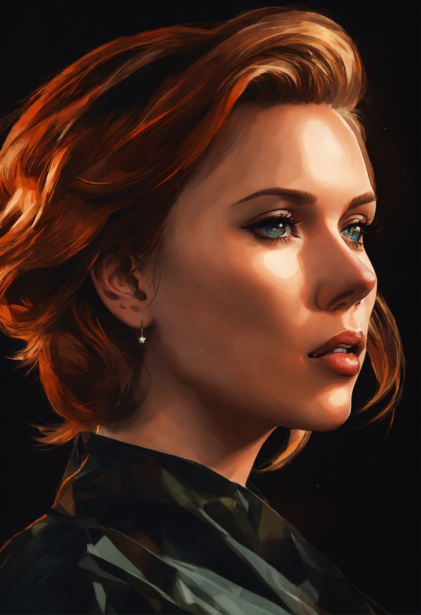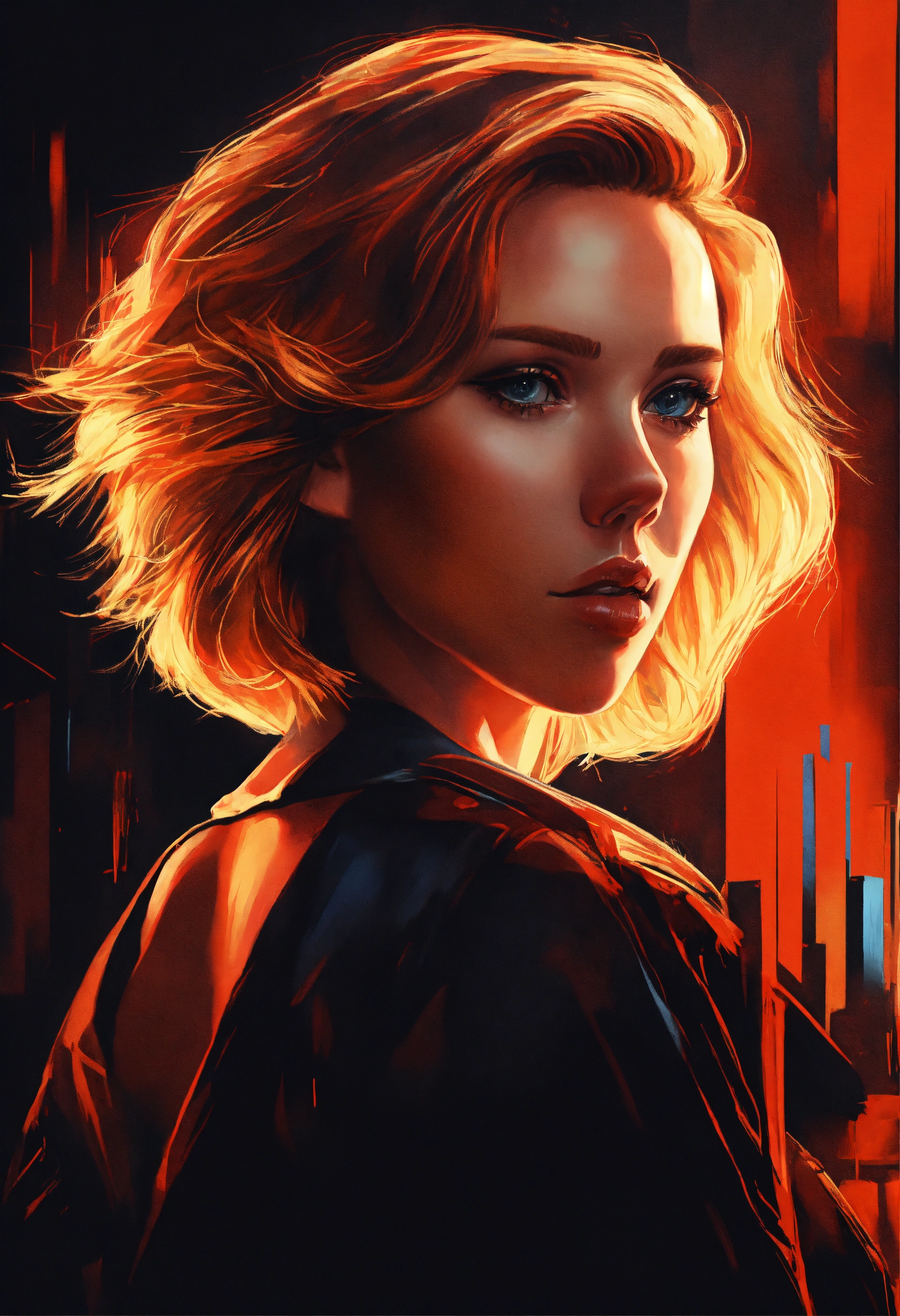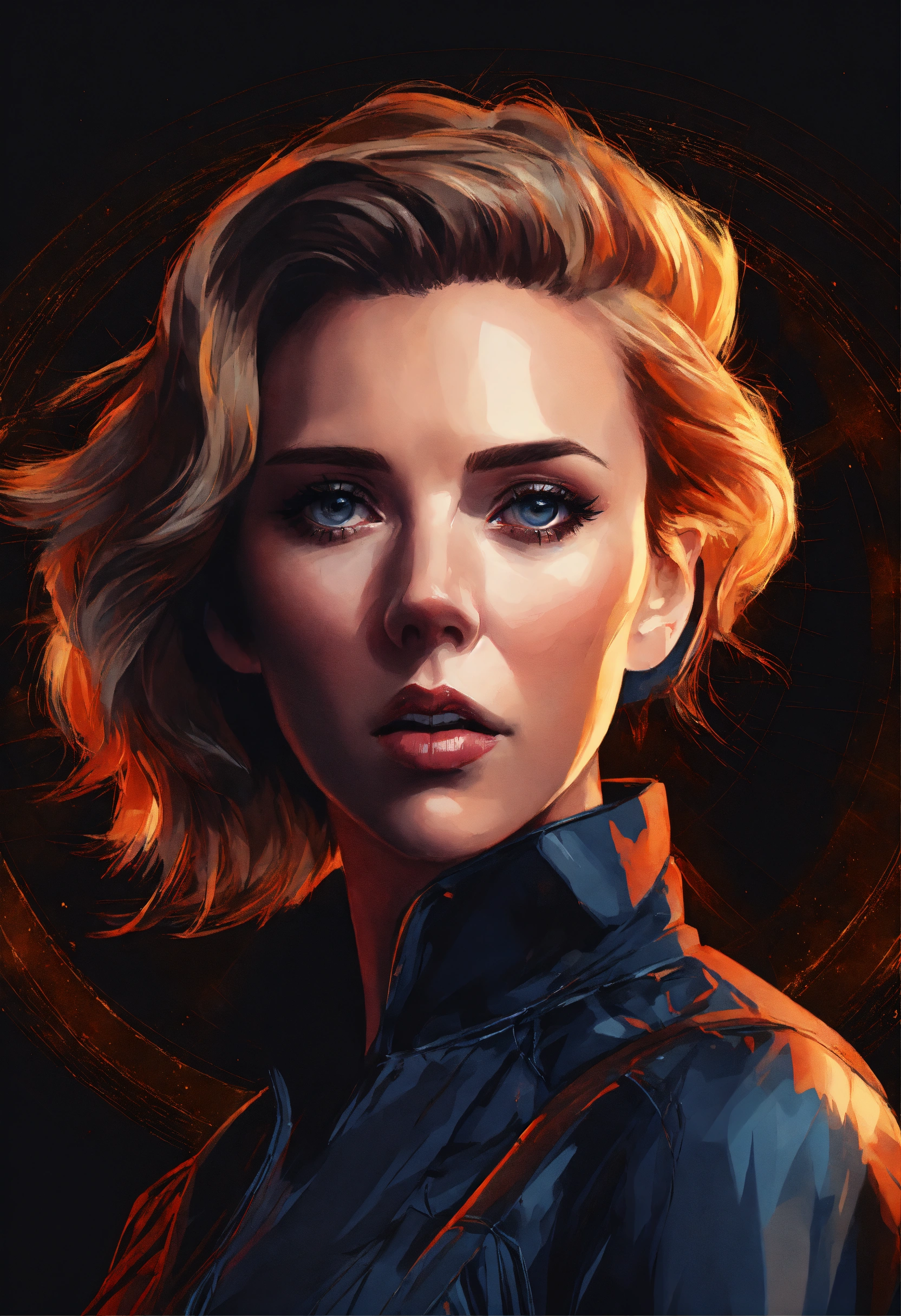 Scarlett johansson, illustration, 2d, realism, black flat background, flat image, mysterious aura, full body