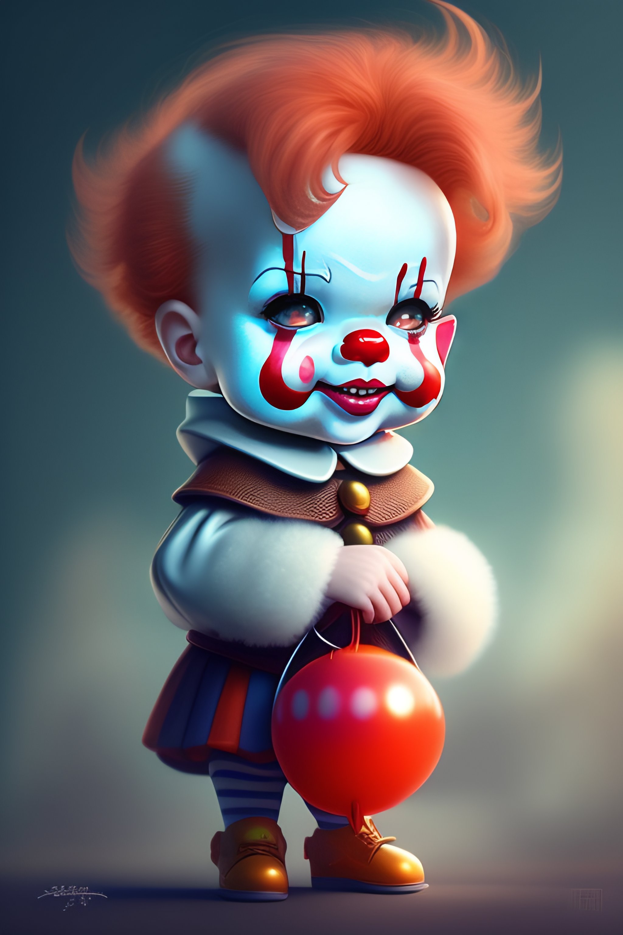 Cute and adorable cartoon pennywise baby, fantasy, dreamlike, surrealism, super cute, trending on artstation
