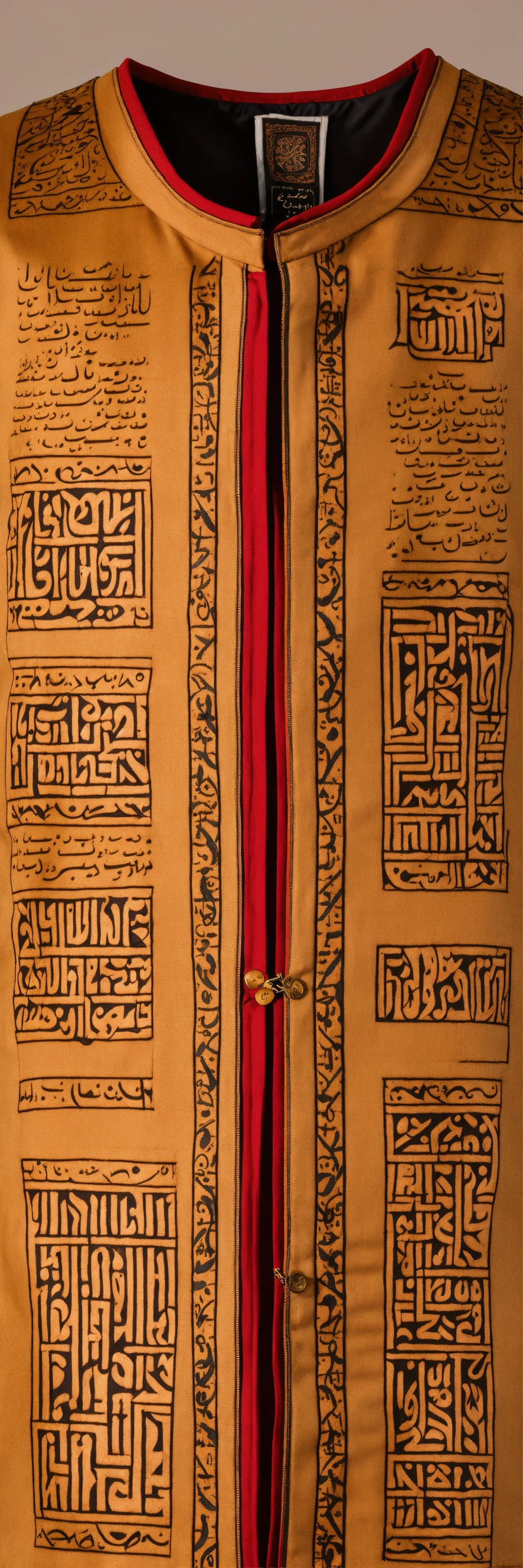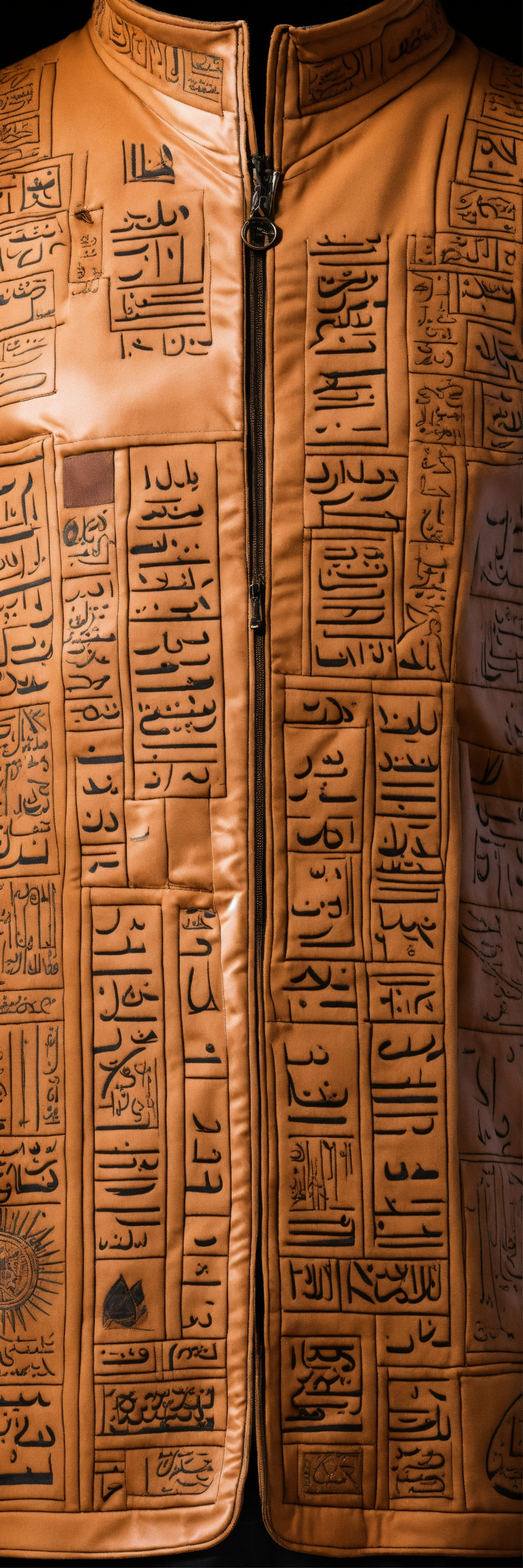 A special design for the tour guide a waistcoat with a pocket on it, with drawings of aramaic letters added in dadan and lihyan in the city of al-ula.