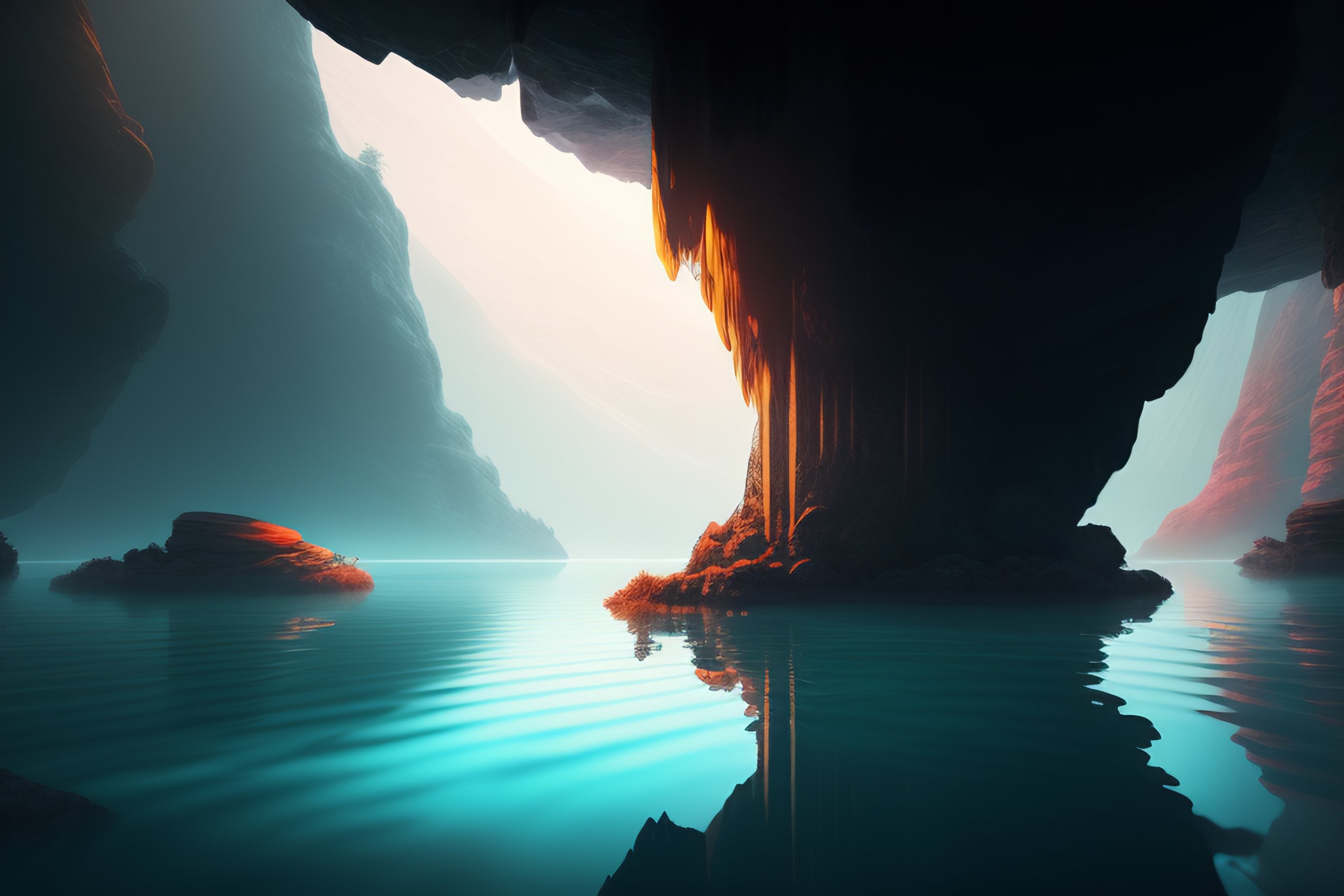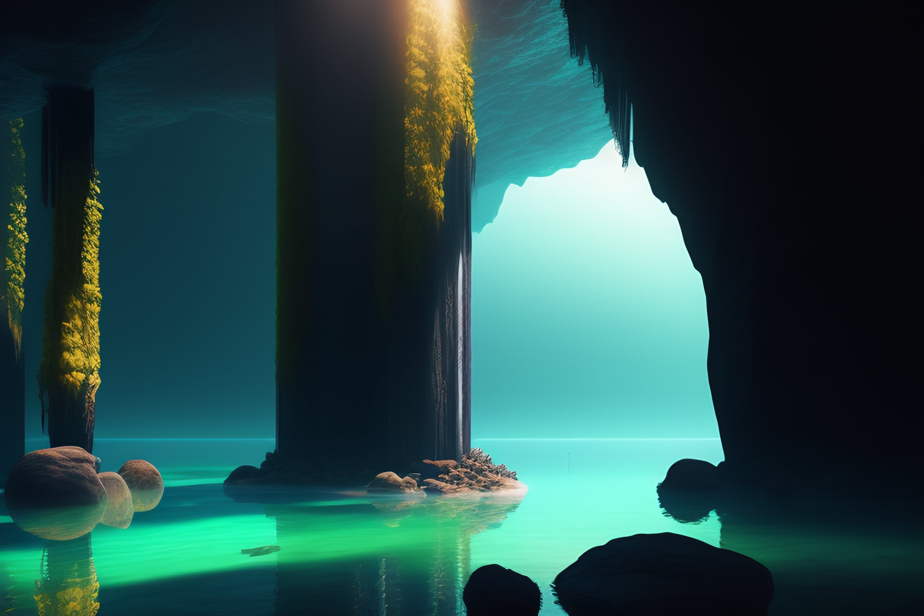 A solid black pillar inside a underground lake, highly detailed, 8 k, digital painting, concept art, sharp focus, illustration, cinematic lighting, maximalist