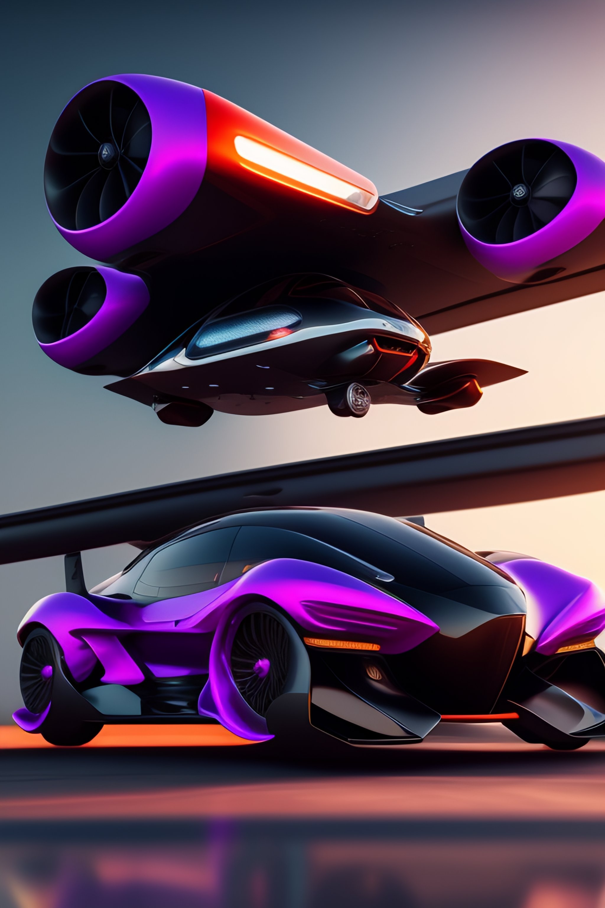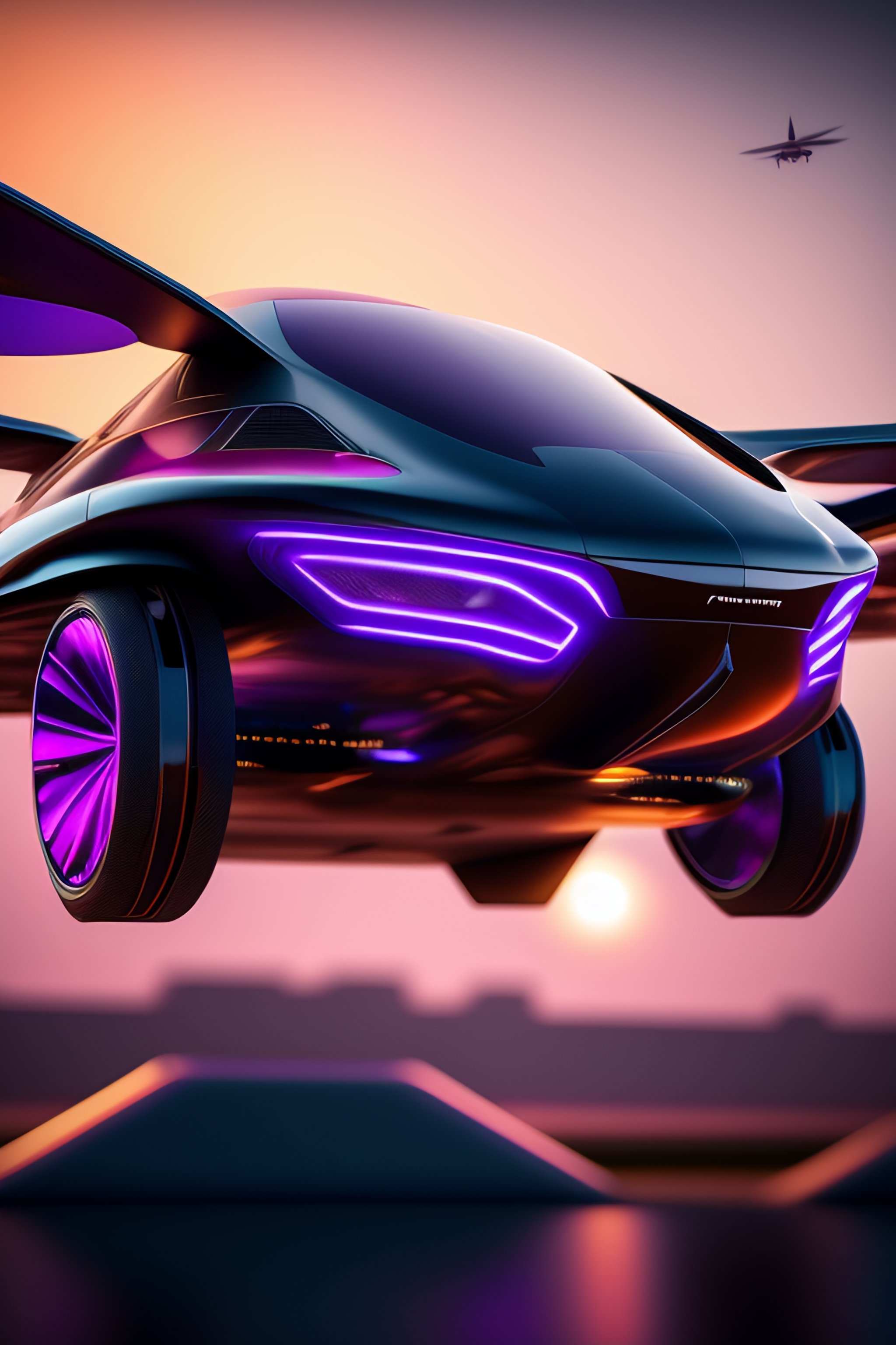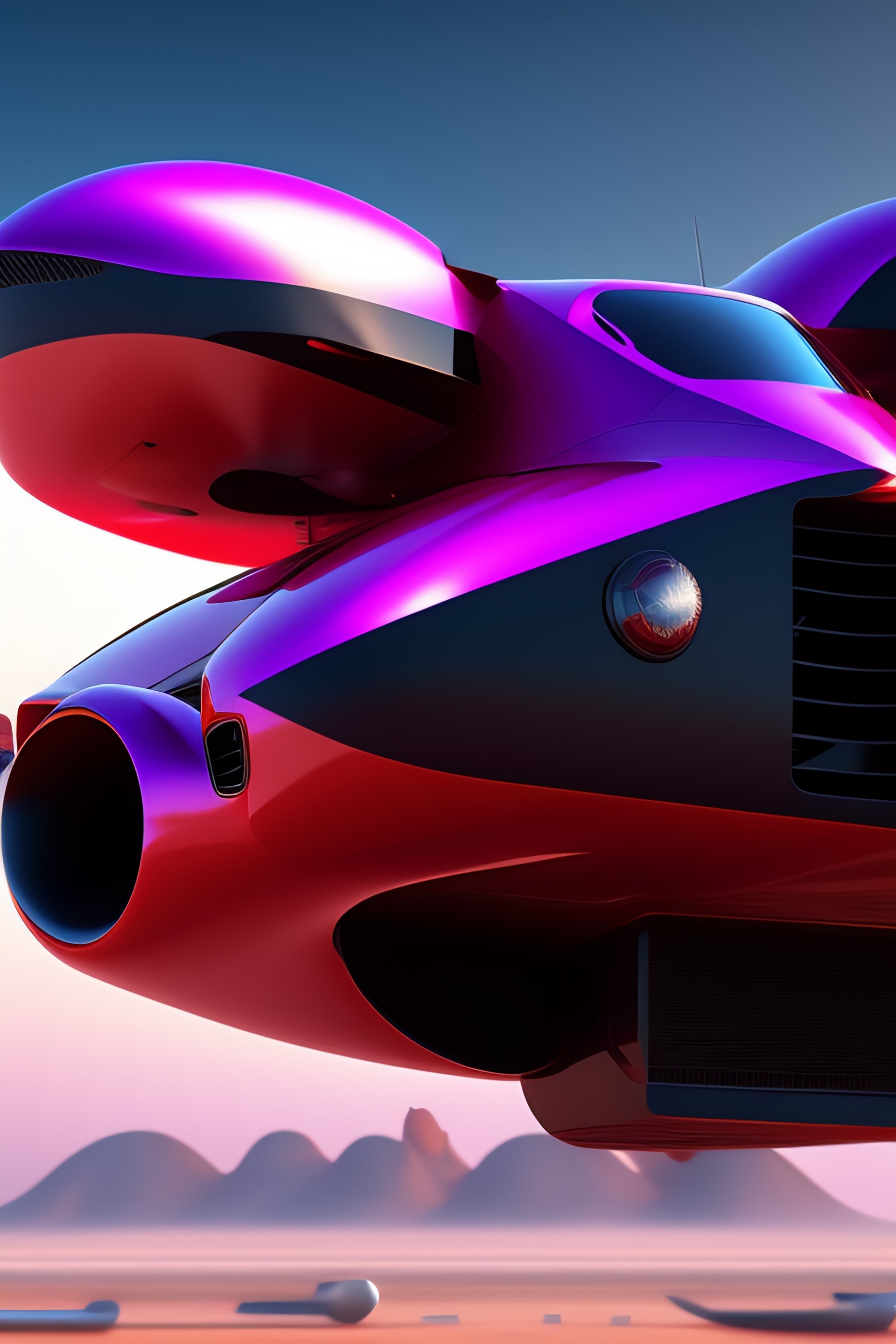 Futuristic, flying car, realistic, flying above dubai, hydrogen powercell powered, metalic black, red, purple chasey, final render in unreal engine at extreme realistic details, hi res, max graphics, octane render, psycho raytracing, dlss 3.0