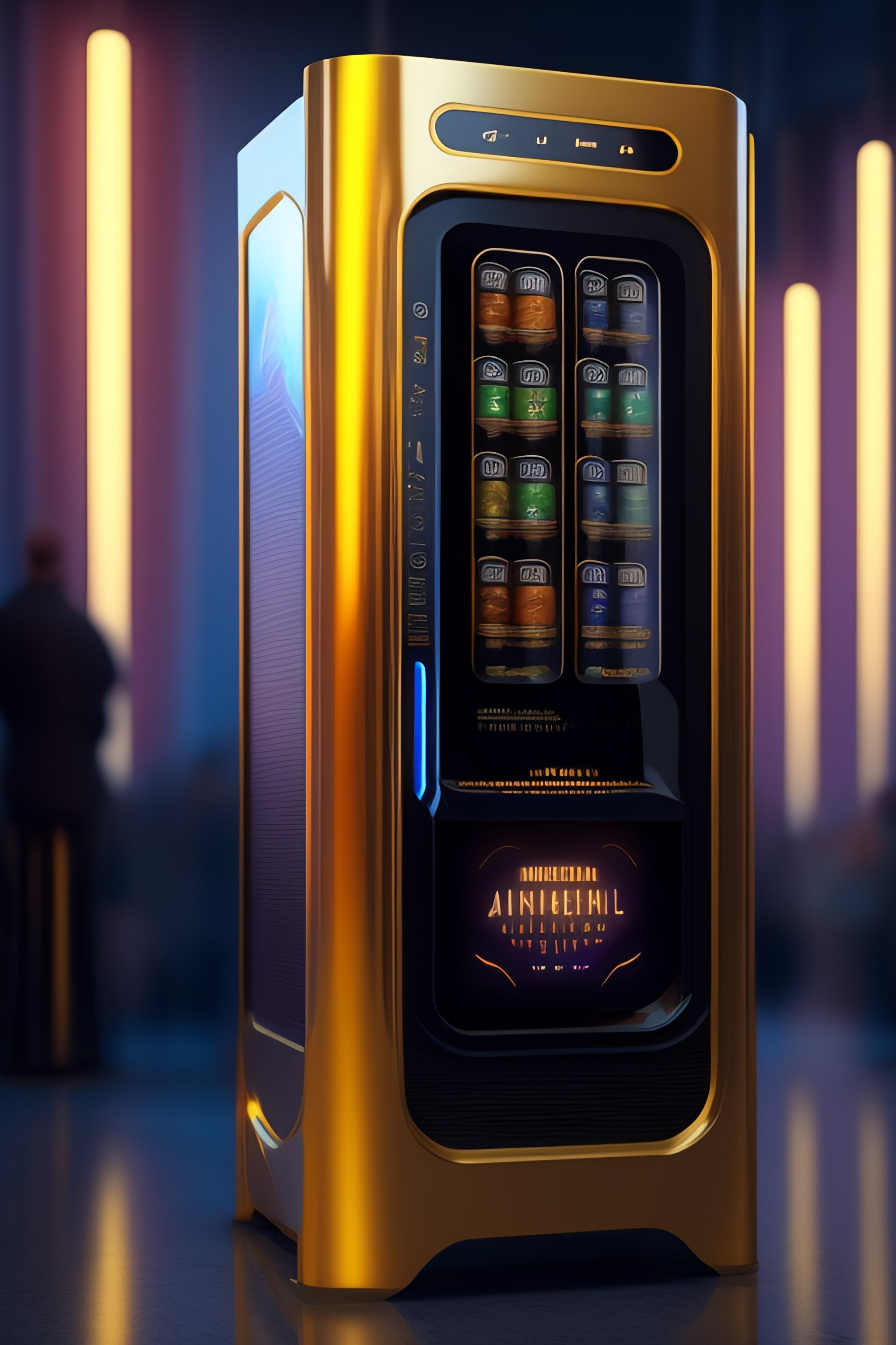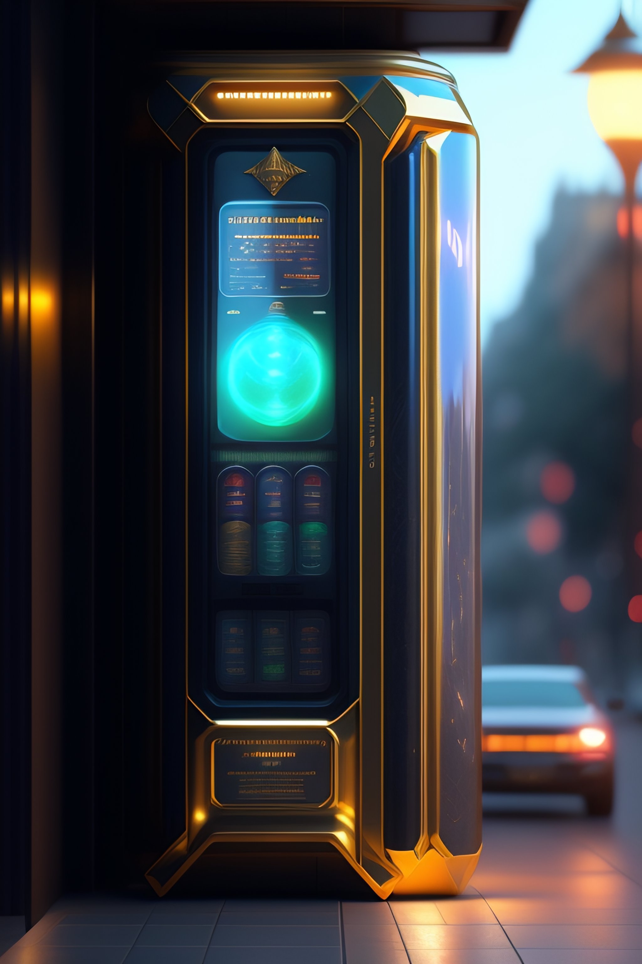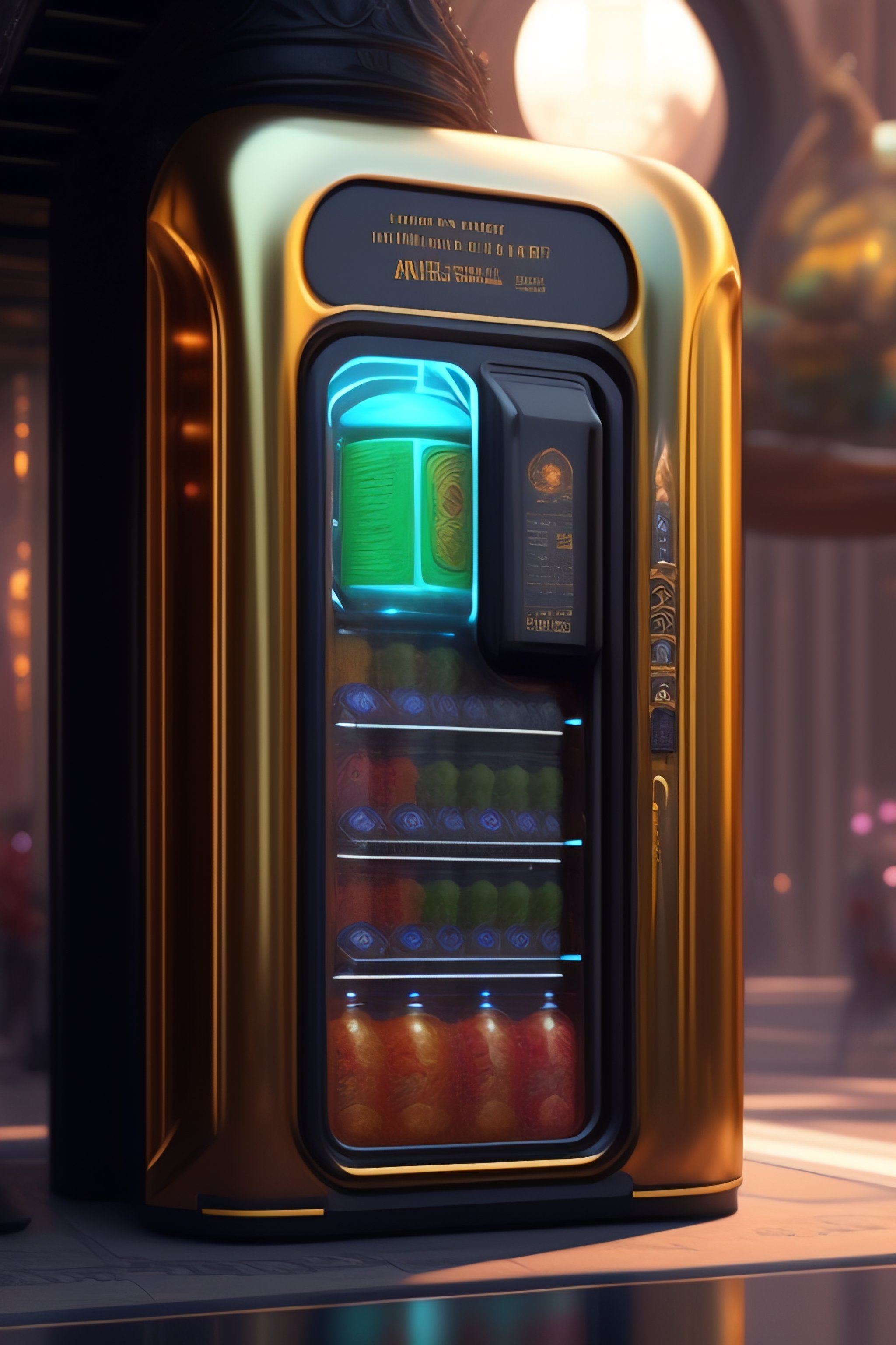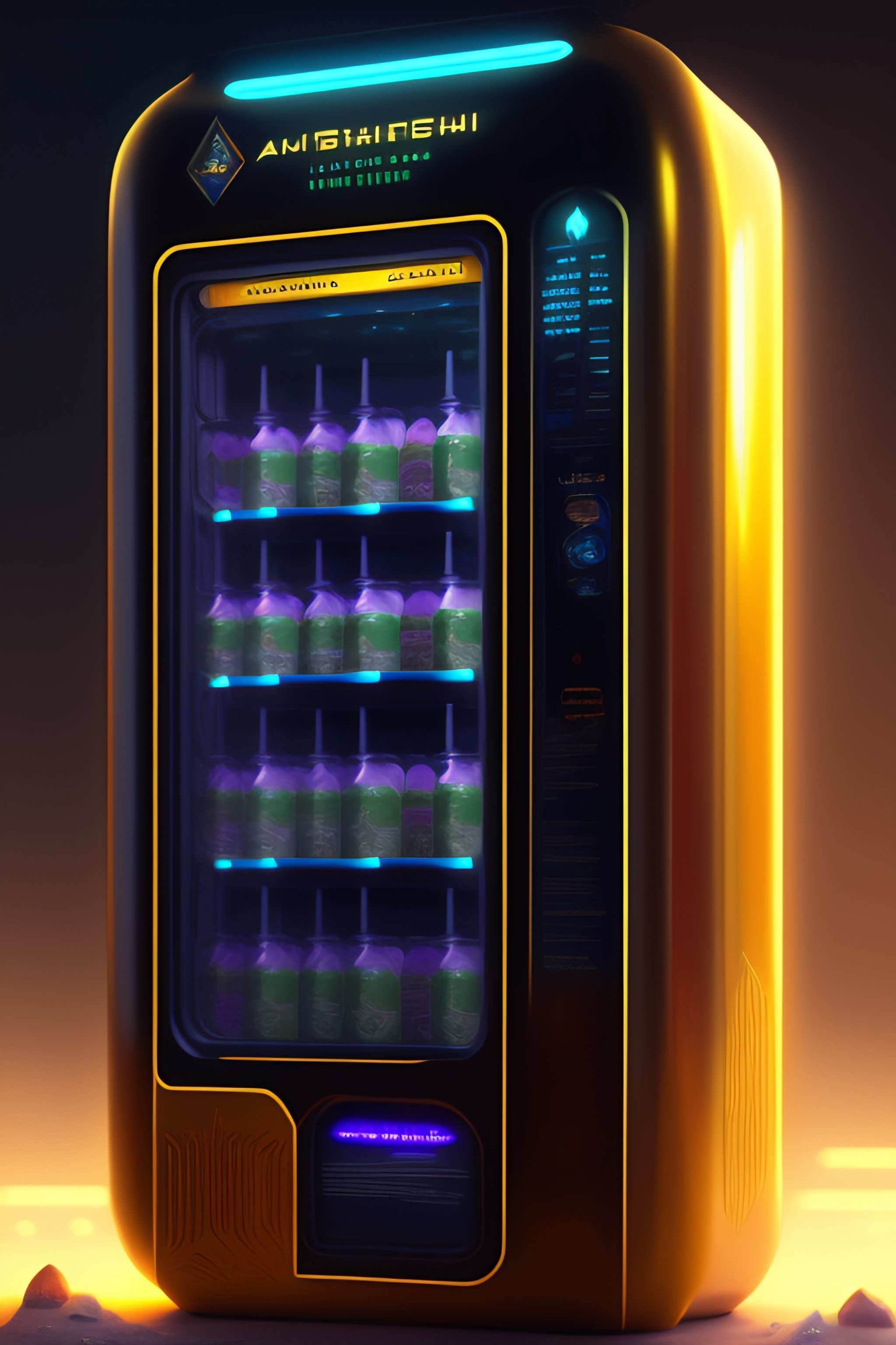 Alien tech vending machine with magic potions inside, highly detailed, 8k, rim lighting, digital painting, artstation, concept art, sharp focus, illustration, art by greg rutkowski and alphonse mucha