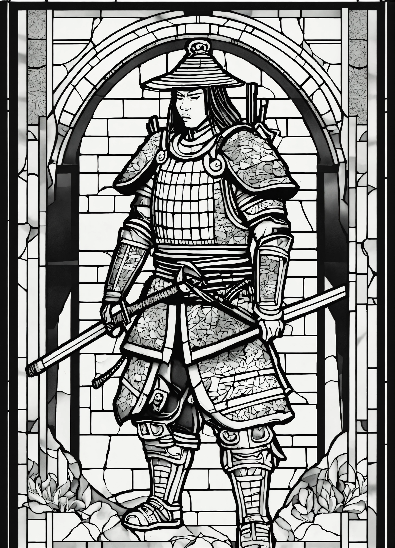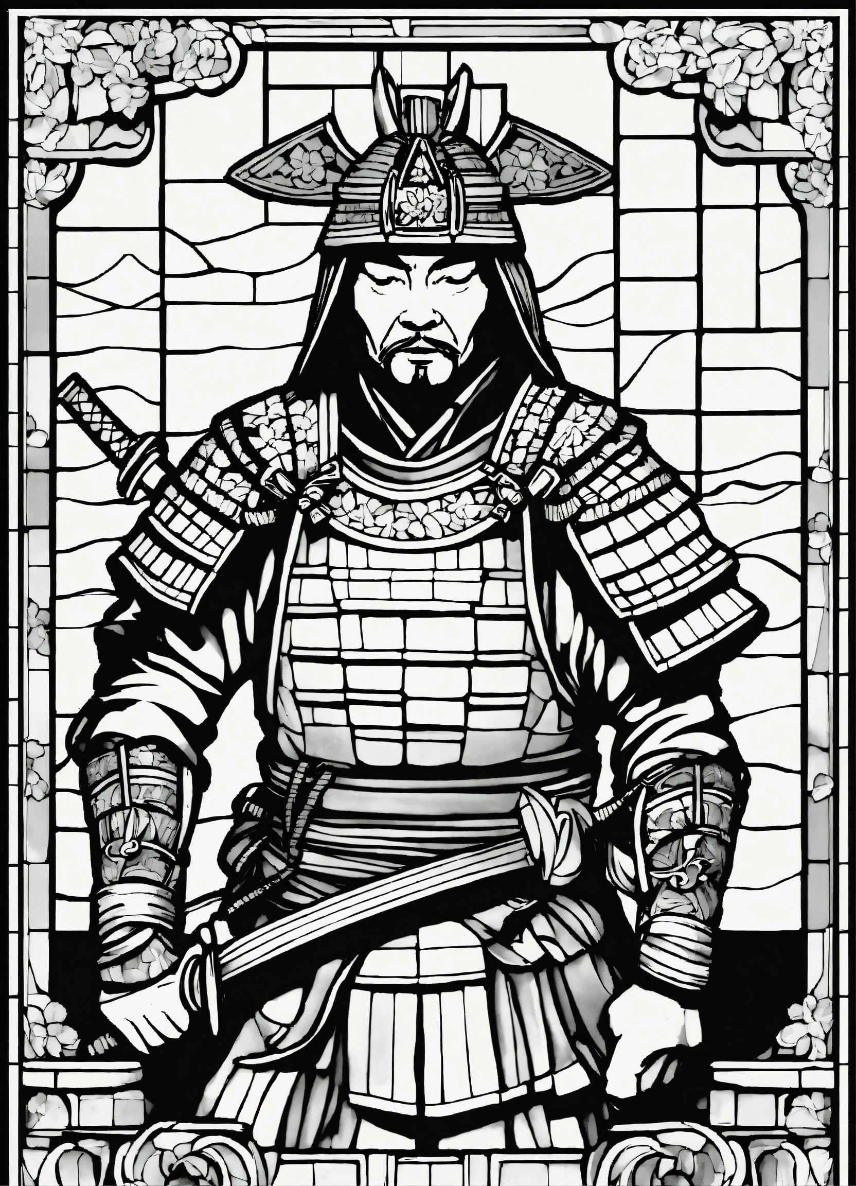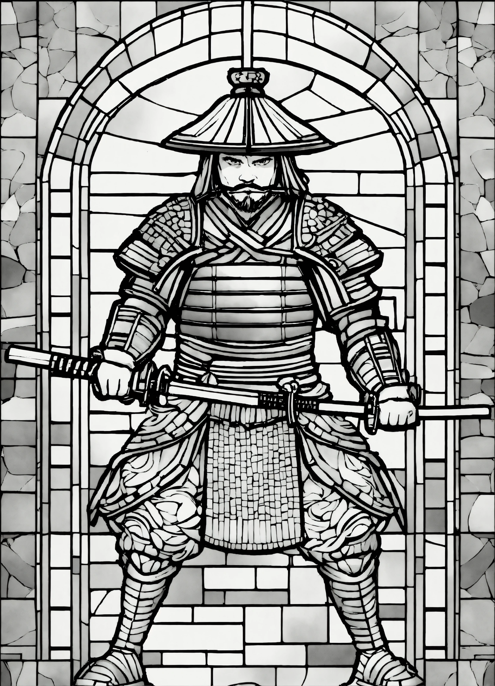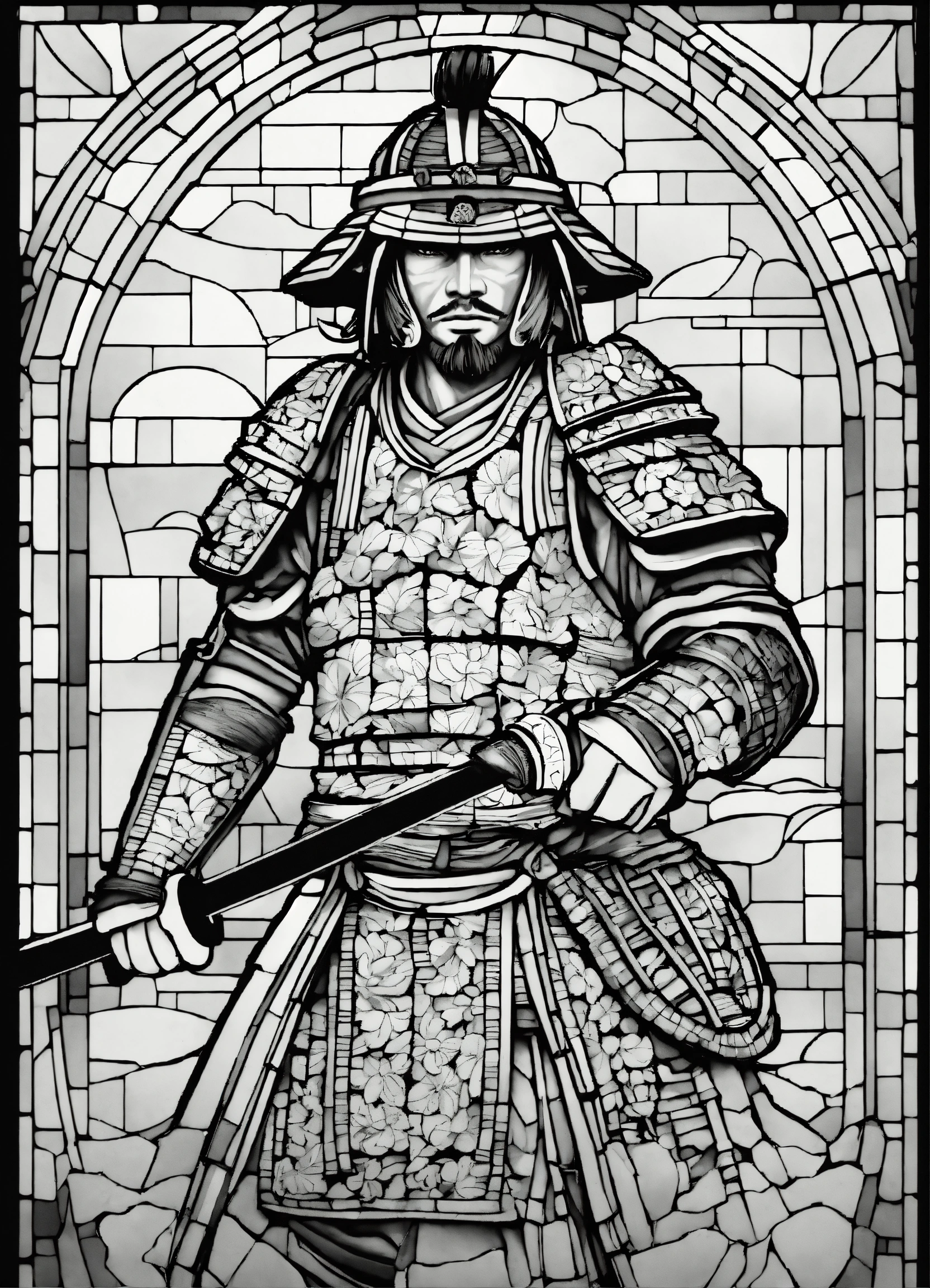 Samurai in stained glass mosaic