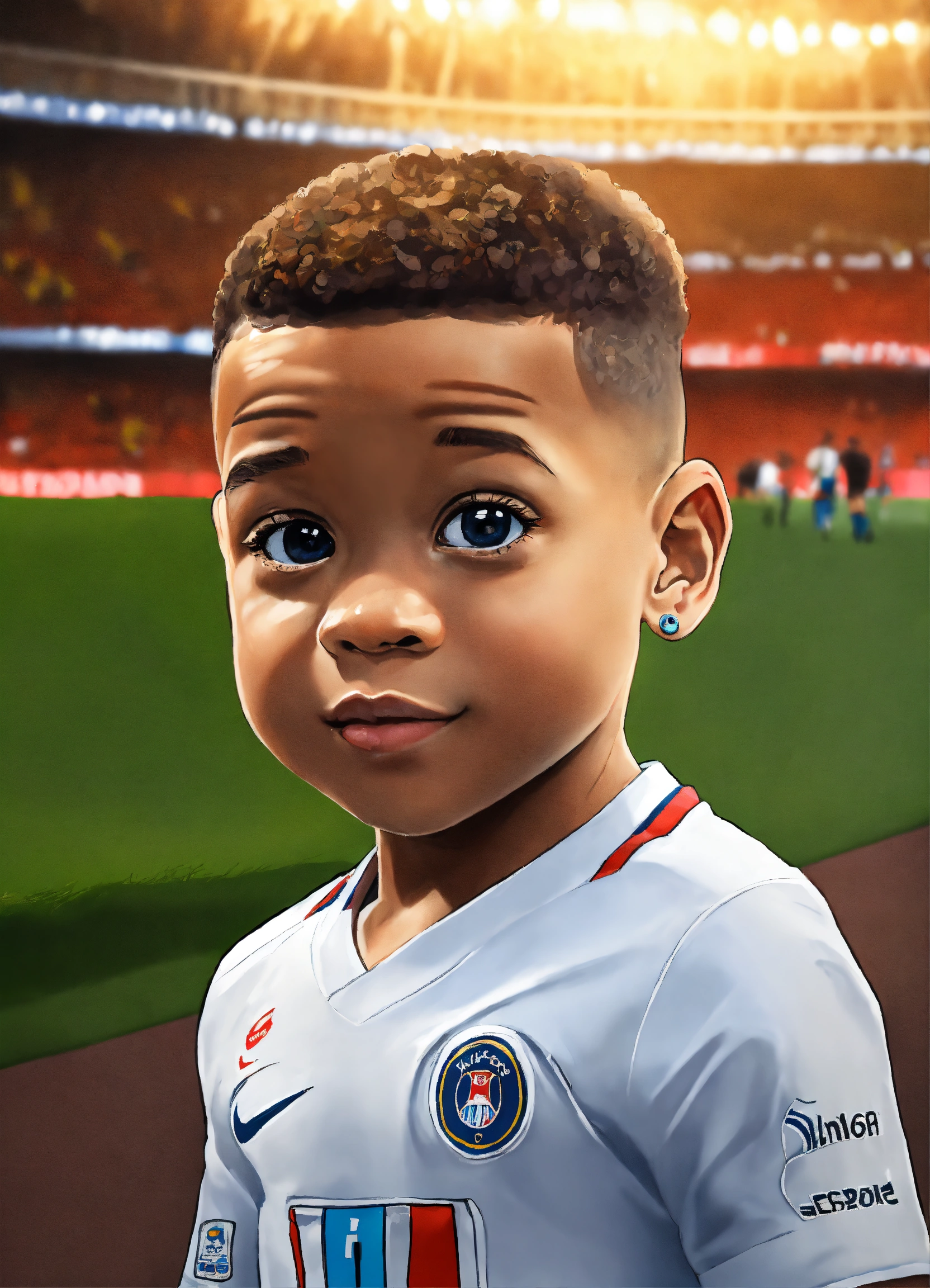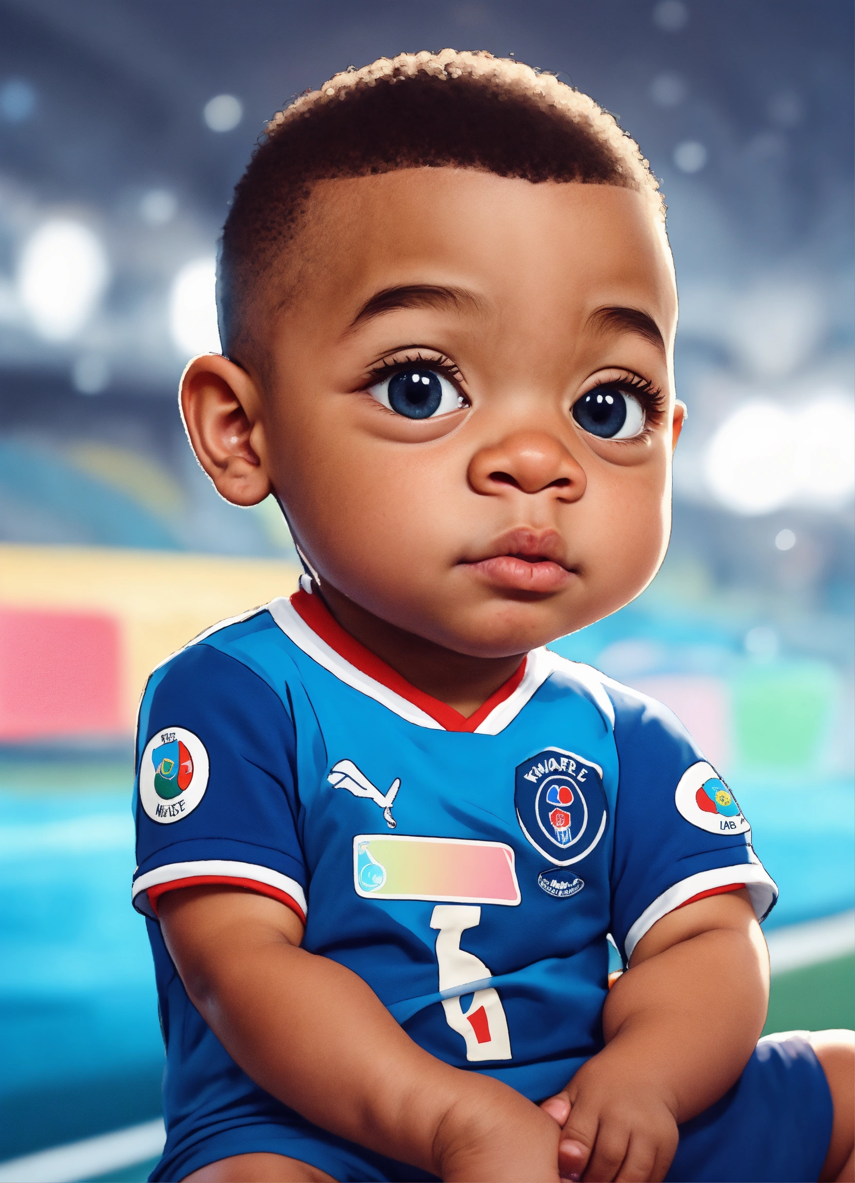 Kylian mbappé cute baby cartoon realist big eyes