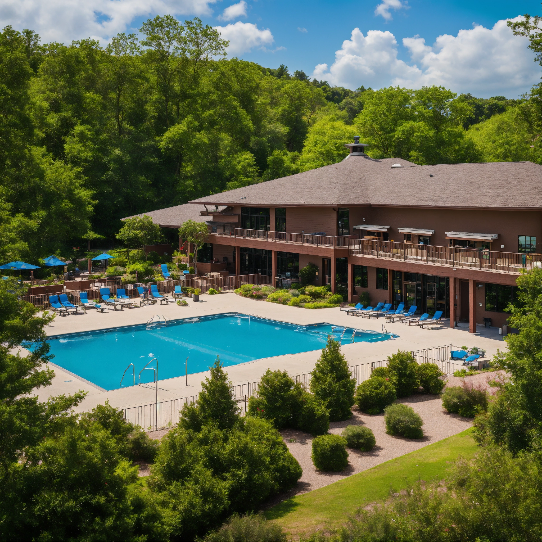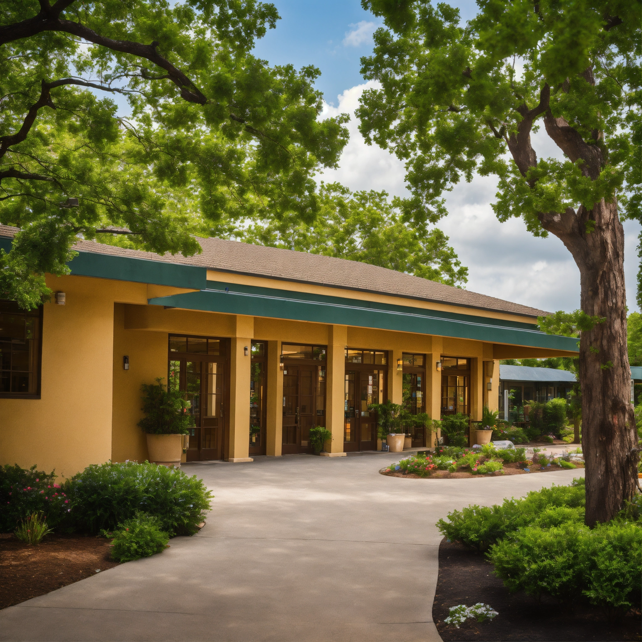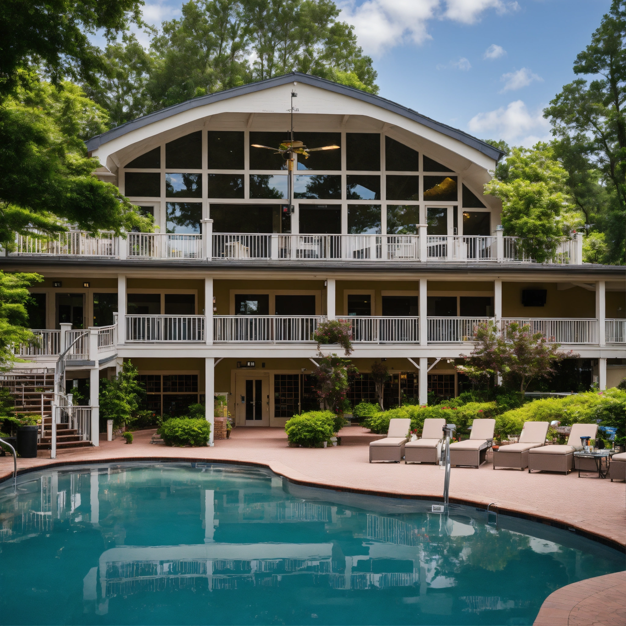A photo of a drug and alcohol rehab center. the center is located in a beautiful setting with plenty of greenery. the center has a variety of amenities, including a swimming pool, gym, and library.