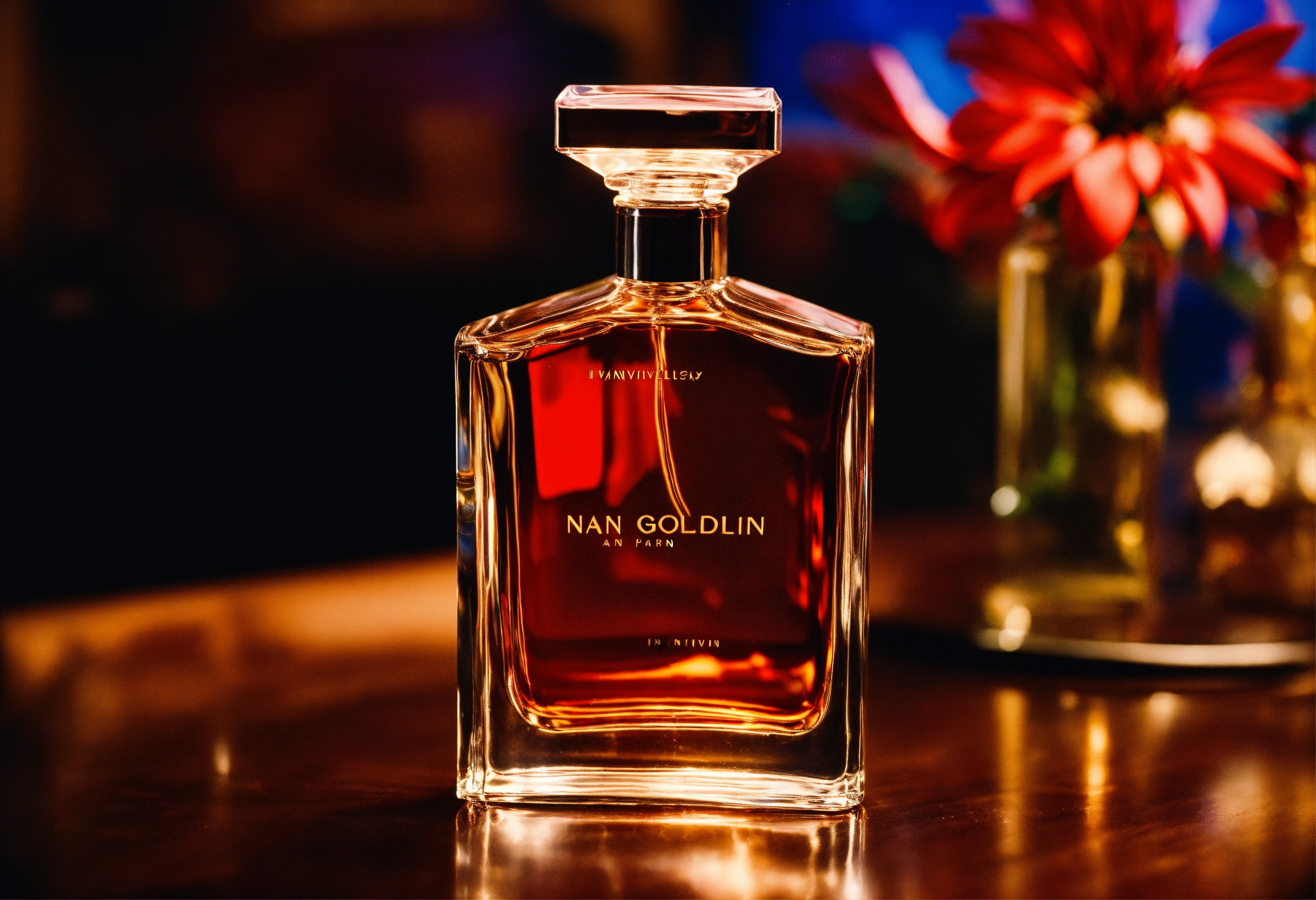 Perfume bottle representing man body, immersive- experience inside and out, captivating and passionate universe, nan goldin the photograph inspiration