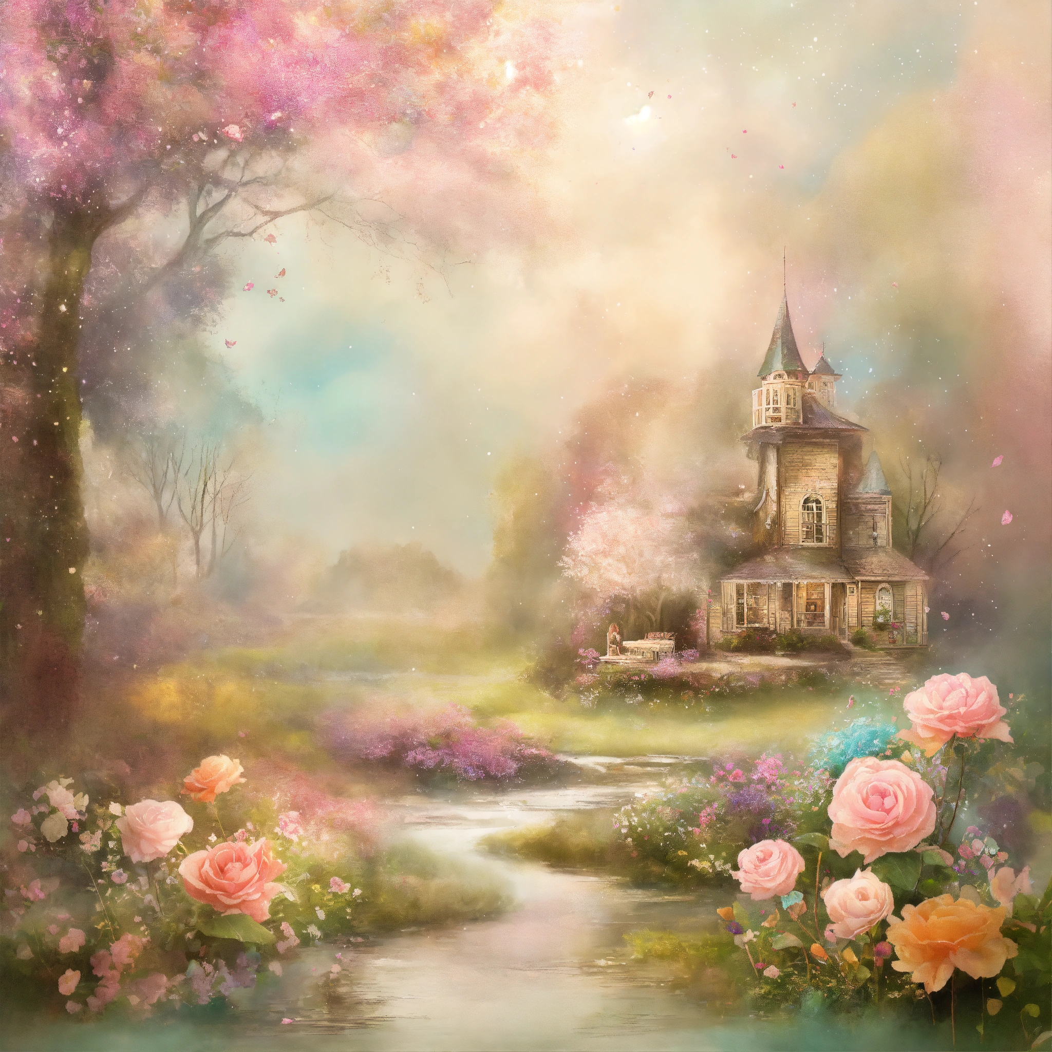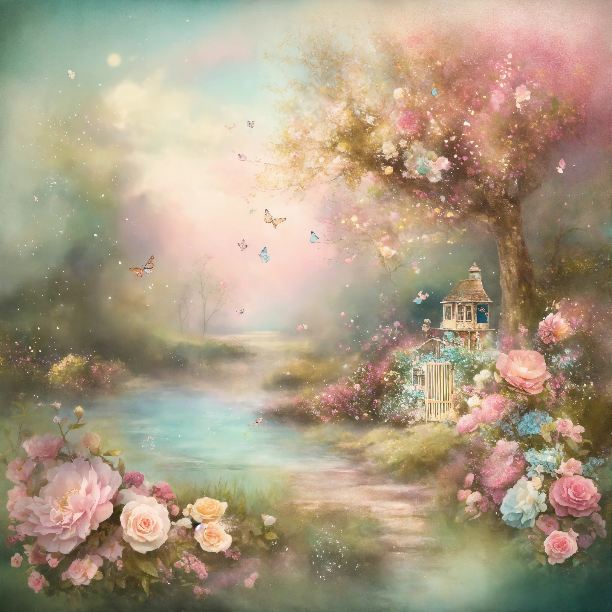 Shabby chic dreamy mist pastel junk journals sweet moments swirling magical fairytale abstract art style