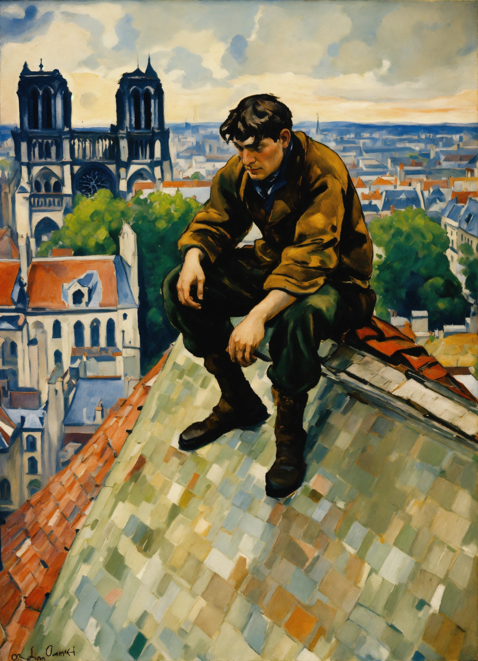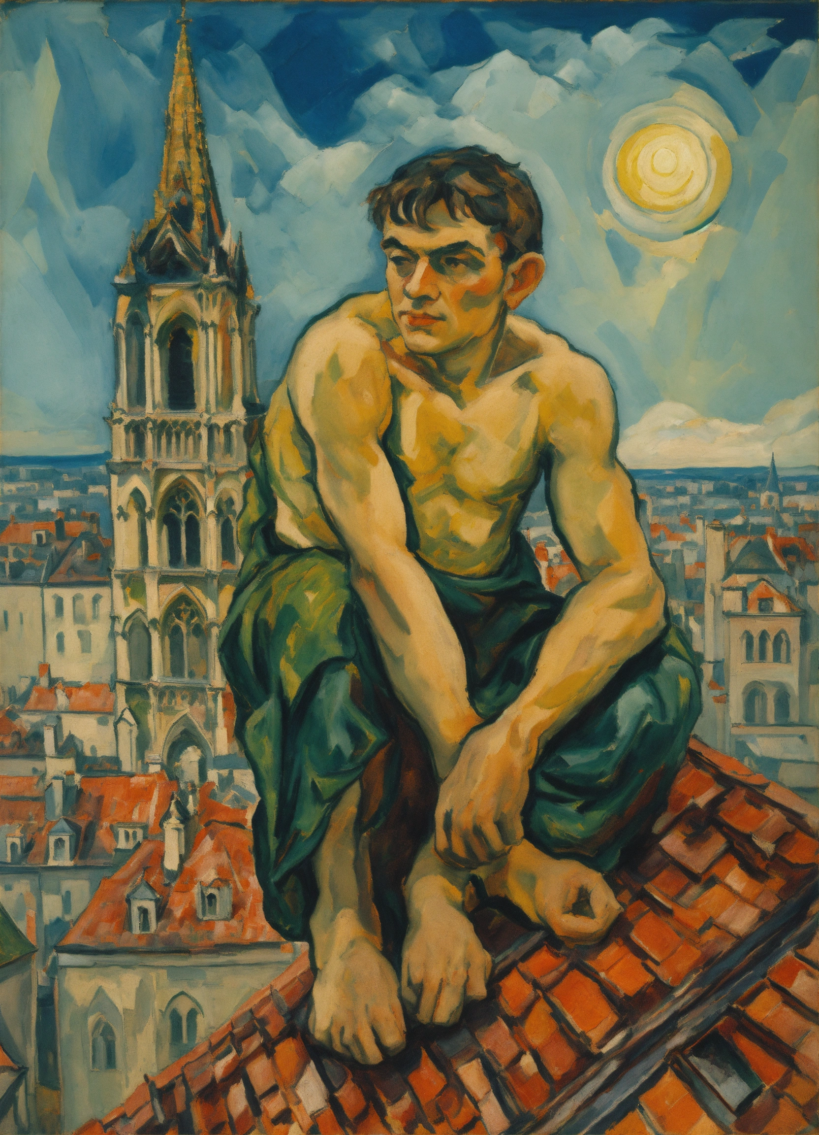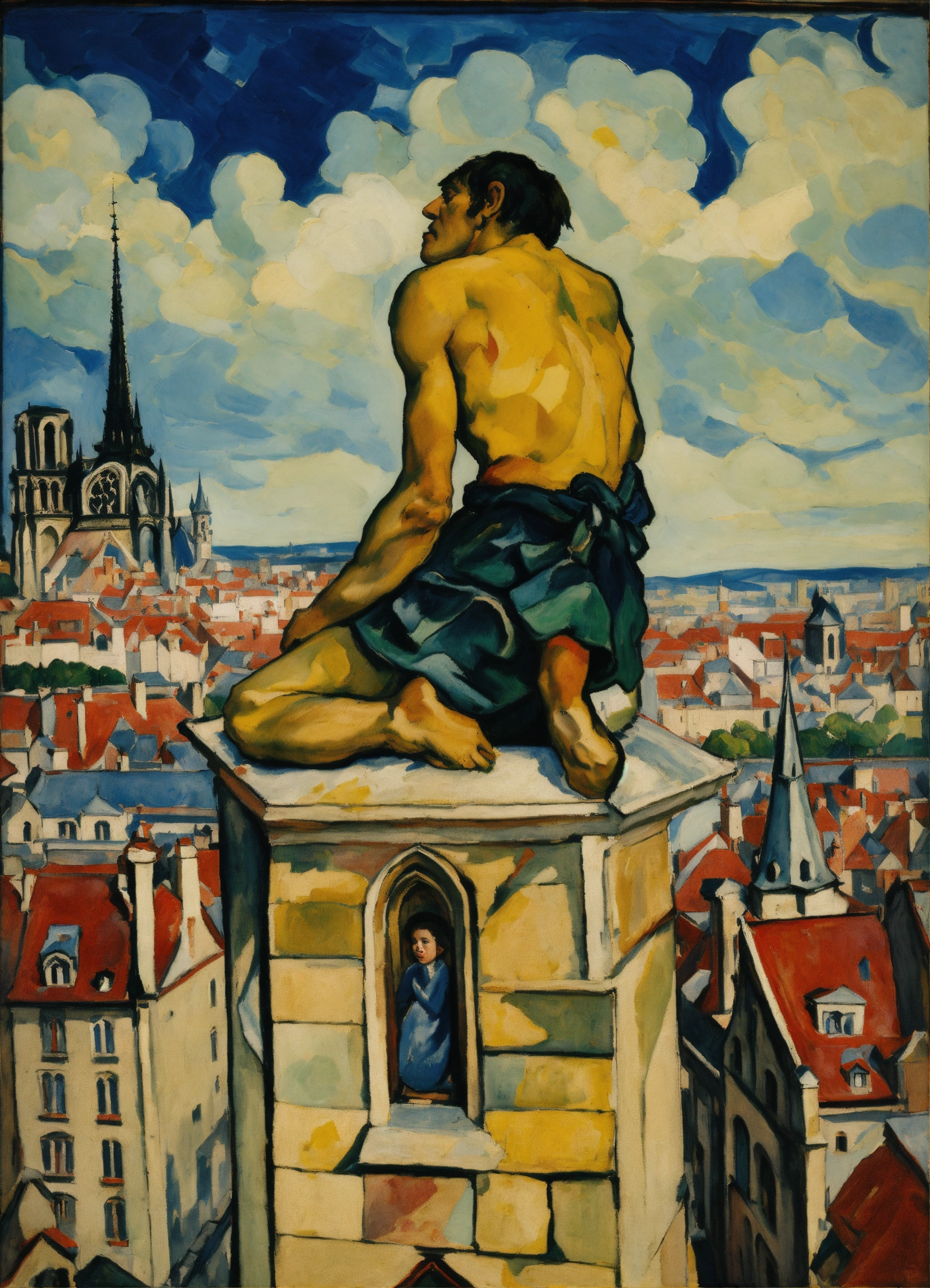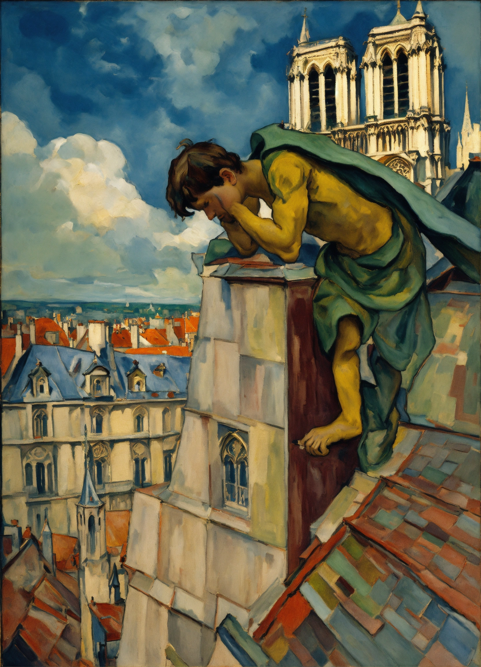 Quasimodo on the roof of notre dame de paris cathedral by oskar kokoschka