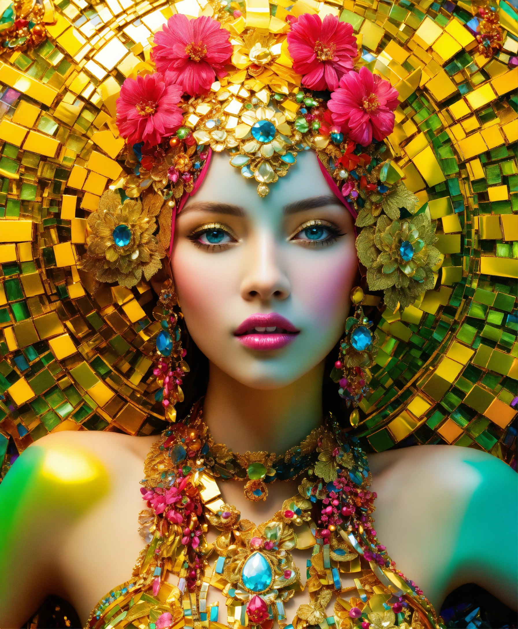 Futuristic beautiful photogenic supermodel painted glamorous beautiful colourful dreamy awesome elegant elaborate complex detailed awesome gold blue pink green orange peridot lilac yellow magenta cyan gold silver copper fabulous 8k intricate 8brush work vivid bright vibrant colors 3d gold trim metallic 24k gold filigree background mosaic awesome rich haute couture bambi eyes ultimate beauty sheen 8k glamorous filigree mosaic pearlized amazing hyperdetailed elegant elaborate couture elaborate hair style contrast frosty brushed matte luminous gold yellow background vibrant pink silver green detailed 8k 24k gold trim gold background asymetrical beautiful awesome superb 8k sheen 3d klimt vibrant colors large eyes gorgeous beautiful colourful delicate facial features beautiful superb 24k gold highlights 8k in focus red yellow gold pink klimt flowers gold foil 8k in focus gorgeous superb sublime awesome 8k hyperdetailed hyper-realistic 8k
