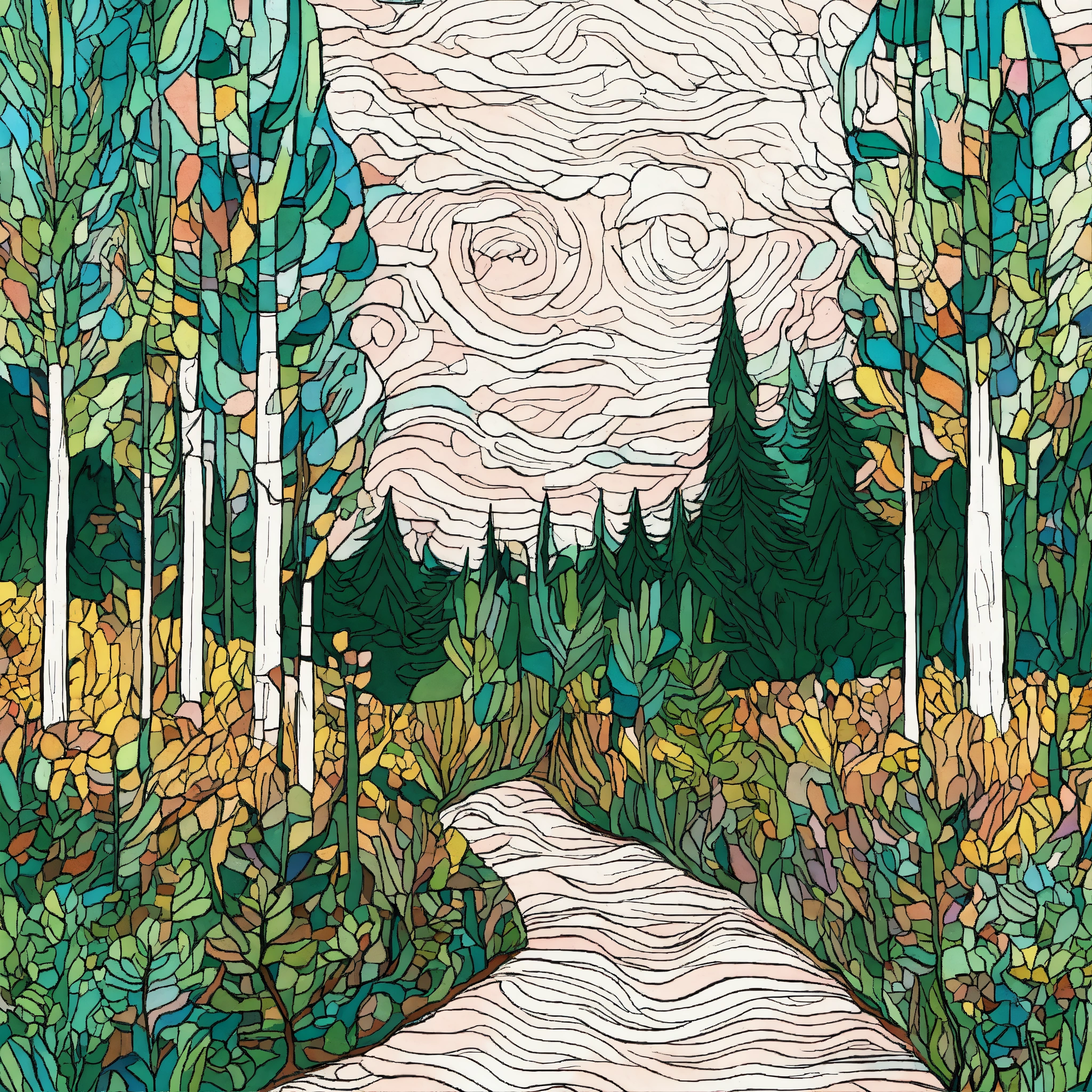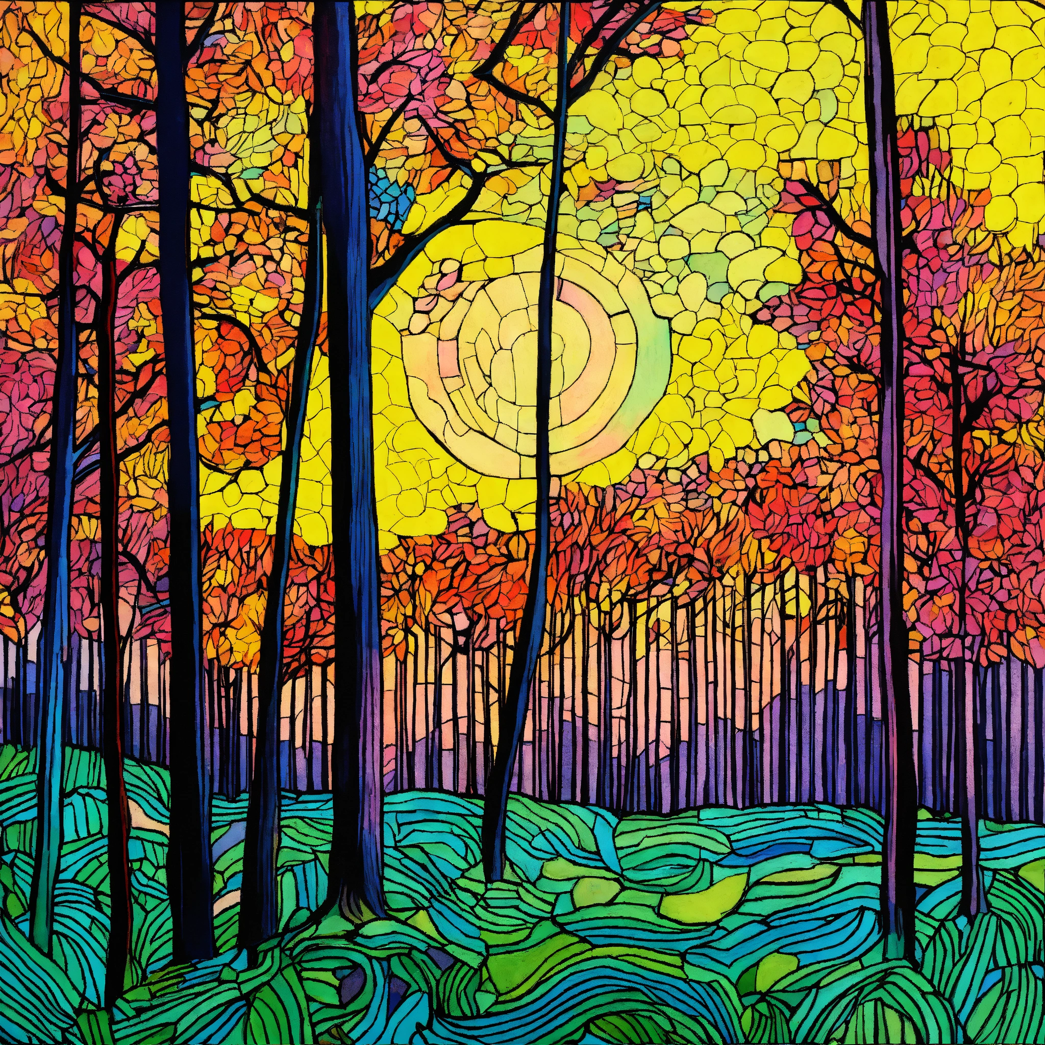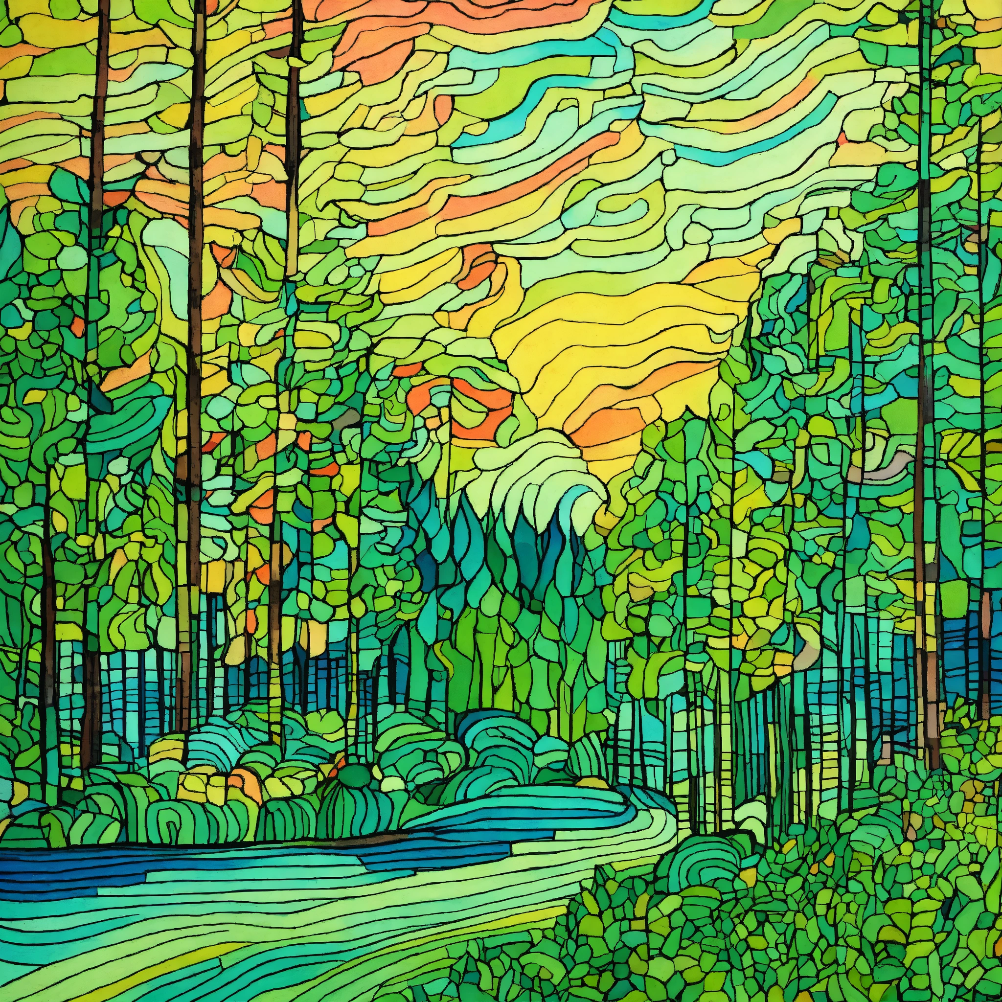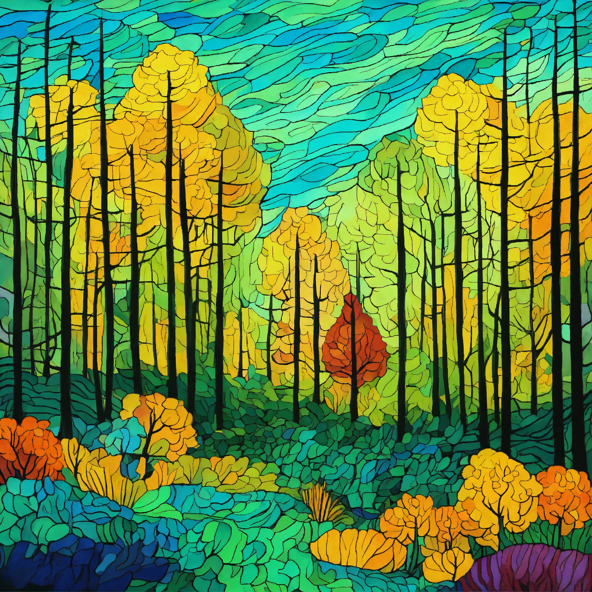 Art drawing abstract forest scene art style inspired by van gogh
