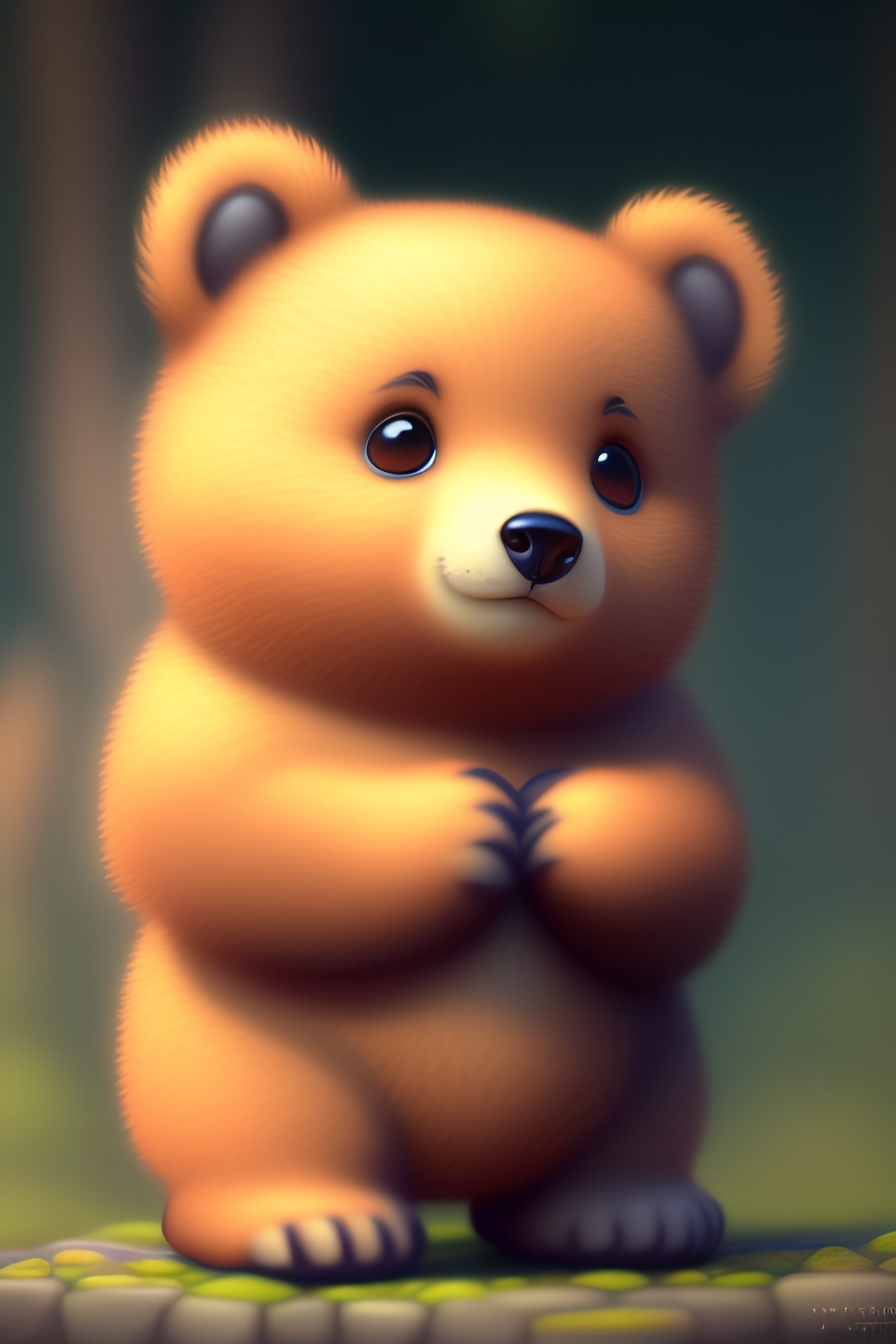 Cute and adorable cartoon baby bear, fantasy, dreamlike, surrealism, super cute, trending on artstation