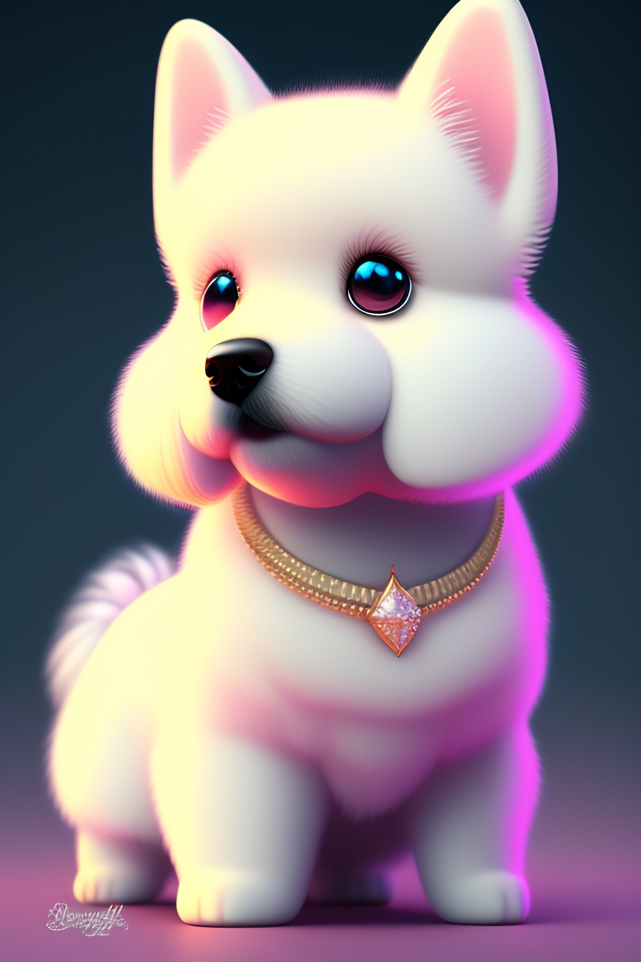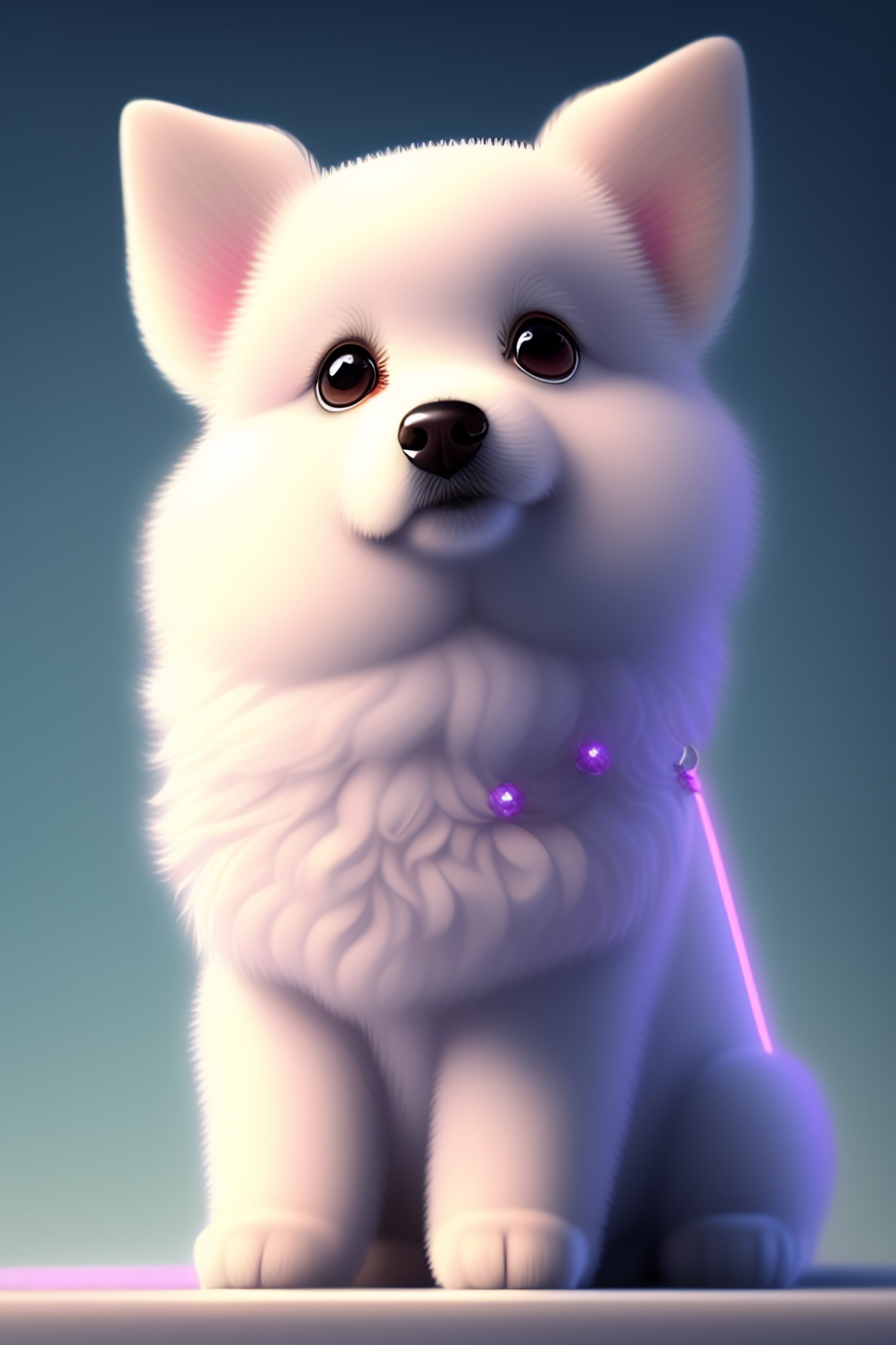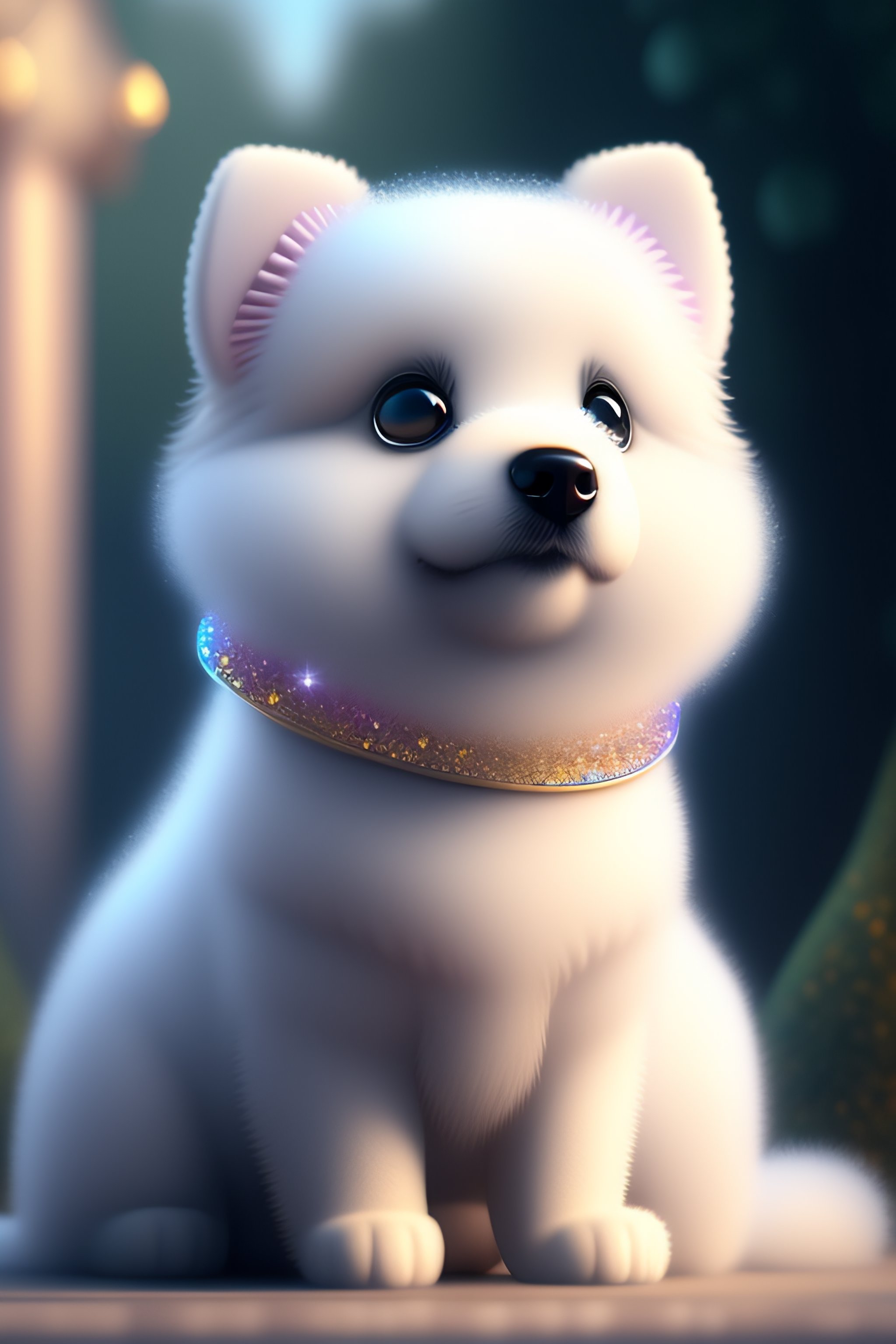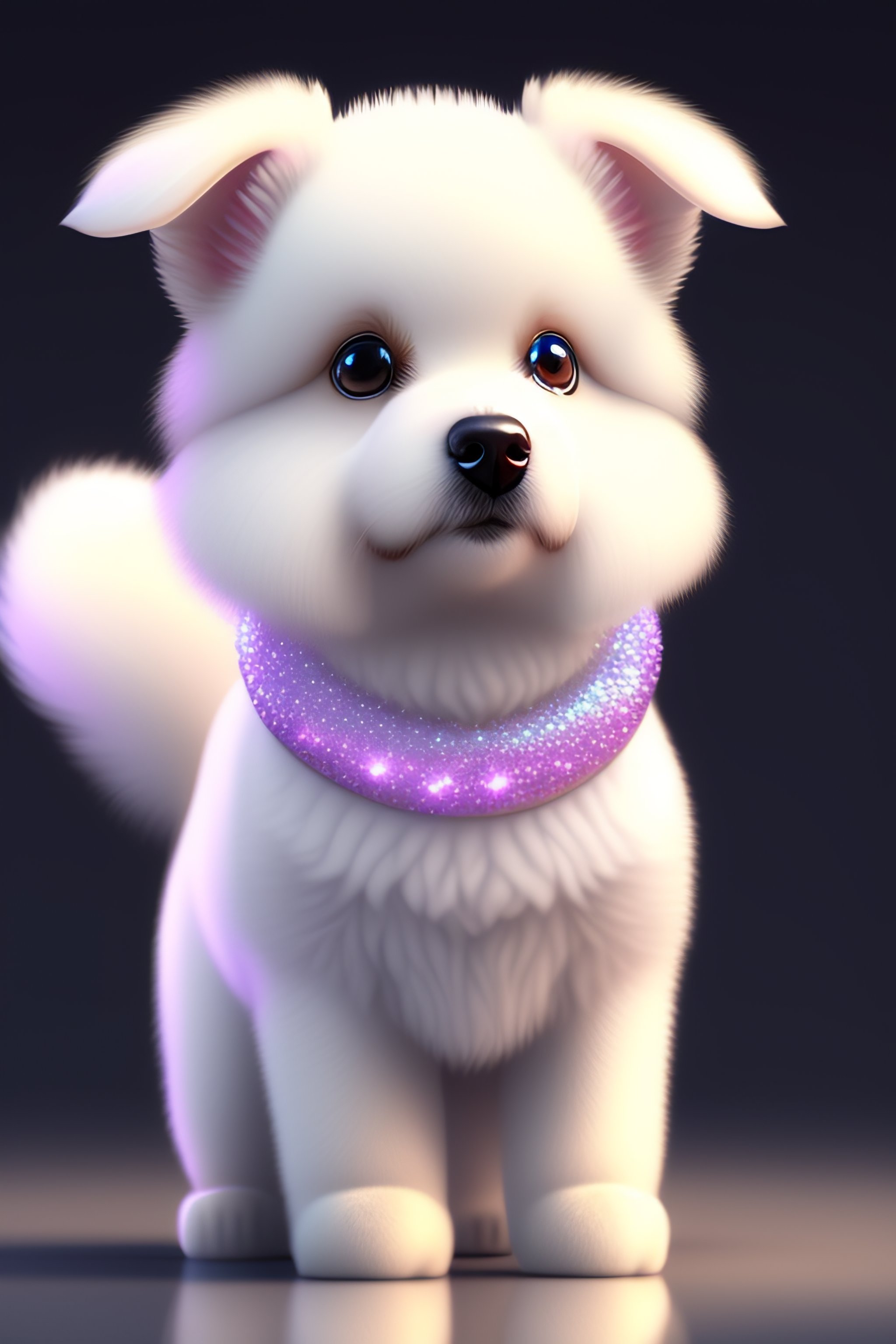 Cute and adorable cartoon fluffy dog, glitter, white, fantasy, dreamlike, surrealism, super cute, trending on artstation