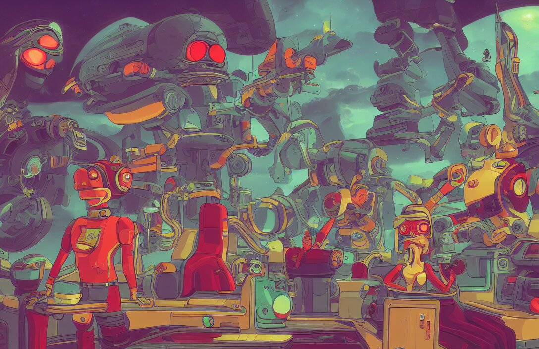 A futurama wallpaper, digital art, colorful, highly detailed, digital painting, artstation, by natalie shau concept art, sharp focus, illustration