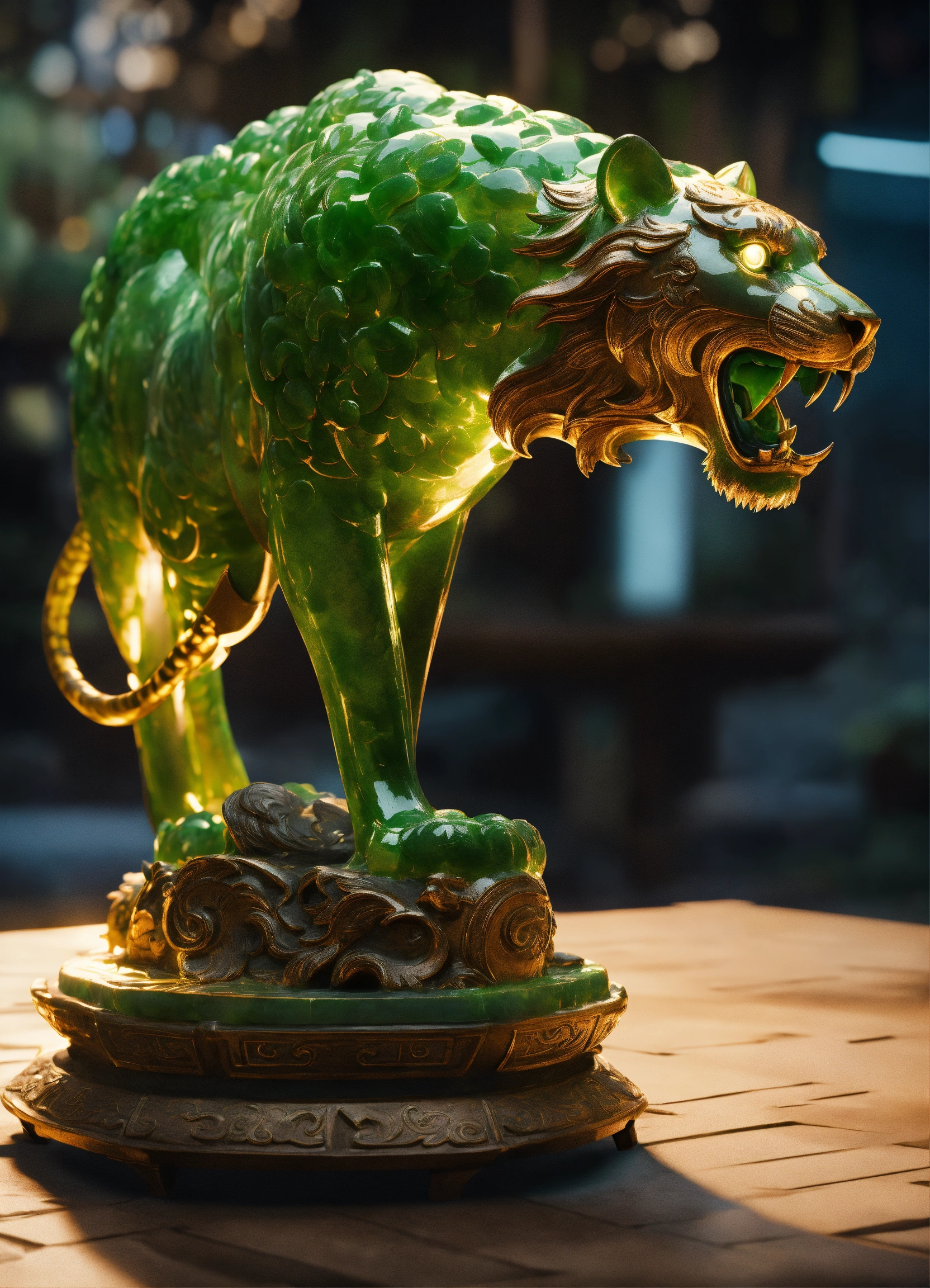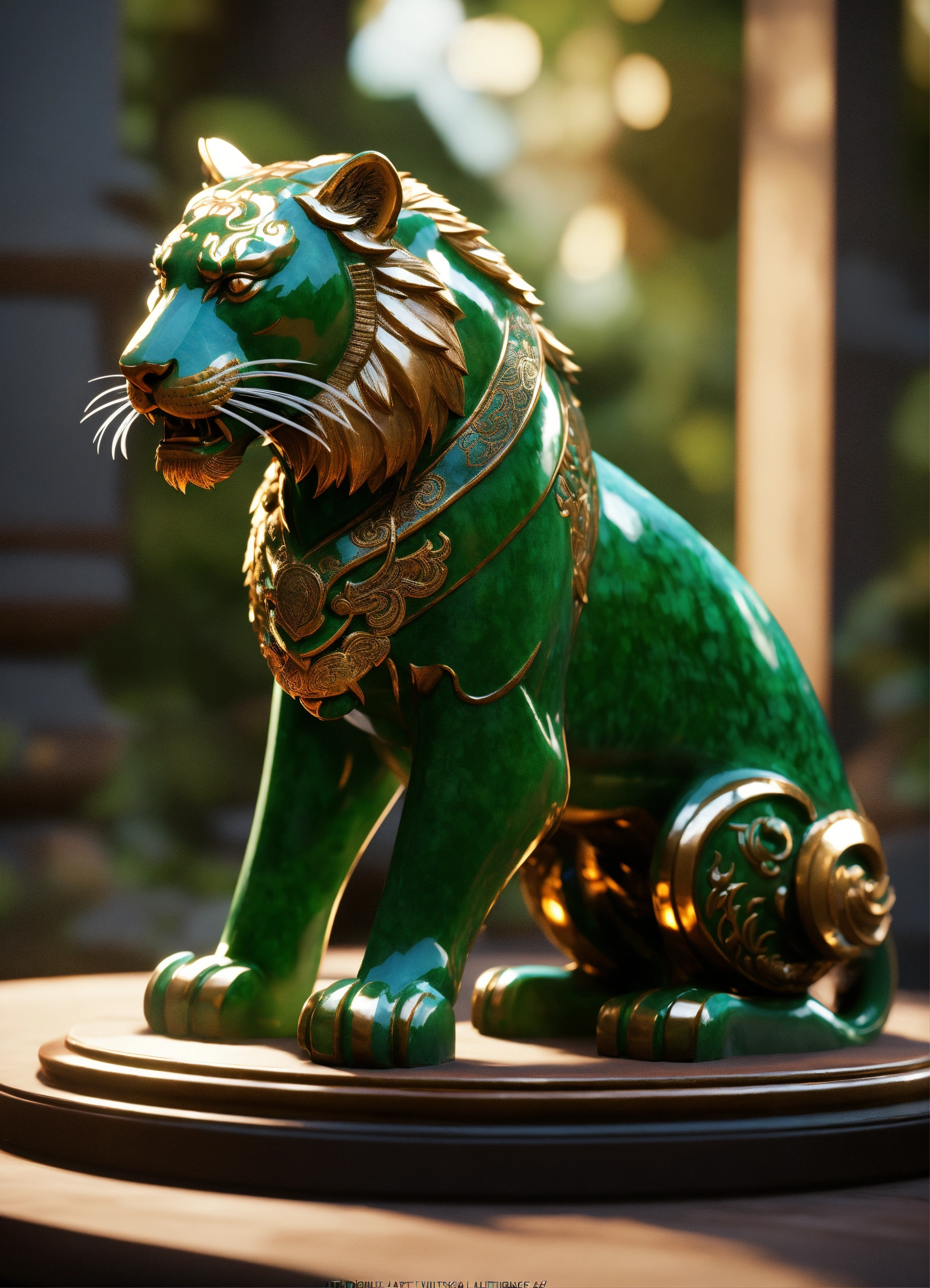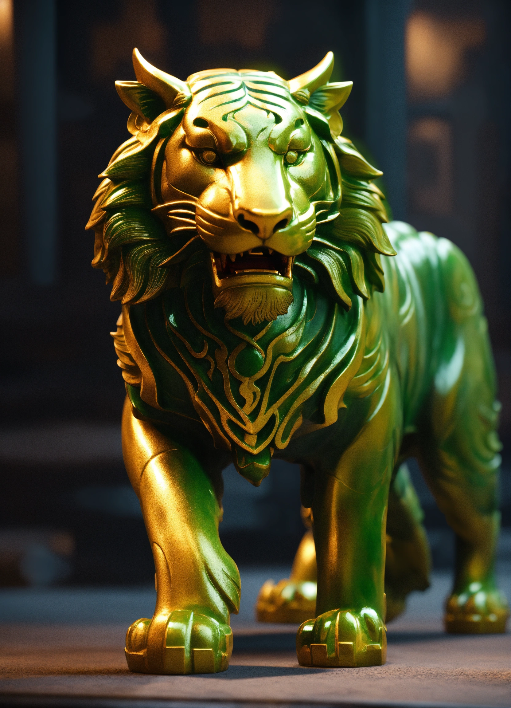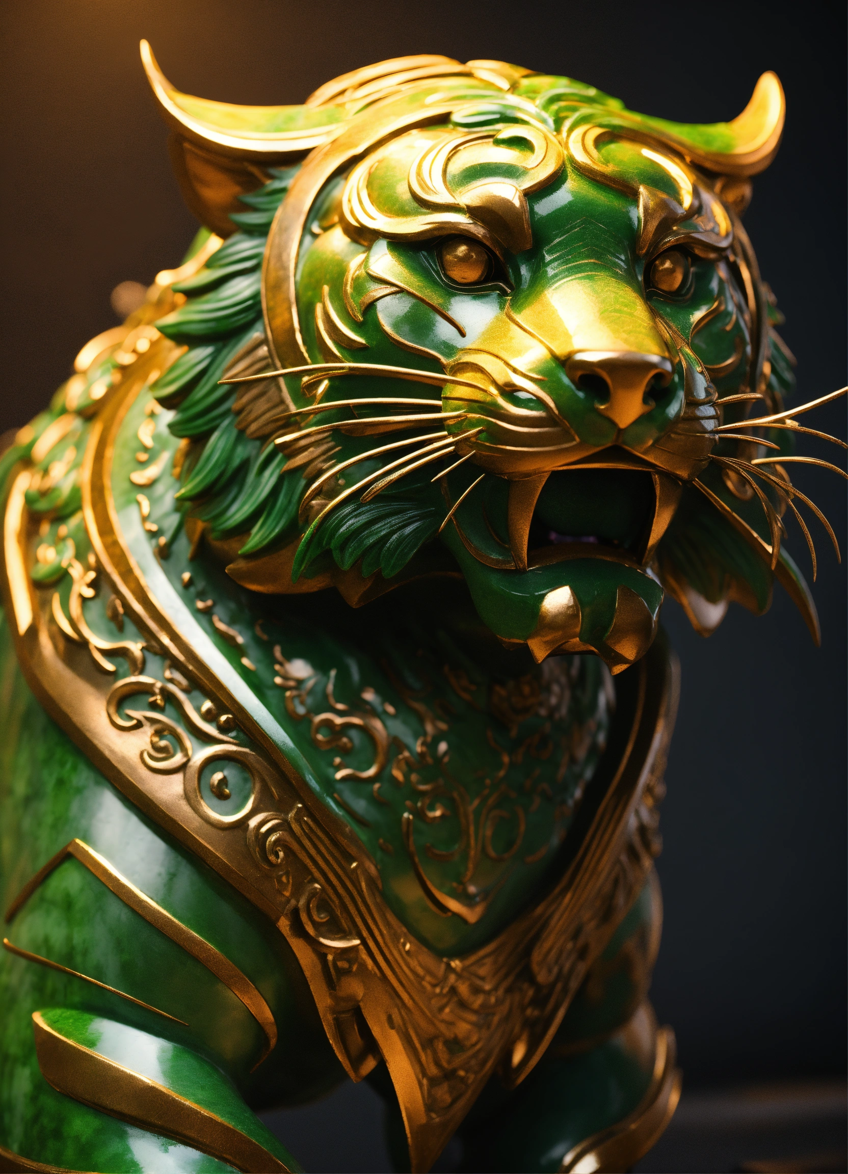 Jade tiger, chinese sculpture, side view, concept art dynamic lighting art trending on artstation unreal engine 5 volumetric lighting in the style of digital art