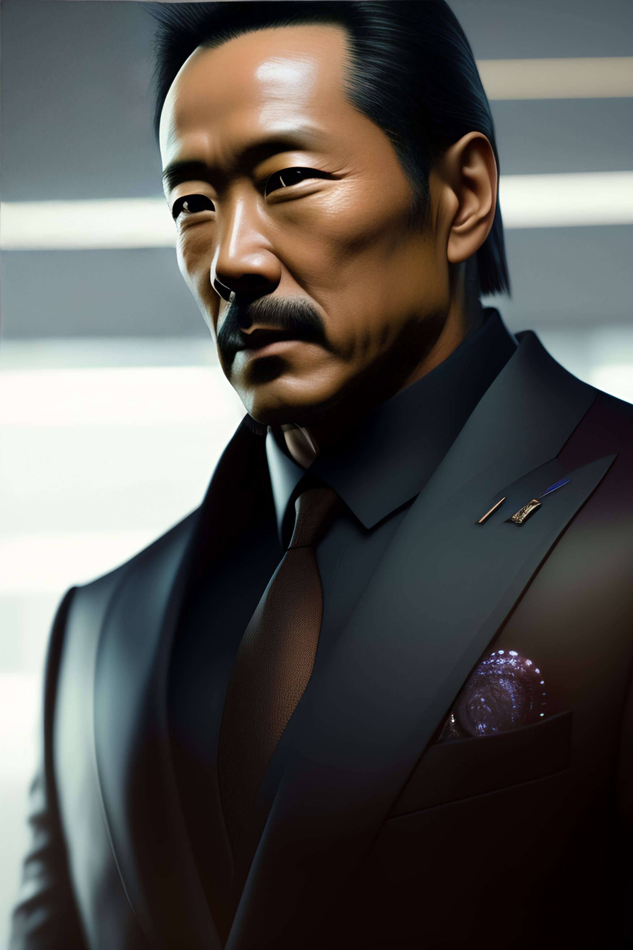 Photo of zwx, portrait of a man by greg rutkowski, hiroyuki sanada as a ceo of weyland - yutani aliens franchise, he is about 5 0 years old, wearing futuristic office suit, highly detailed portrait, digital painting, artstation, concept art, smooth, sharp foccus ilustration, artstation hq